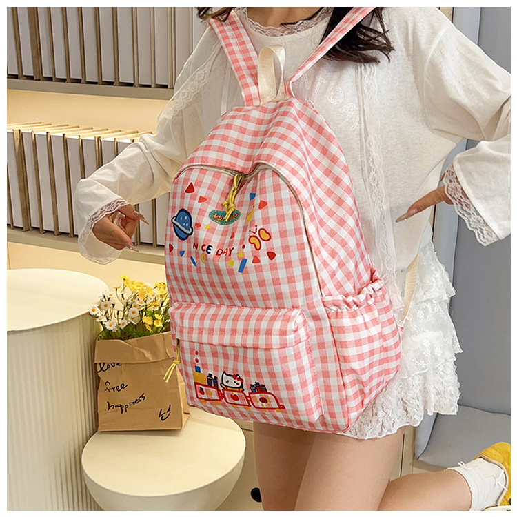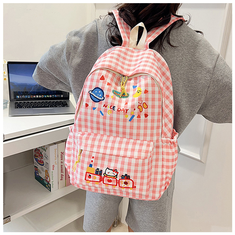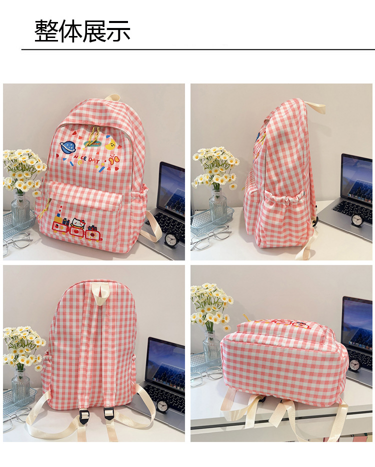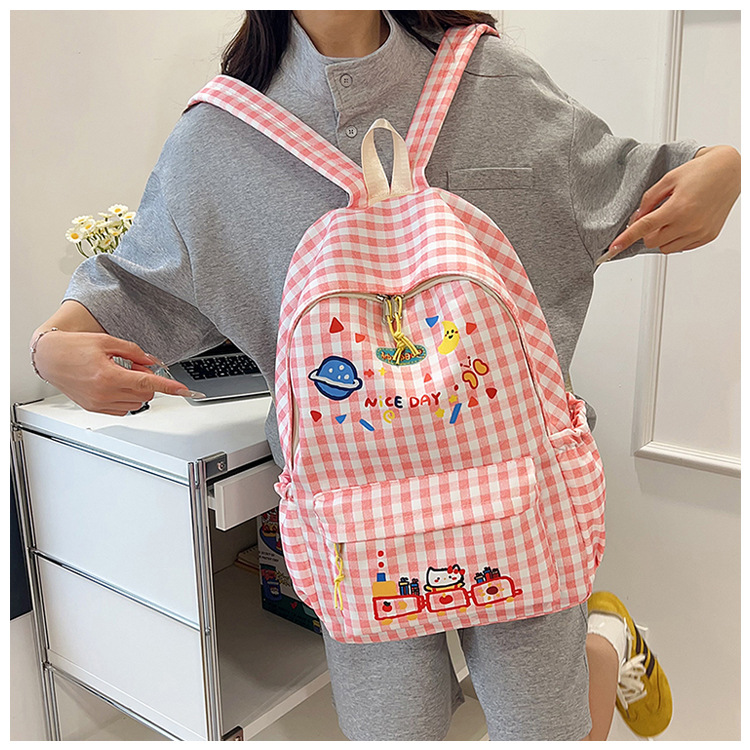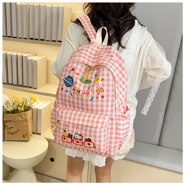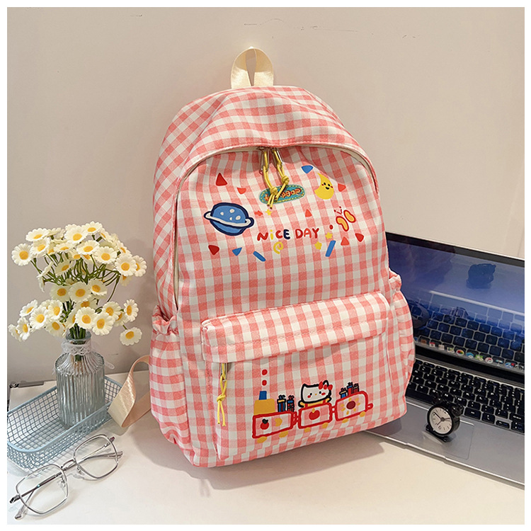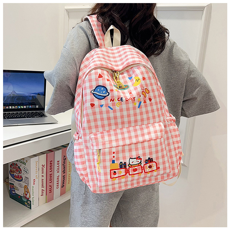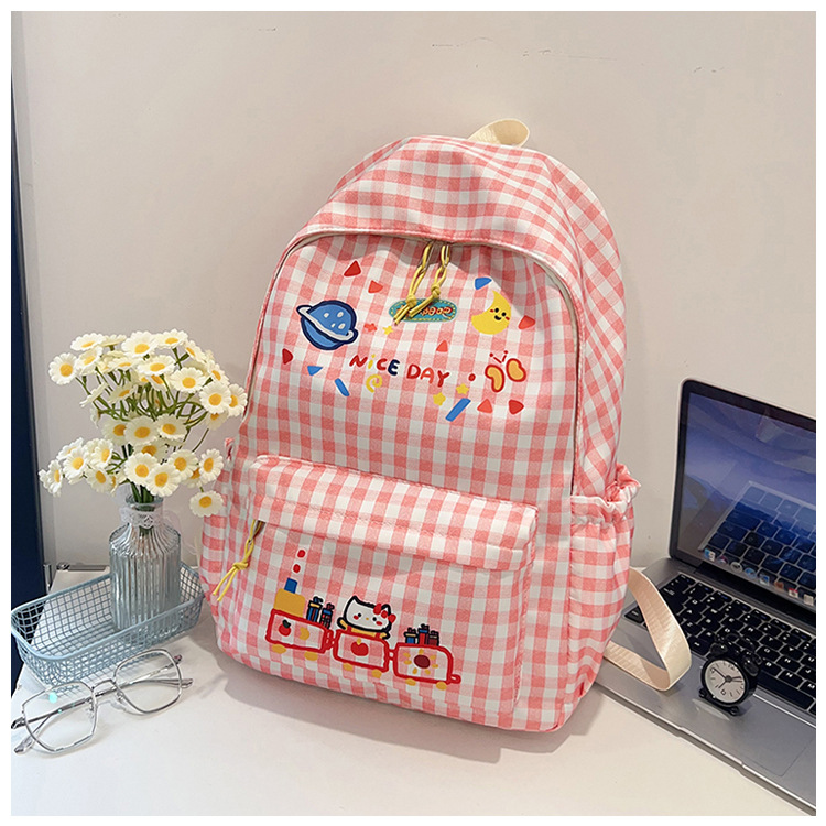 한국식 심플하고 귀여운 백팩, 새로운 트렌디한 질감, 대용량 격자 무늬 일본식 초등학교 가방