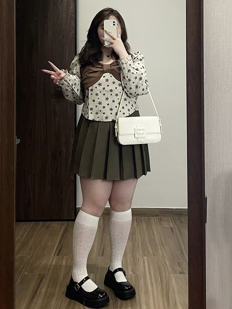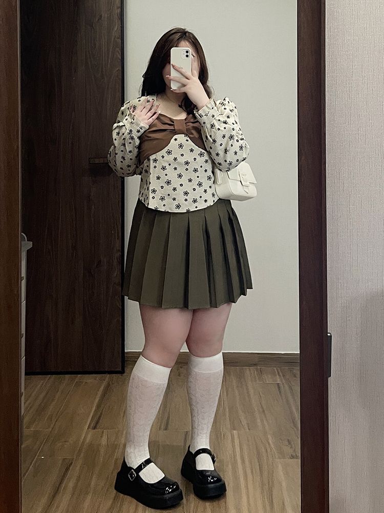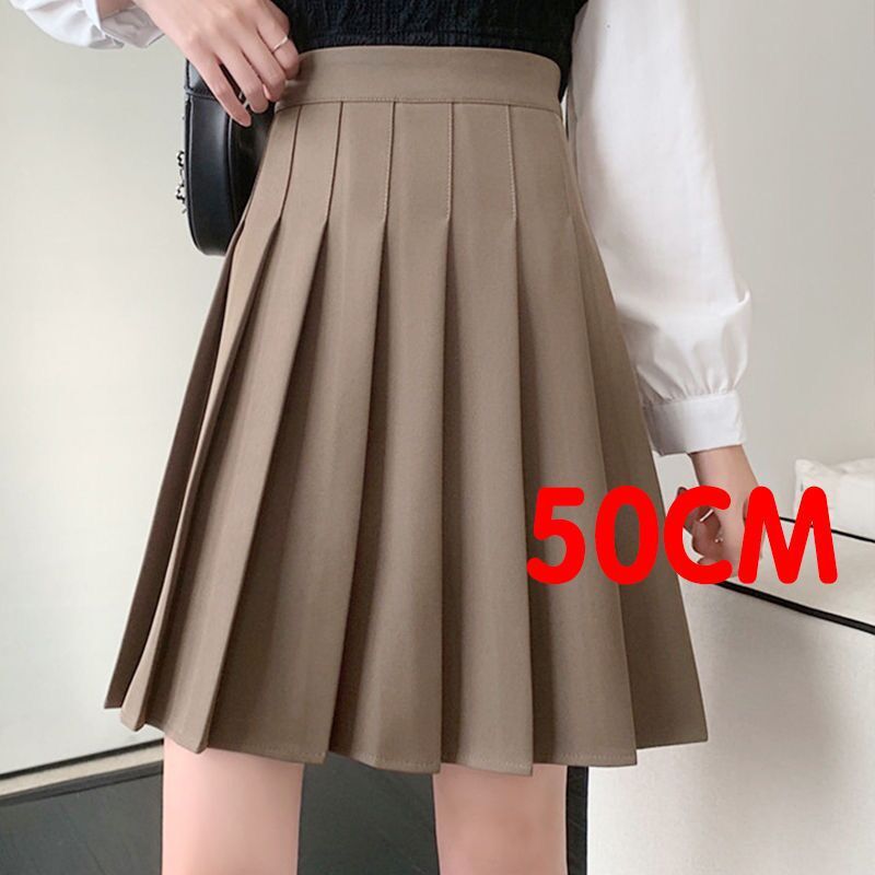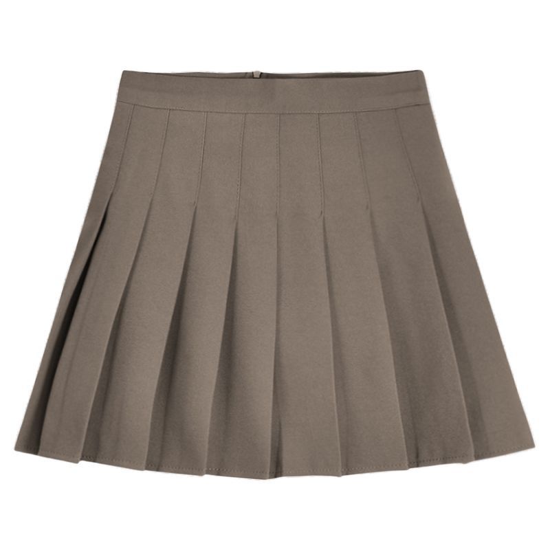 • 카키 플리츠 미디 스커트 [슈트 원단]