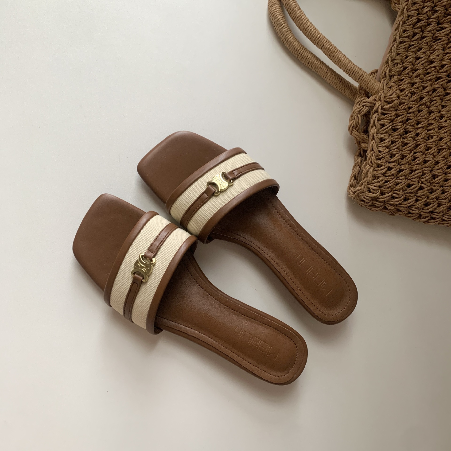 ~ 여성용 프렌치 슬리퍼 2025 신상 여름 두꺼운 굽 실버 샌들와 스커트 요정스토어 가기