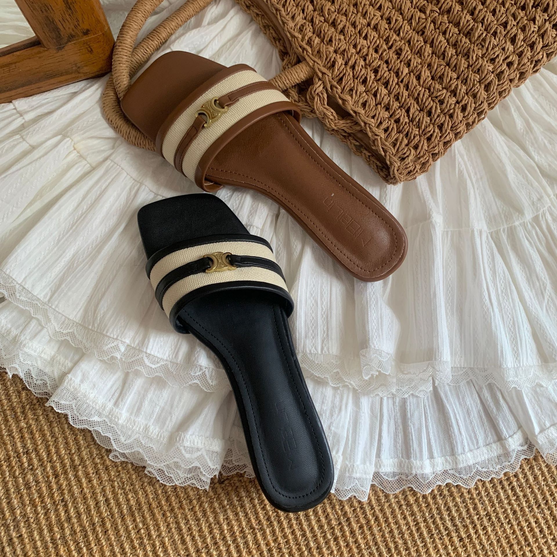 ~ 여성용 프렌치 슬리퍼 2025 신상 여름 두꺼운 굽 실버 샌들와 스커트 요정