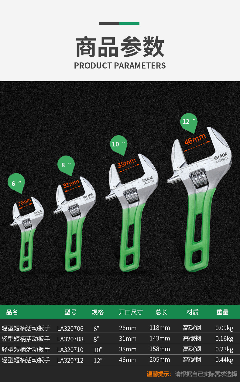 La A 짧은 손잡이 대형 개방형 욕실 렌치 다기능 경량 조절 렌치 파이프 렌치 파이프 렌치스토어 가기