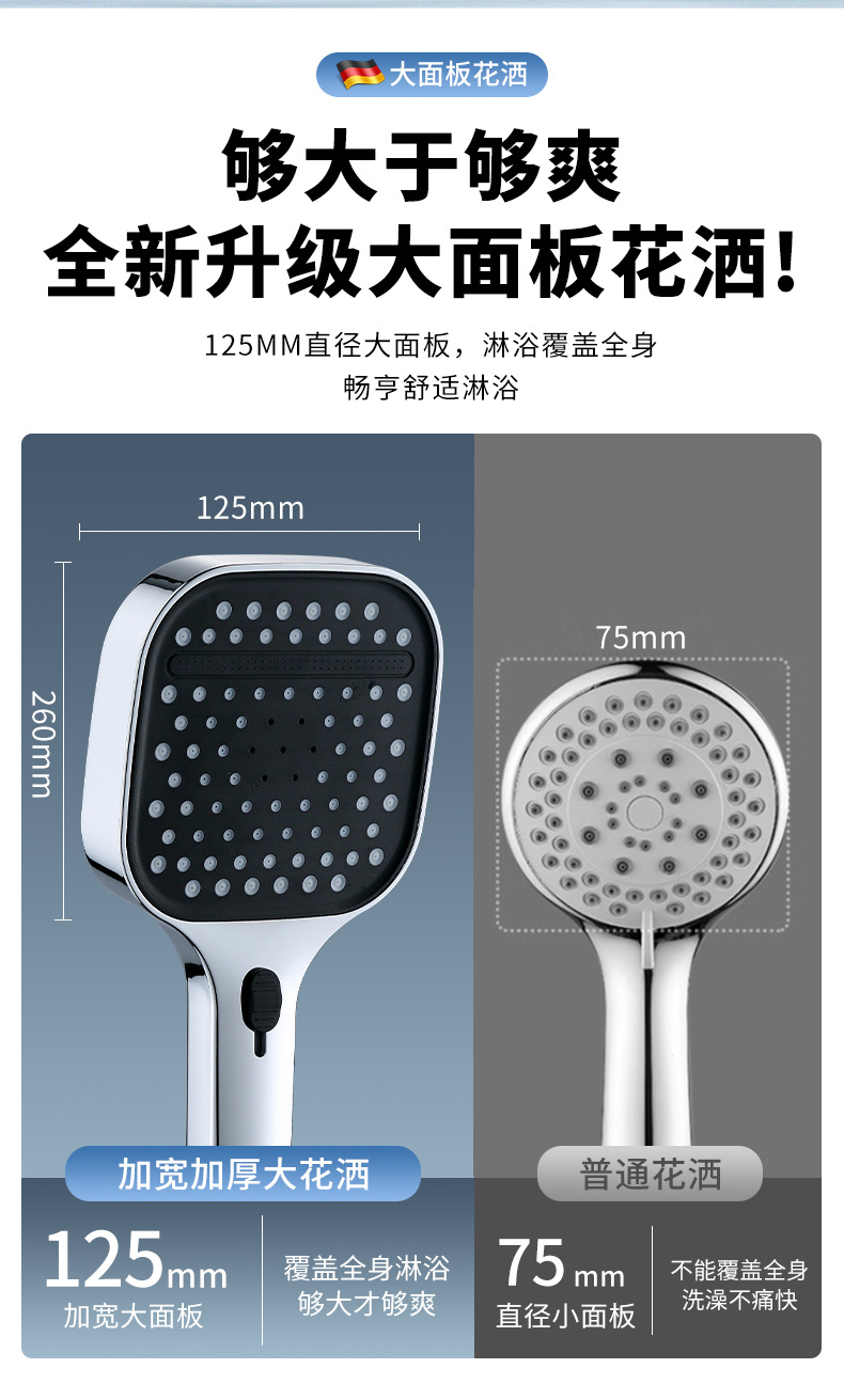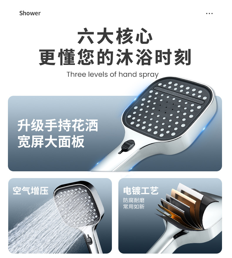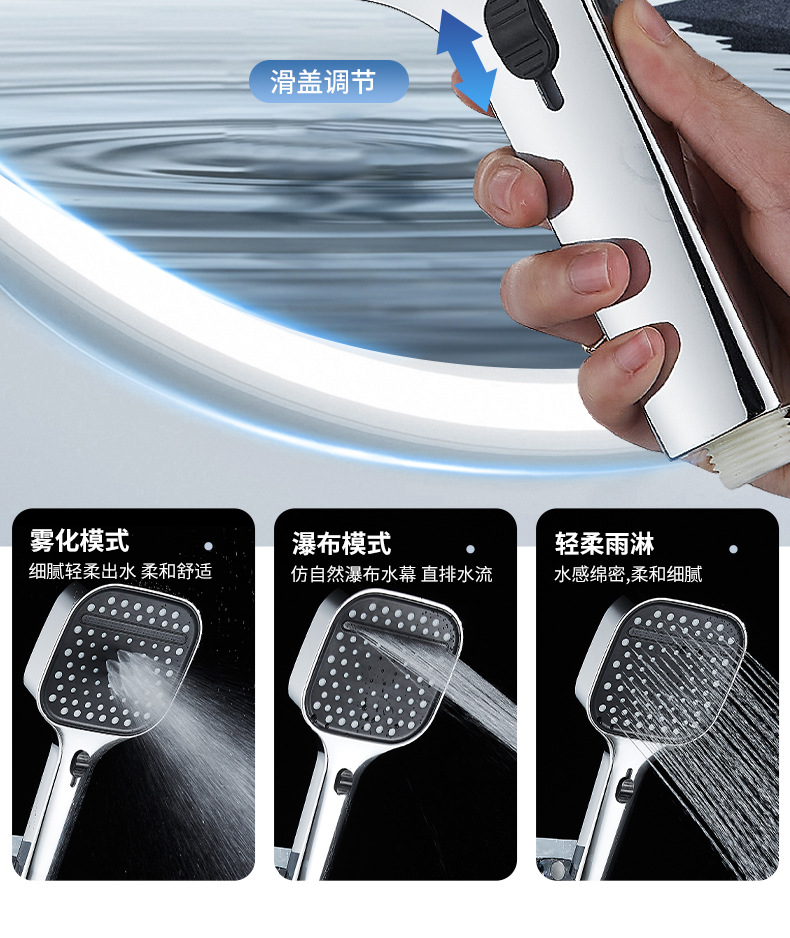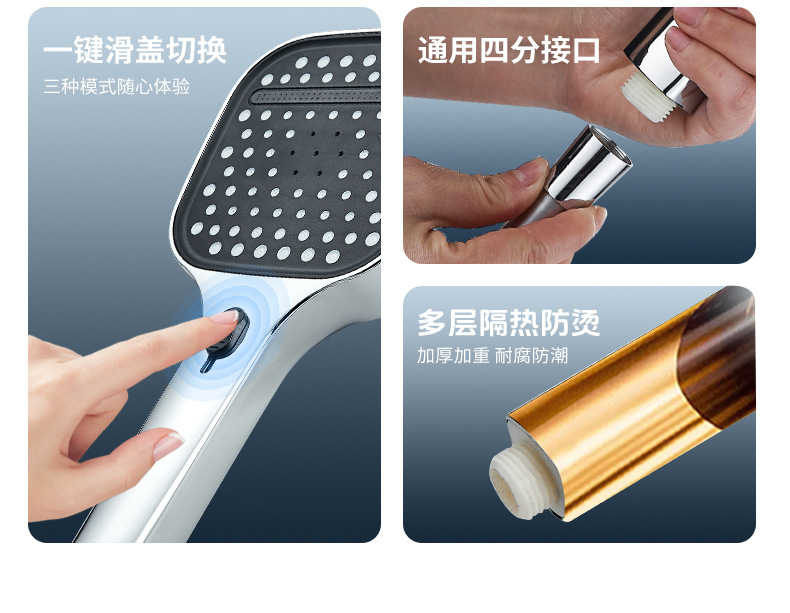 사각형 폭포형 비 샤워기 헤드 3단계 무단계 조절 대형 패널 고압 대형 물 분사 샤워 세트스토어 가기