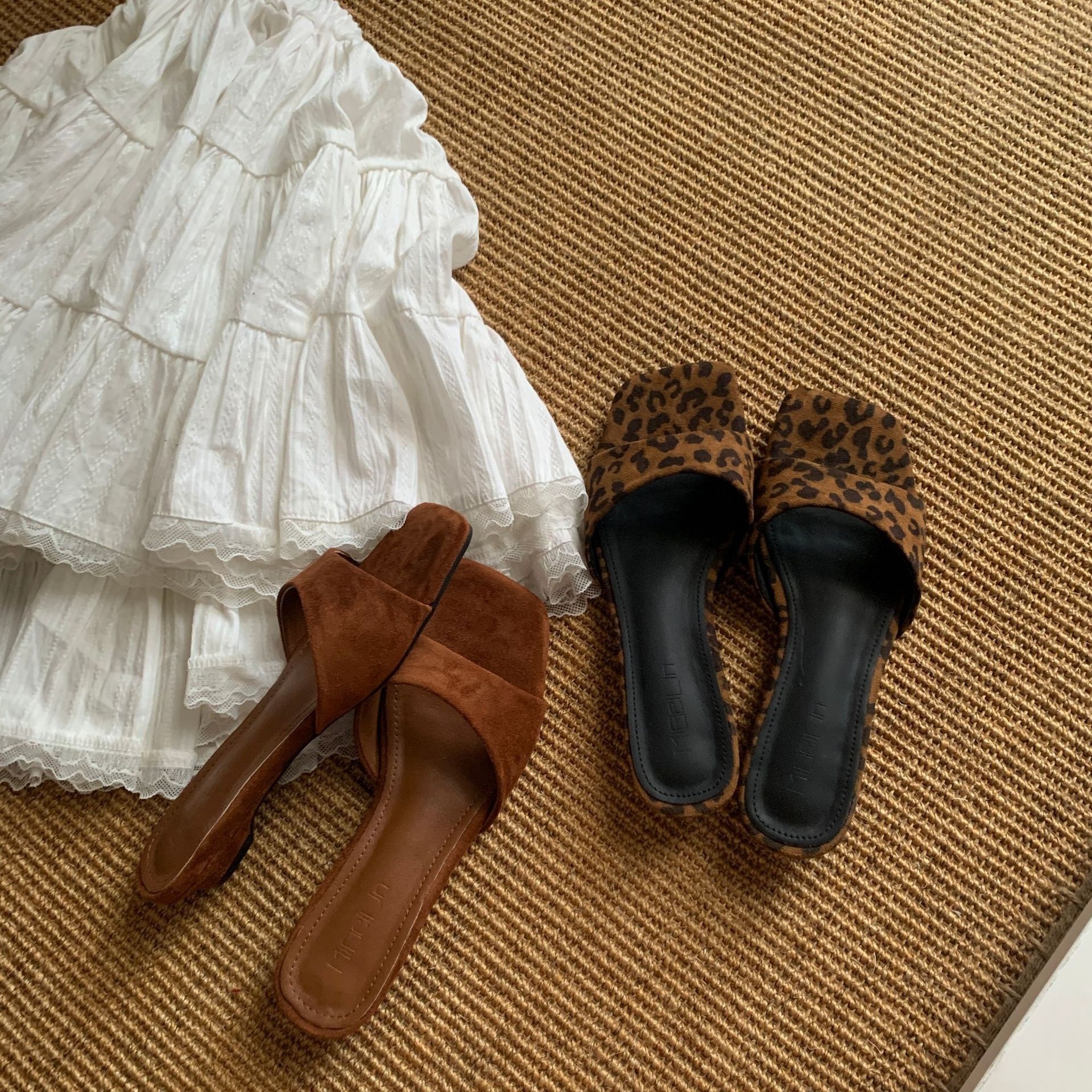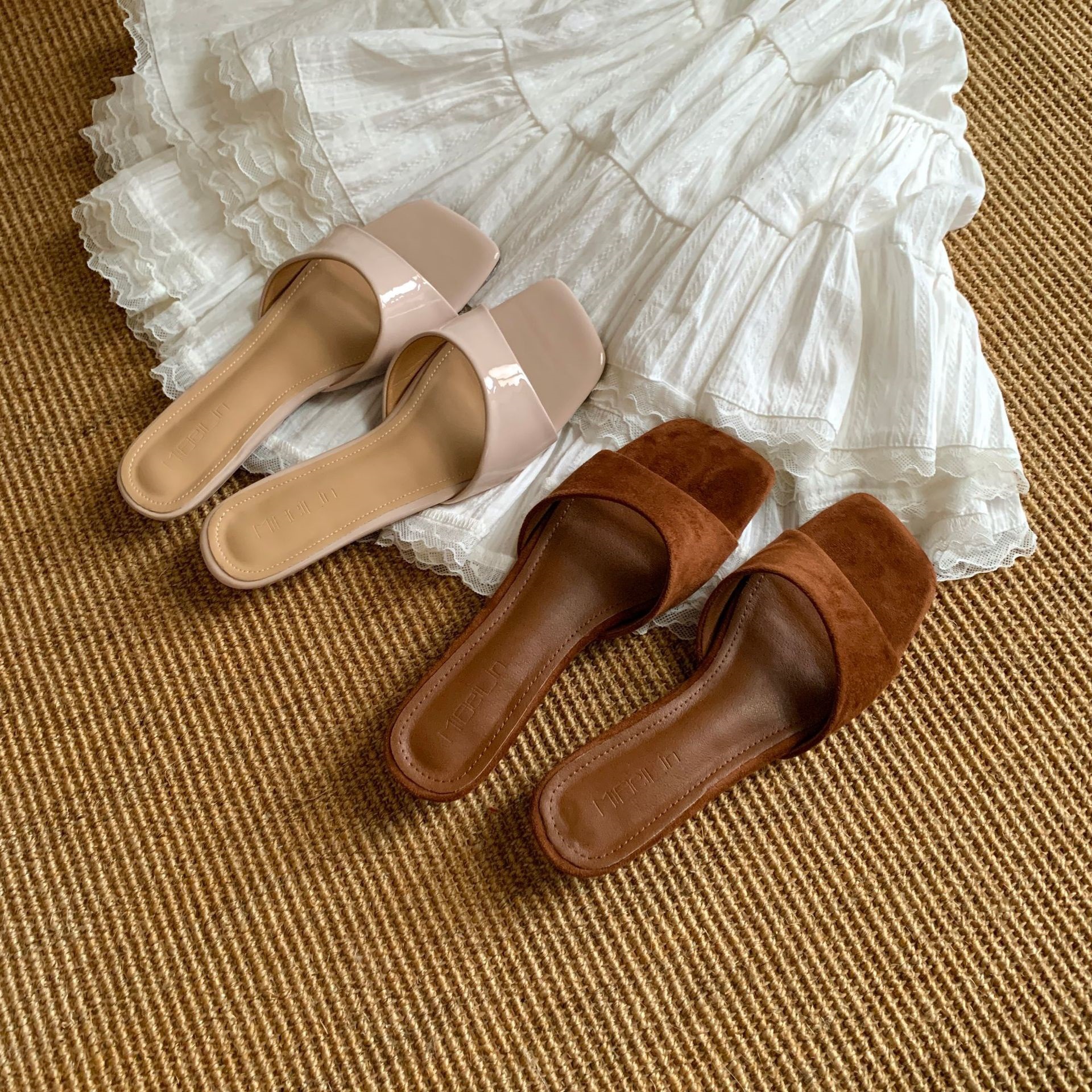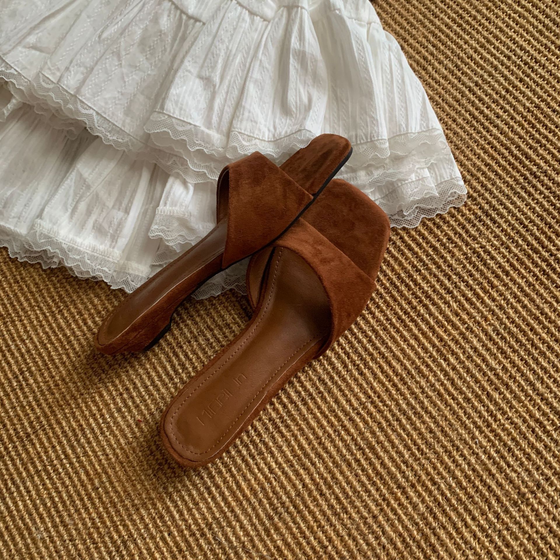 ~ 여성용 프렌치 슬리퍼 2025 신상 여름 두꺼운 굽 실버 샌들와 스커트 요정