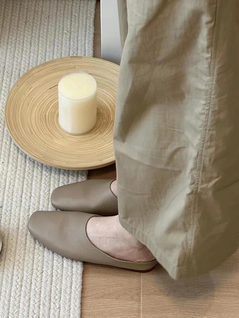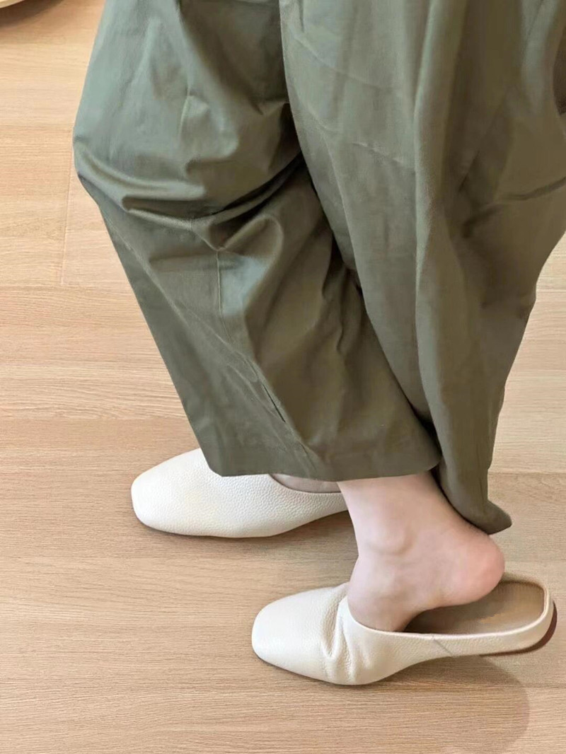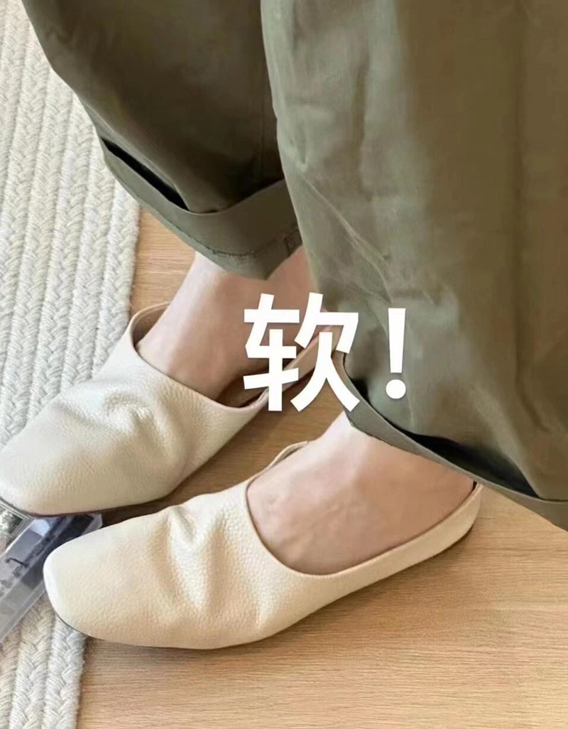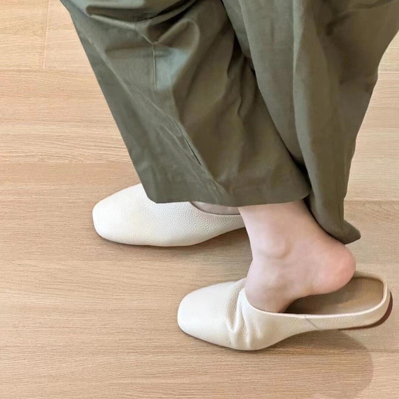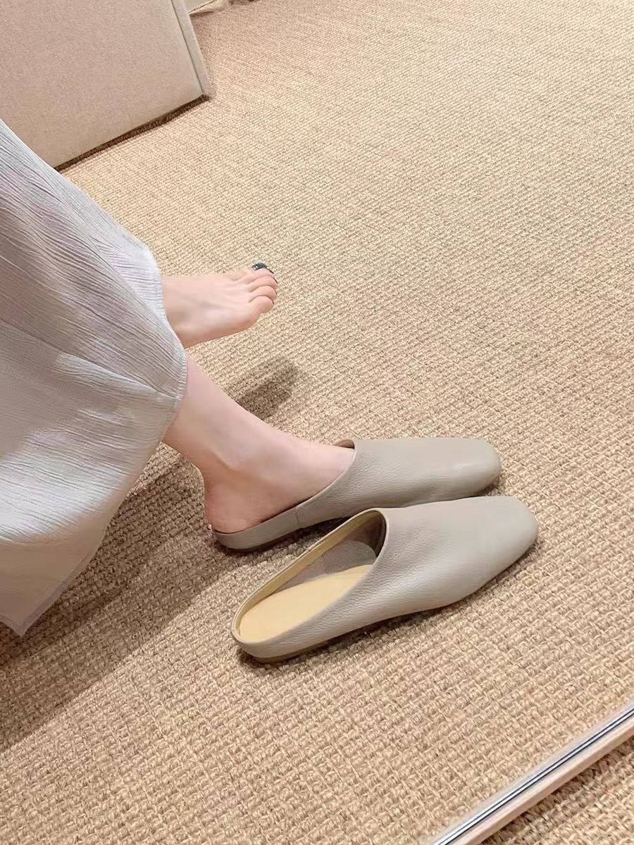 여름 아우터로 입기 좋은 여성용 새 소프트 가죽 플랫 슬리퍼, 부드럽고 찰랑찰랑하고 신기 편한 여성용 바오터우 슬립온 뮬러 하프 슬리퍼