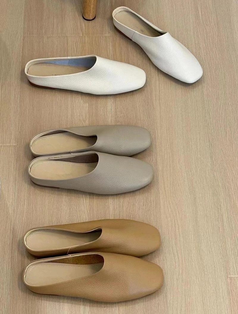 여름 아우터로 입기 좋은 여성용 새 소프트 가죽 플랫 슬리퍼, 부드럽고 찰랑찰랑하고 신기 편한 여성용 바오터우 슬립온 뮬러 하프 슬리퍼스토어 가기