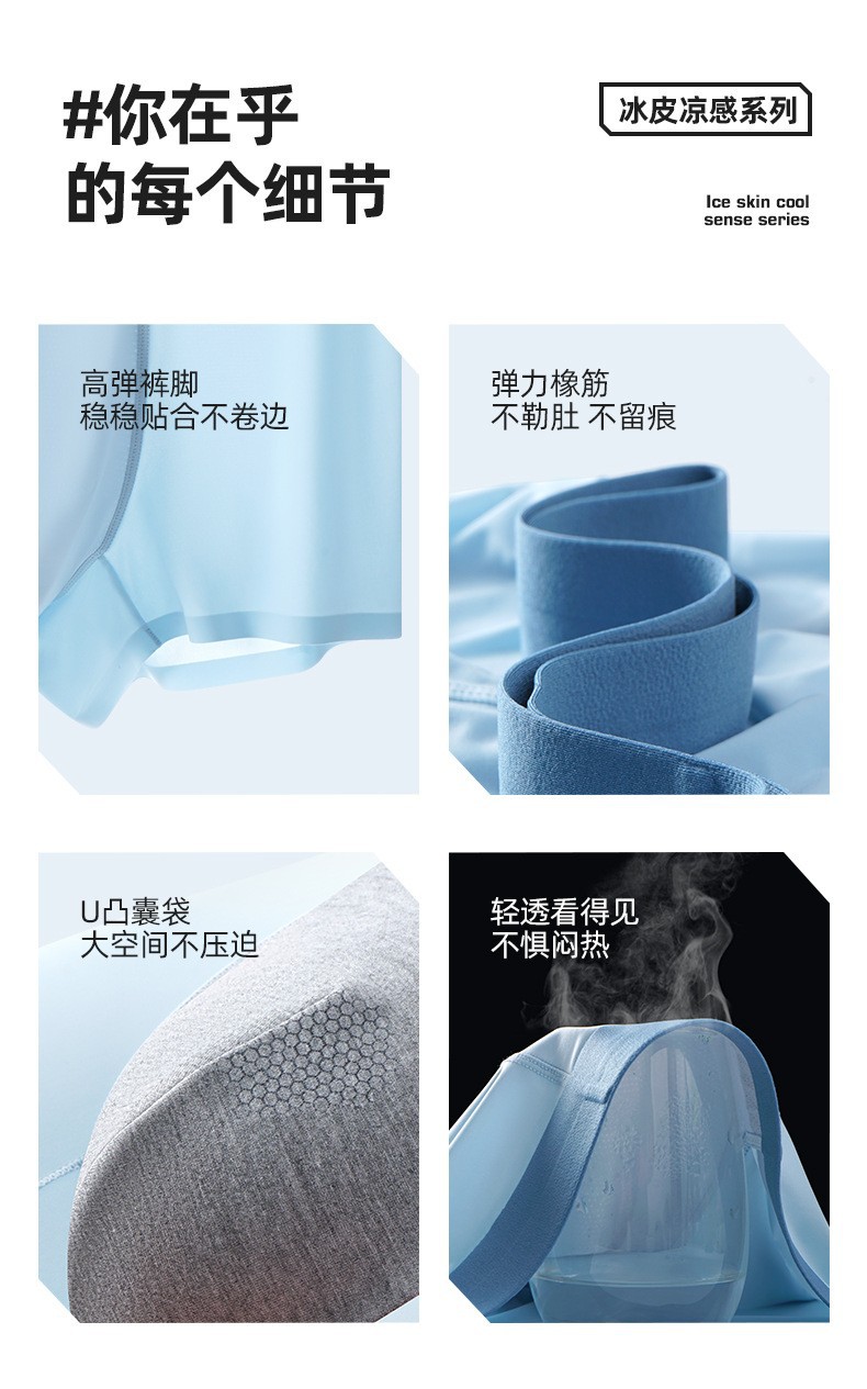 여름용 아이스 실크 남성 속옷 대형 사이즈 통기성 항균 사각팬티 얇은 학생용 남학생 아이스감 사각반바지스토어 가기