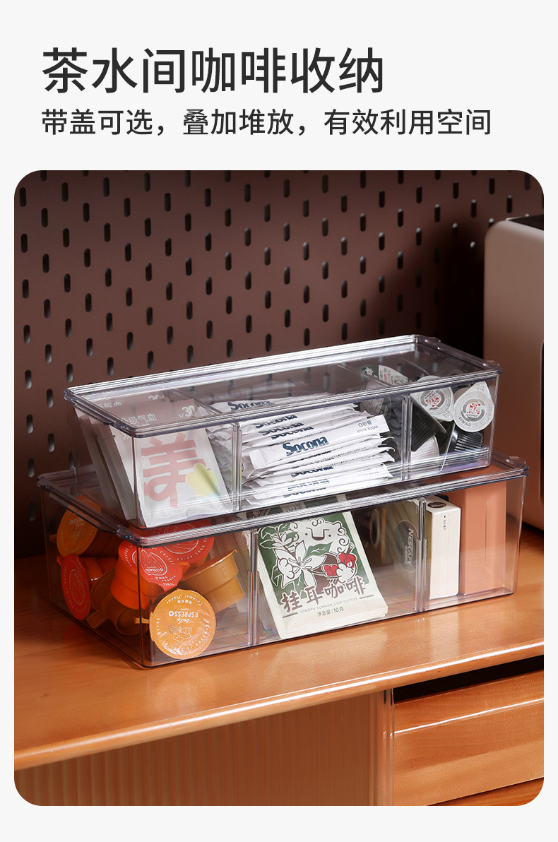 • [뚜껑 포함] 탈부착 가능한 칸막이가 있는 투명 상자 - 중형 1개