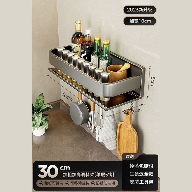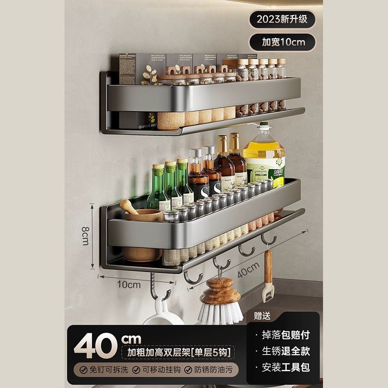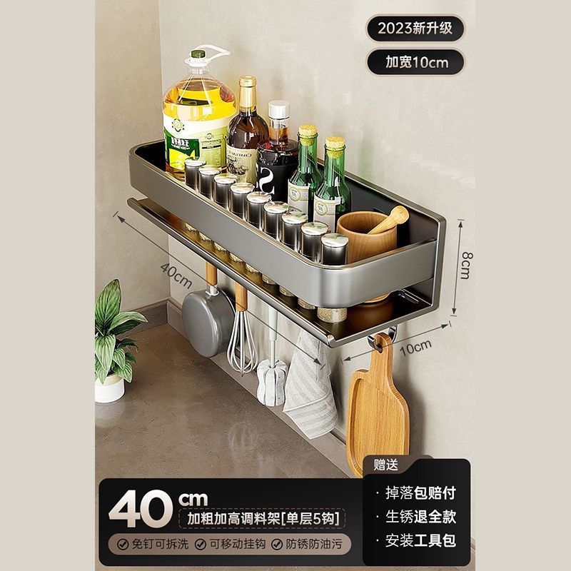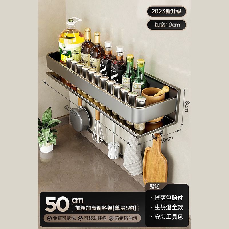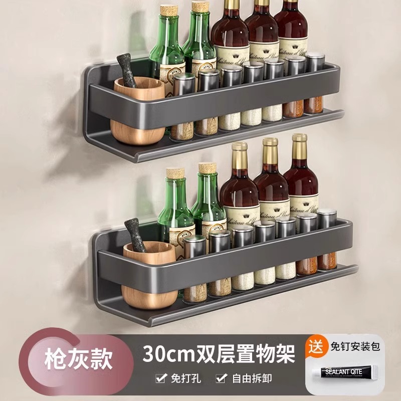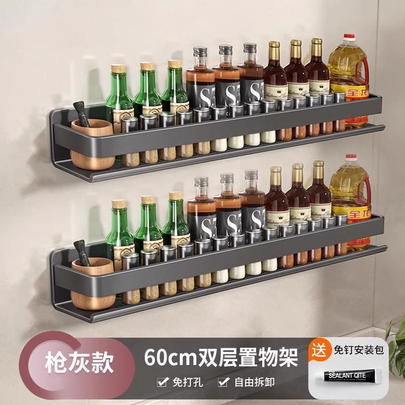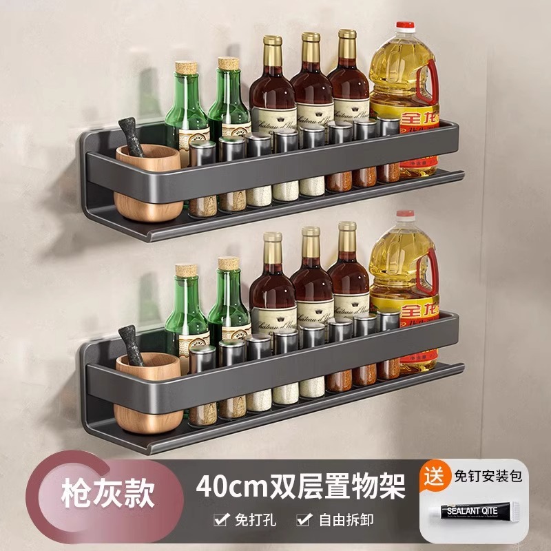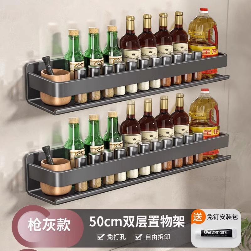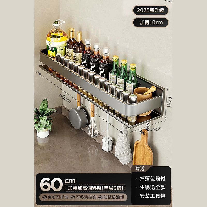 주방 조미료 랙, 펀치 없는 가정용 벽 탈착식 걸이, 벽걸이 주방 조리기구 조미료 보관 및 정리 랙스토어 가기