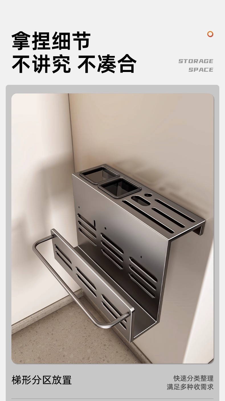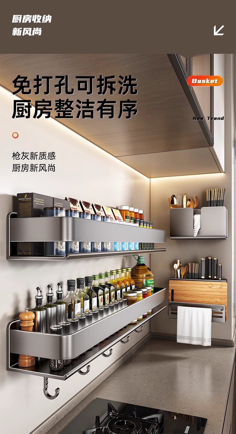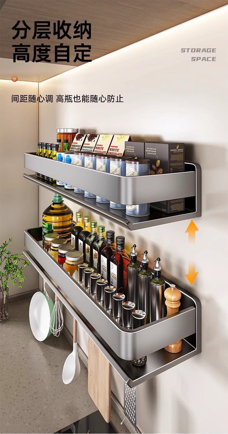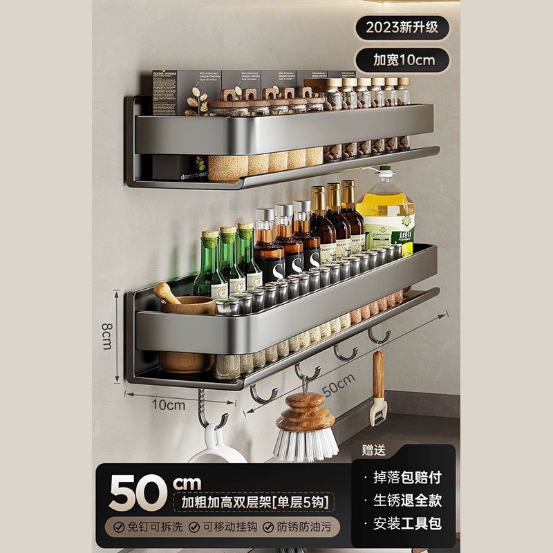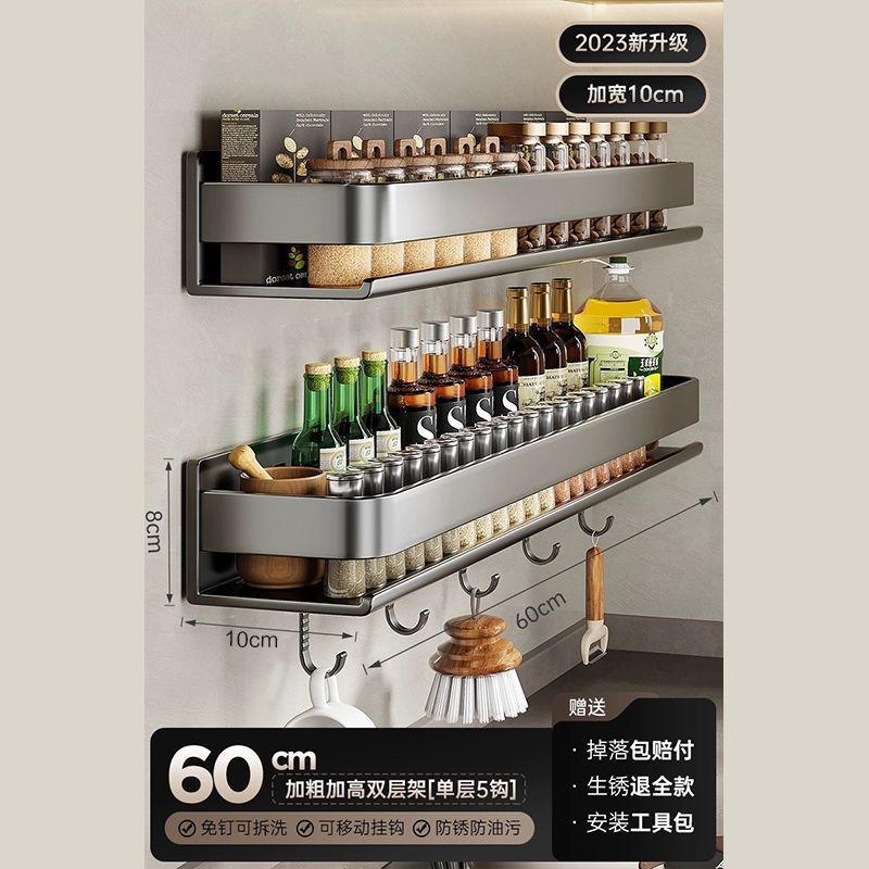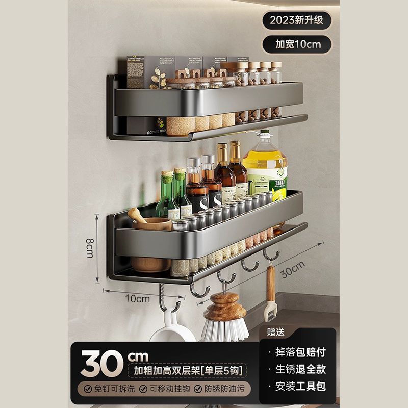 주방 조미료 랙, 펀치 없는 가정용 벽 탈착식 걸이, 벽걸이 주방 조리기구 조미료 보관 및 정리 랙스토어 가기