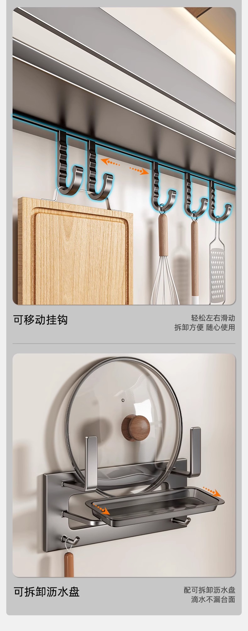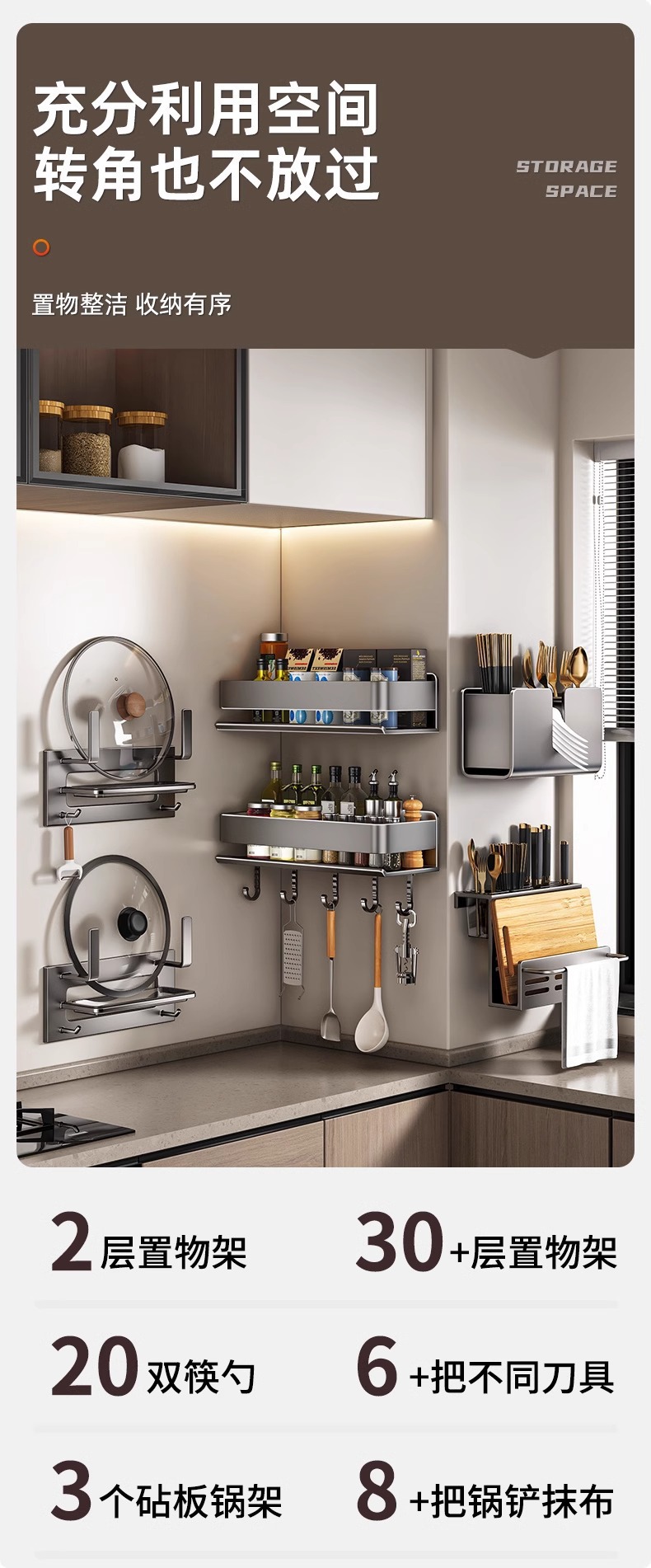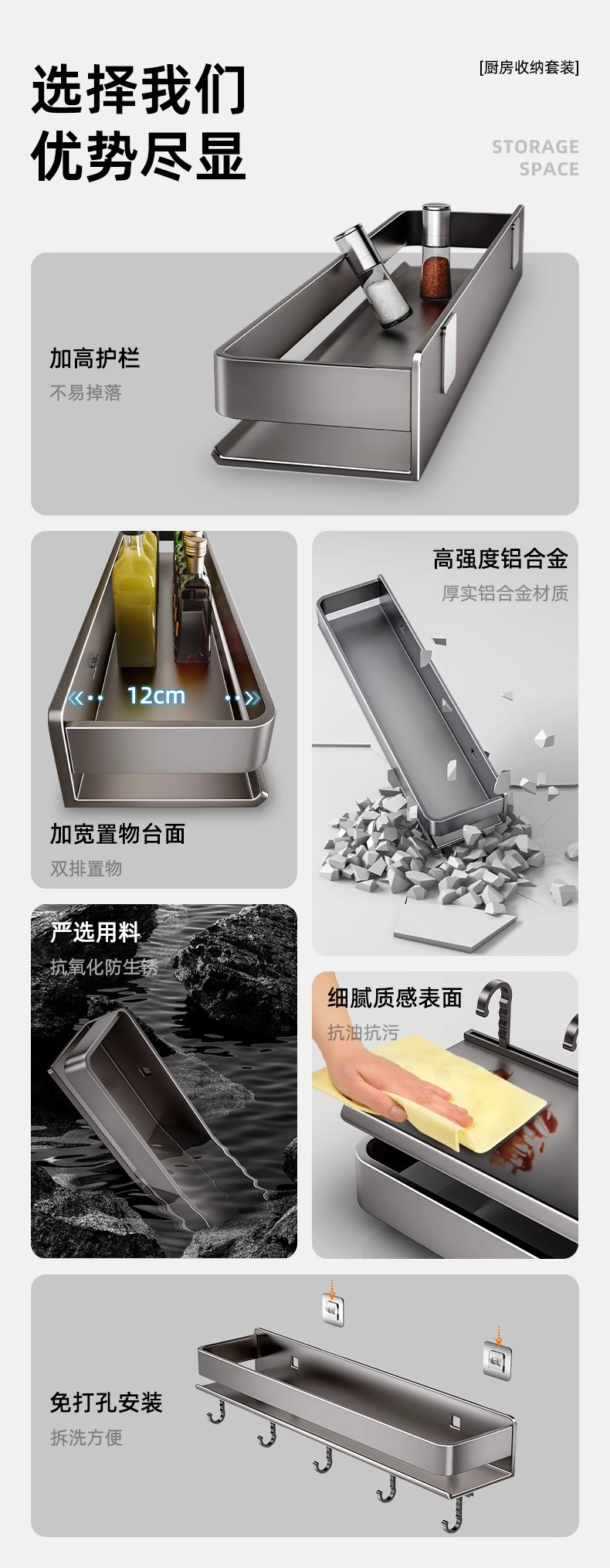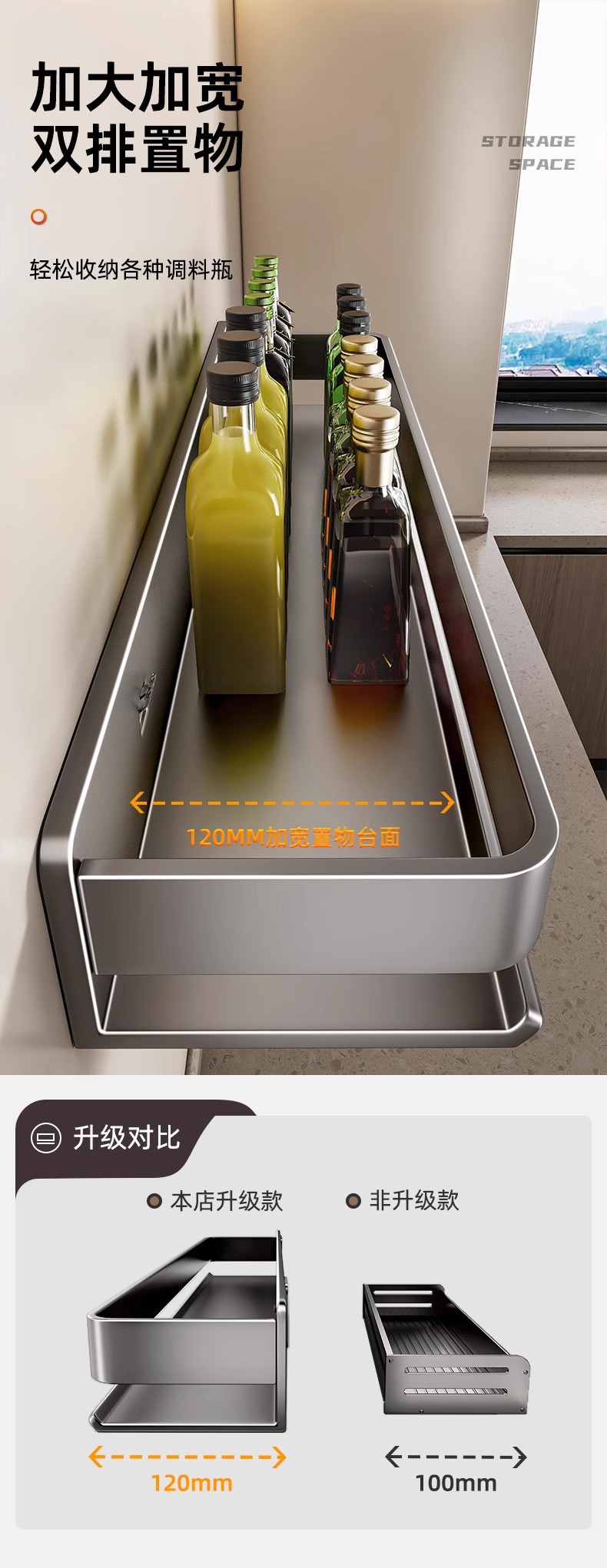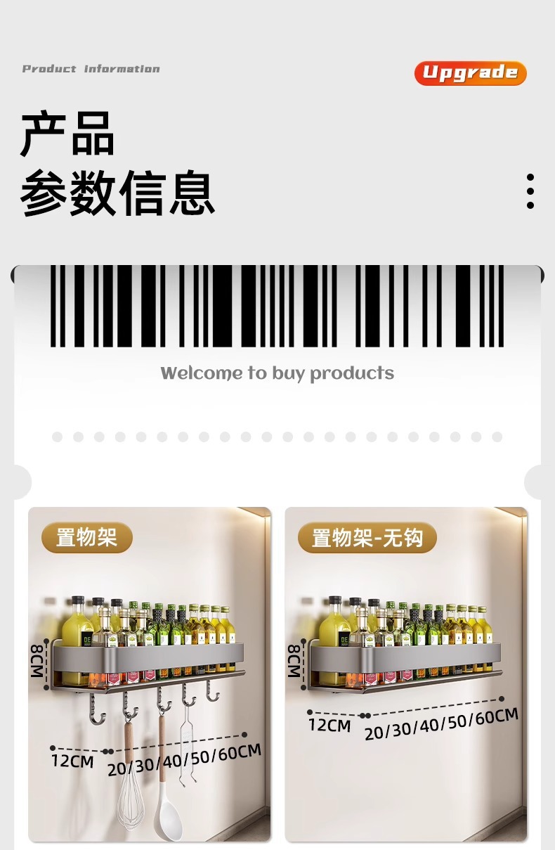 주방 조미료 랙, 펀치 없는 가정용 벽 탈착식 걸이, 벽걸이 주방 조리기구 조미료 보관 및 정리 랙스토어 가기
