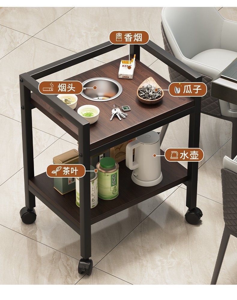 • 마작 테이블 사이드 테이블 - [월넛 컬러 더블 레이어] + 재떨이 + 바퀴