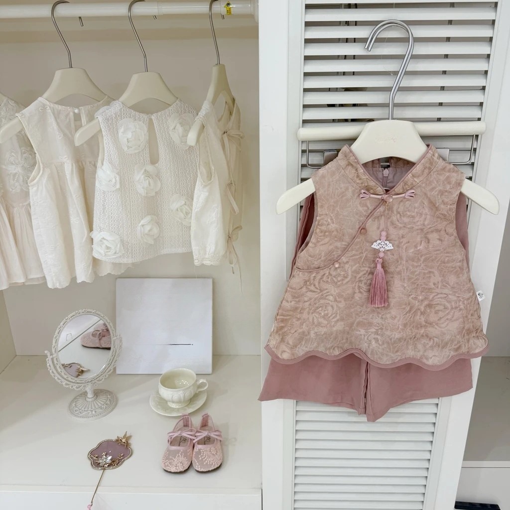 여자 중국 스타일 정장 2025 여름 오뜨 꾸뛰르 여자 여름 핑크 중국 스타일 탑 새로운 중국 스타일 와이드 레그 바지 정장스토어 가기