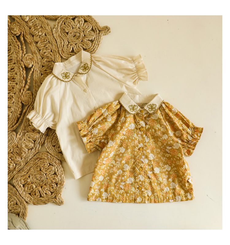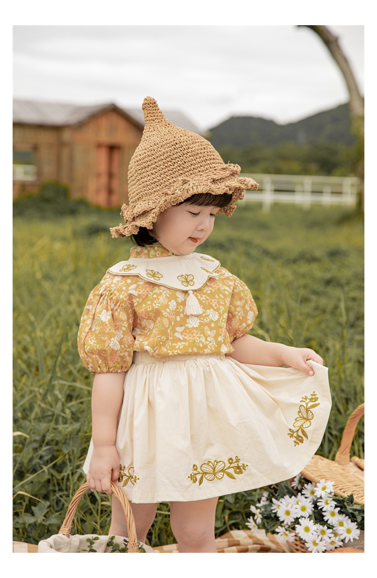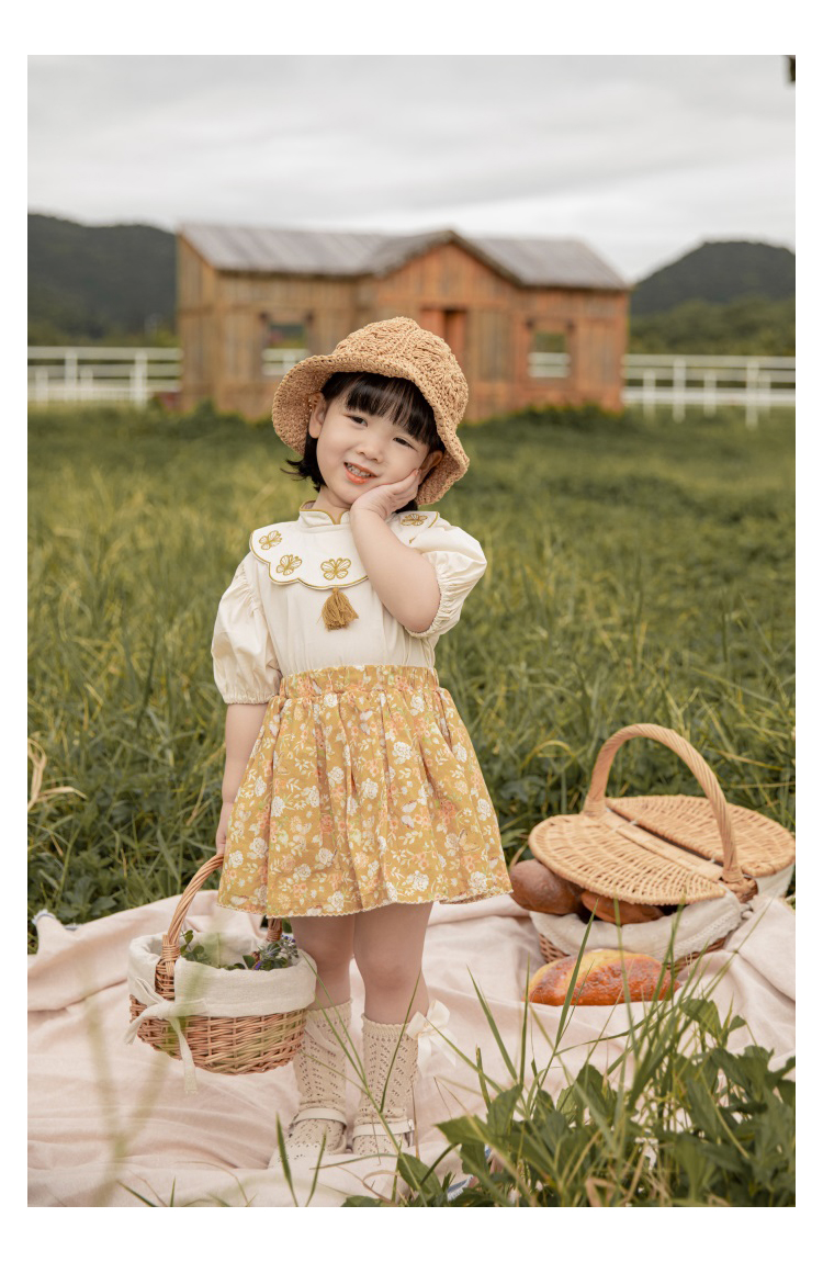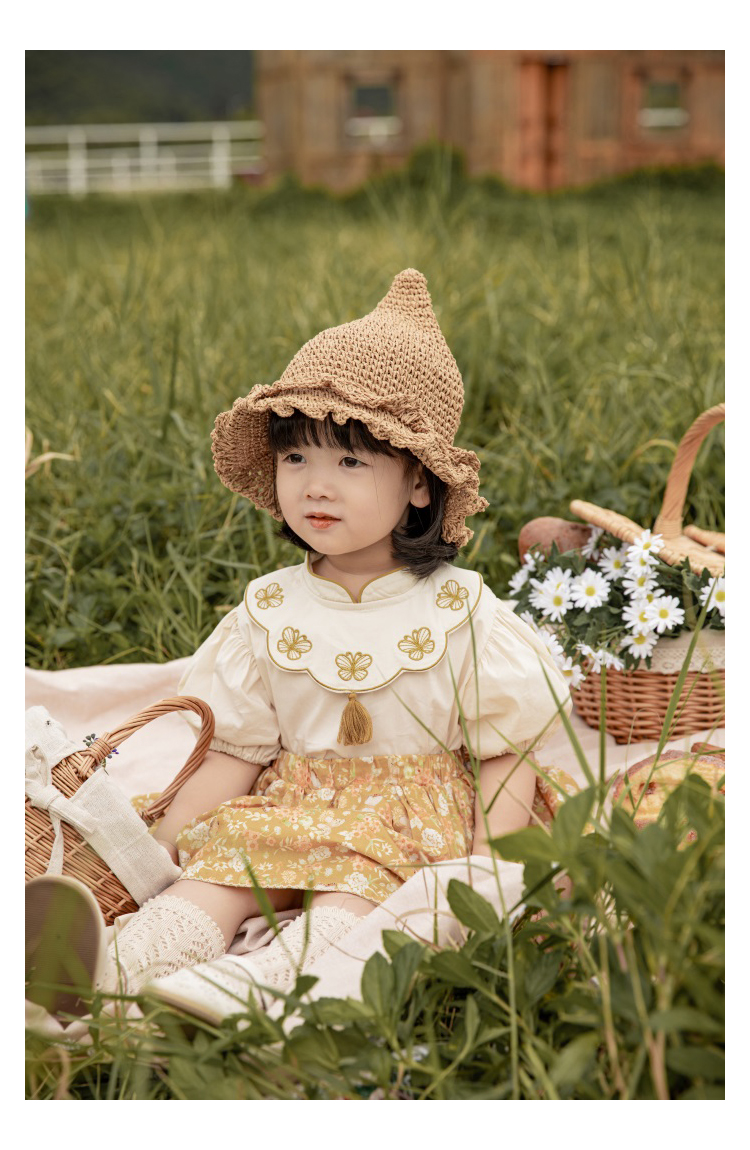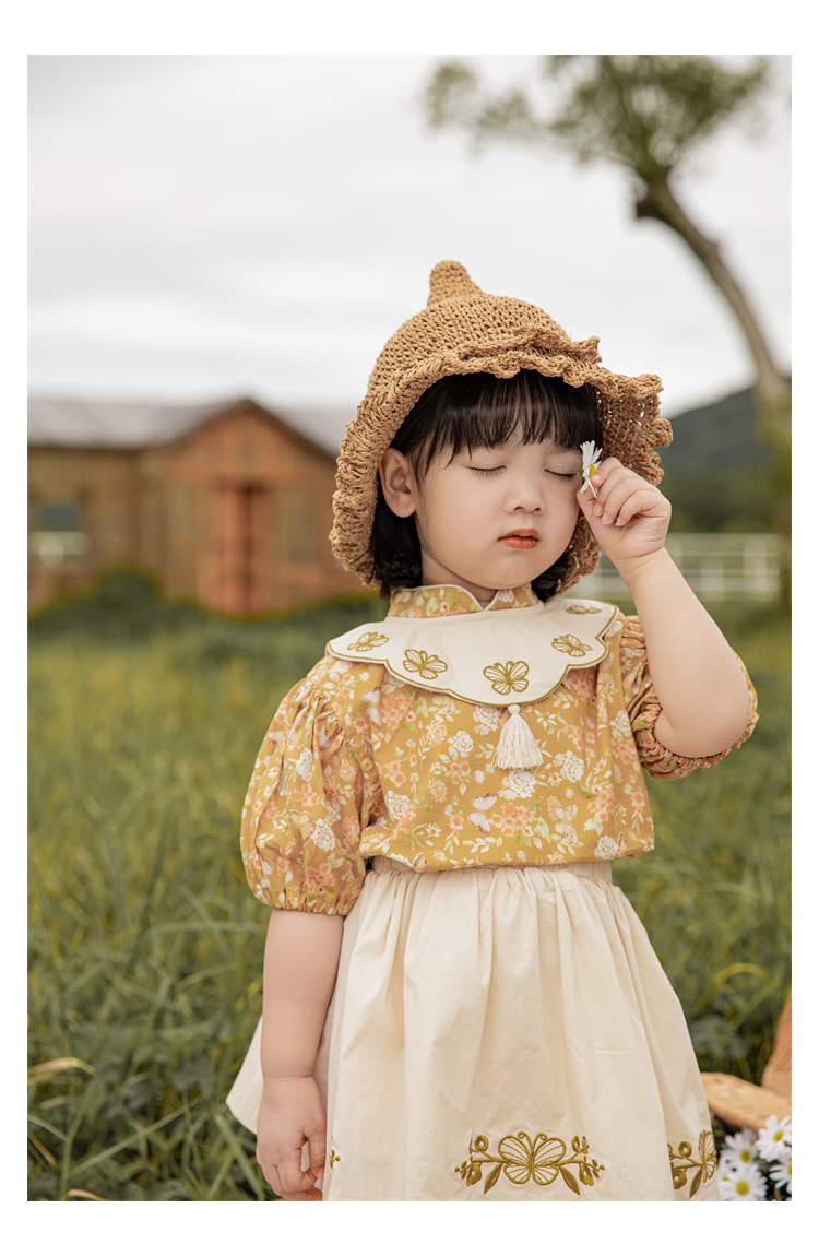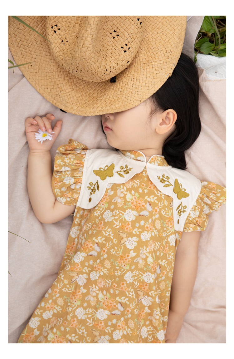 Wulibuyi 여름 목가적 스타일 소녀 자수 대비 인형 칼라 드레스 아기 반팔 반바지 정장 유행스토어 가기