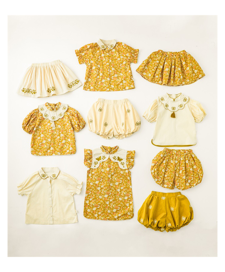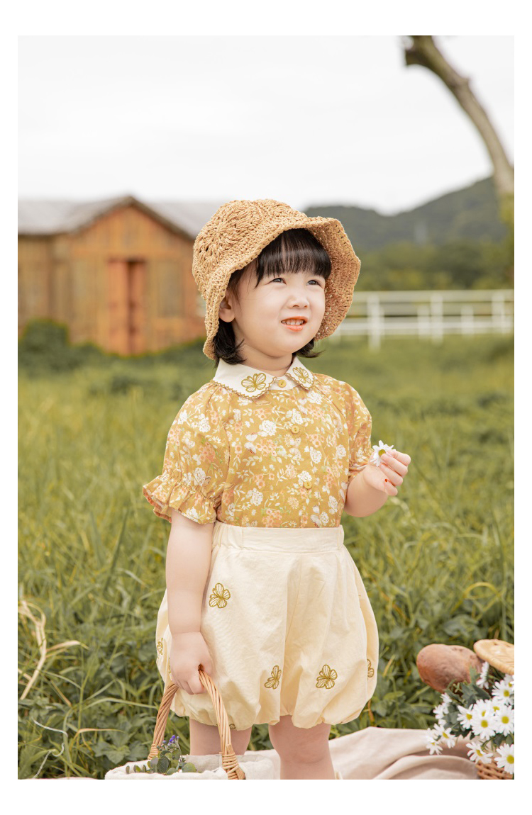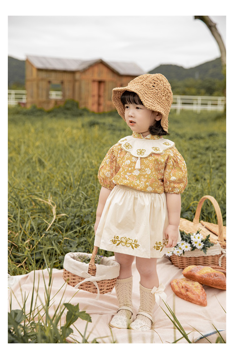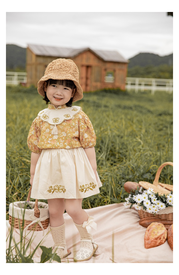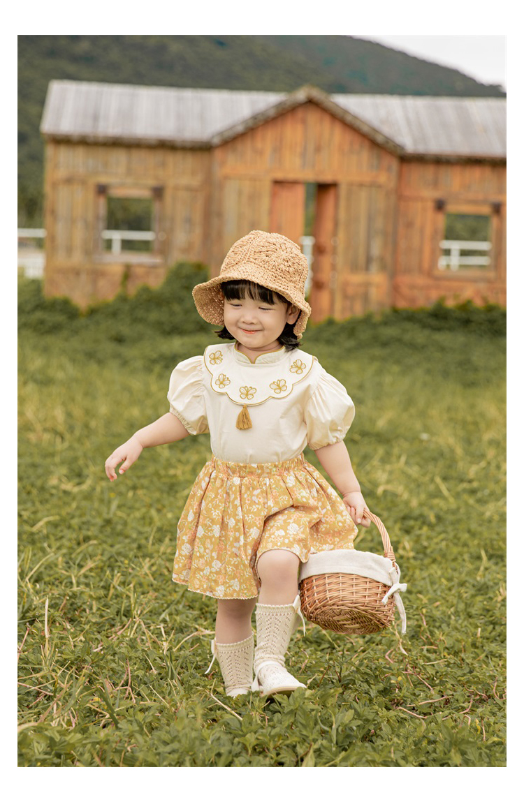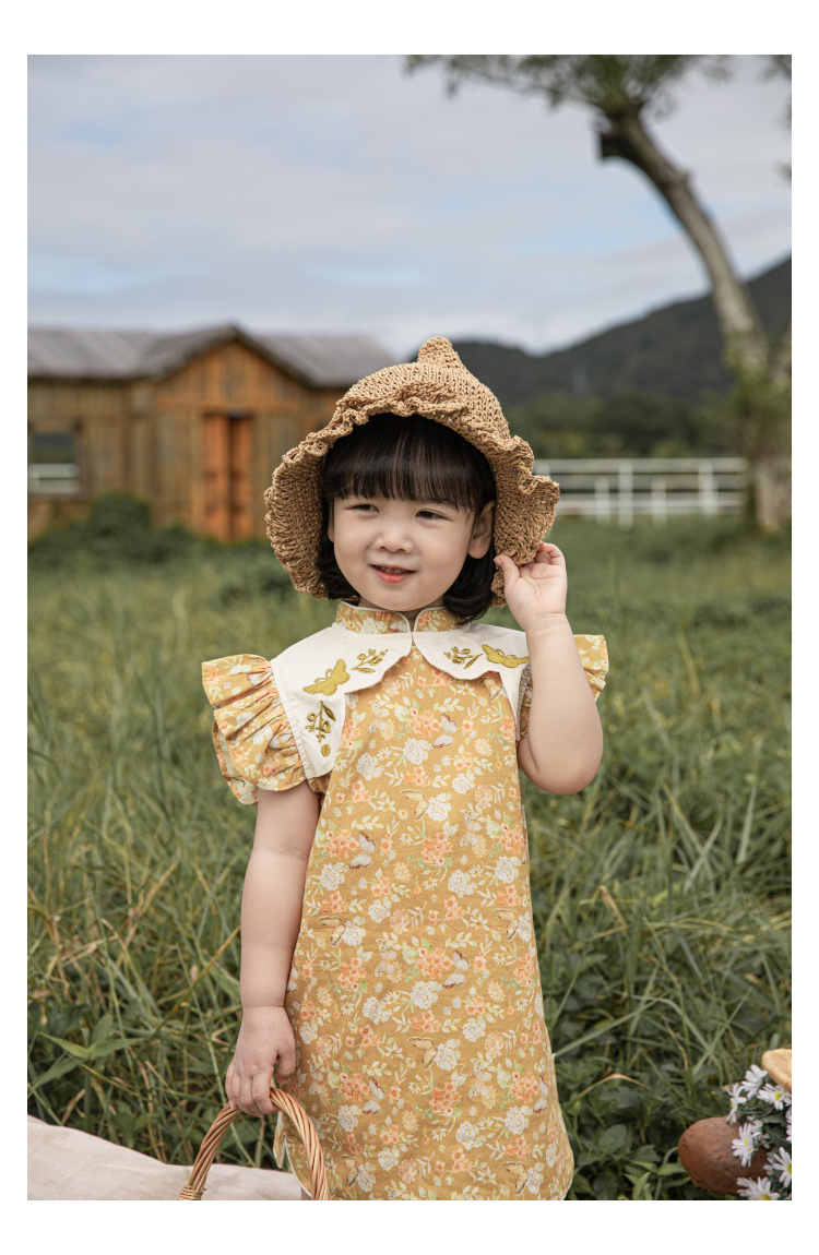 Wulibuyi 여름 목가적 스타일 소녀 자수 대비 인형 칼라 드레스 아기 반팔 반바지 정장 유행스토어 가기
