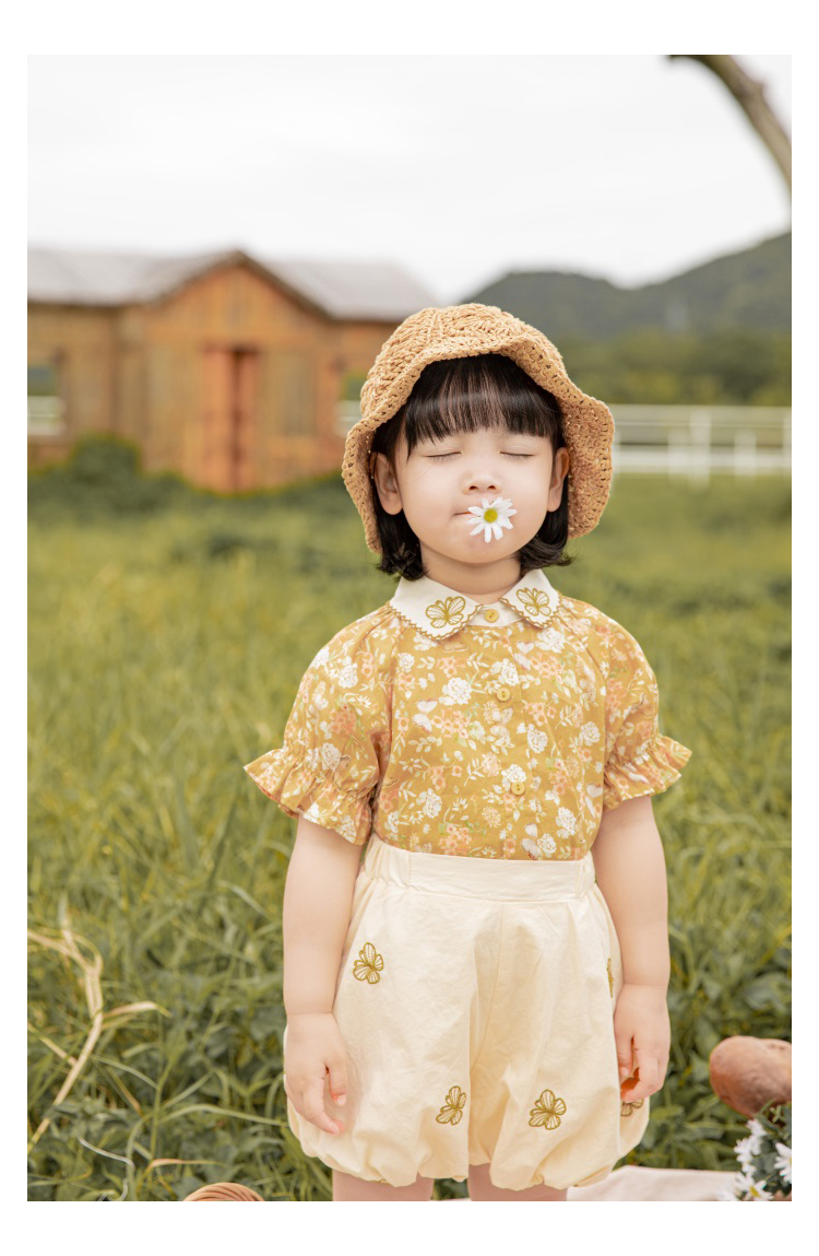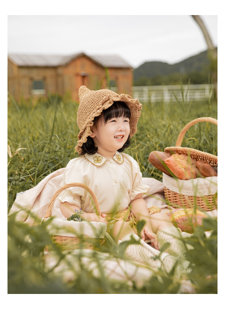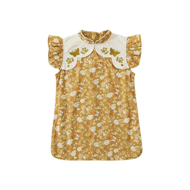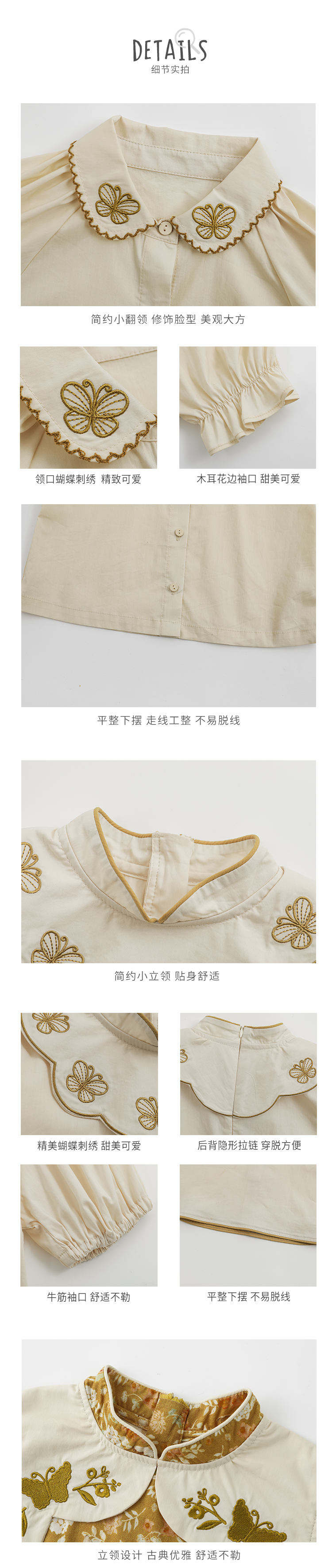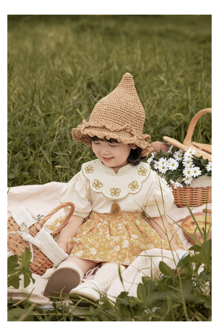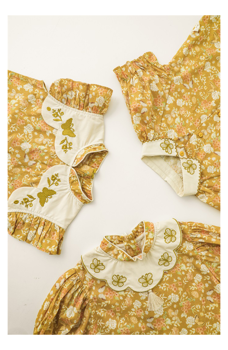 Wulibuyi 여름 목가적 스타일 소녀 자수 대비 인형 칼라 드레스 아기 반팔 반바지 정장 유행스토어 가기