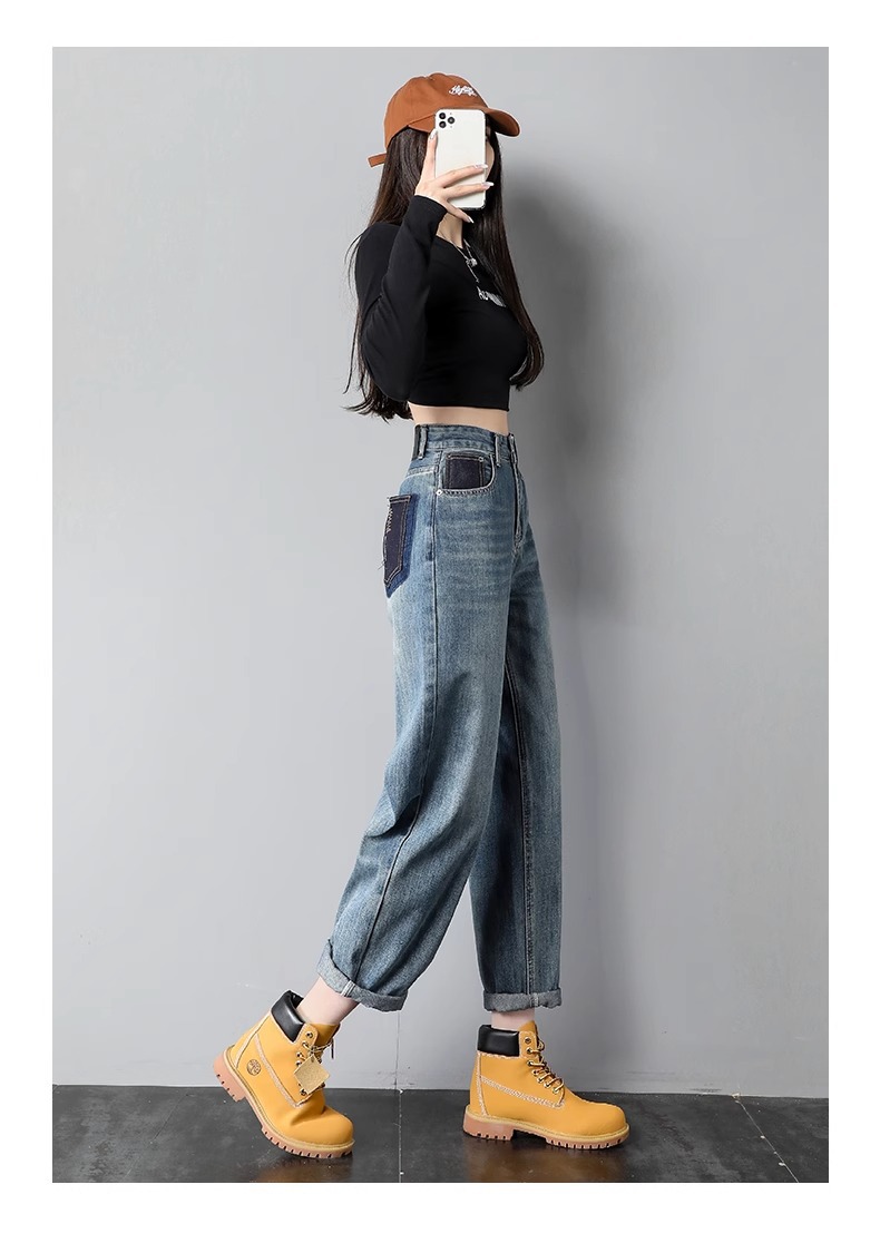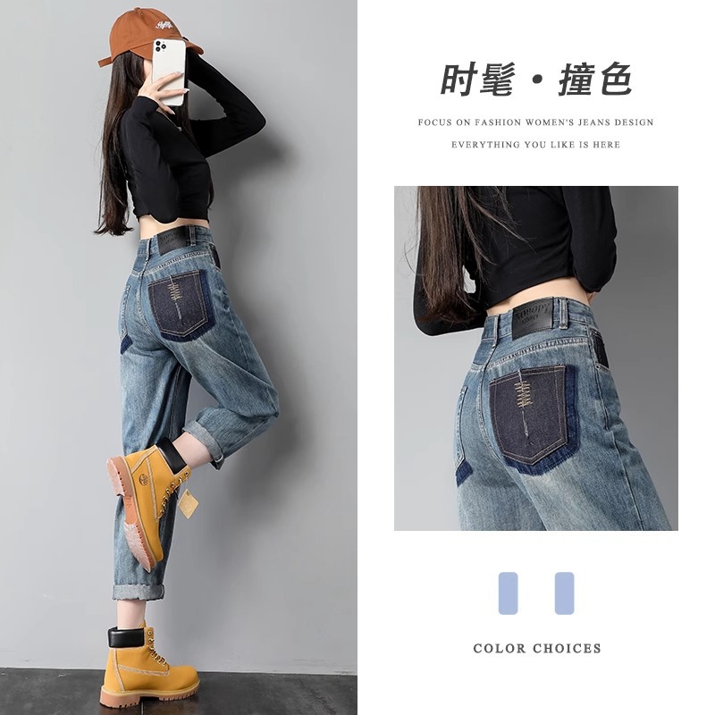2025년 여름 여성을 위한 크로스보더 AliExpress 하이웨이스트 하렘 청바지 새로운 루즈 스트레이트 트렌디 브랜드 다용도 긴 바지스토어 가기