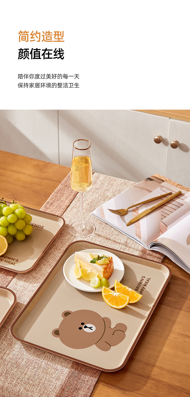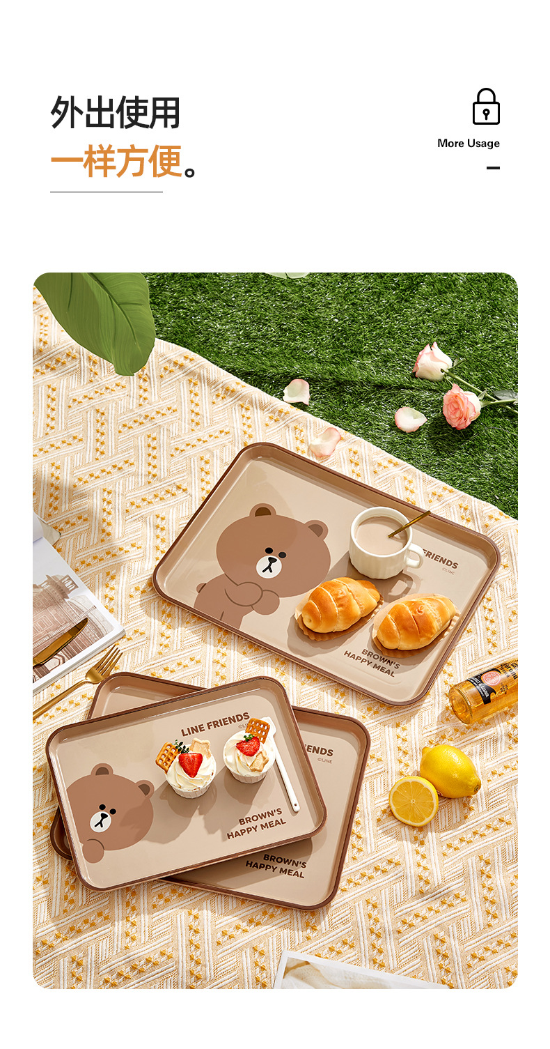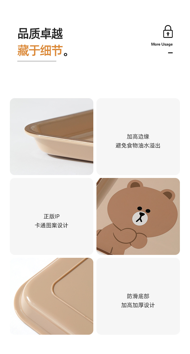 브라운 베어 디너 플레이트 직장인 수통 레스토랑 특별 식사 플레이트 과일 플레이트 가정용 직사각형 플라스틱 트레이