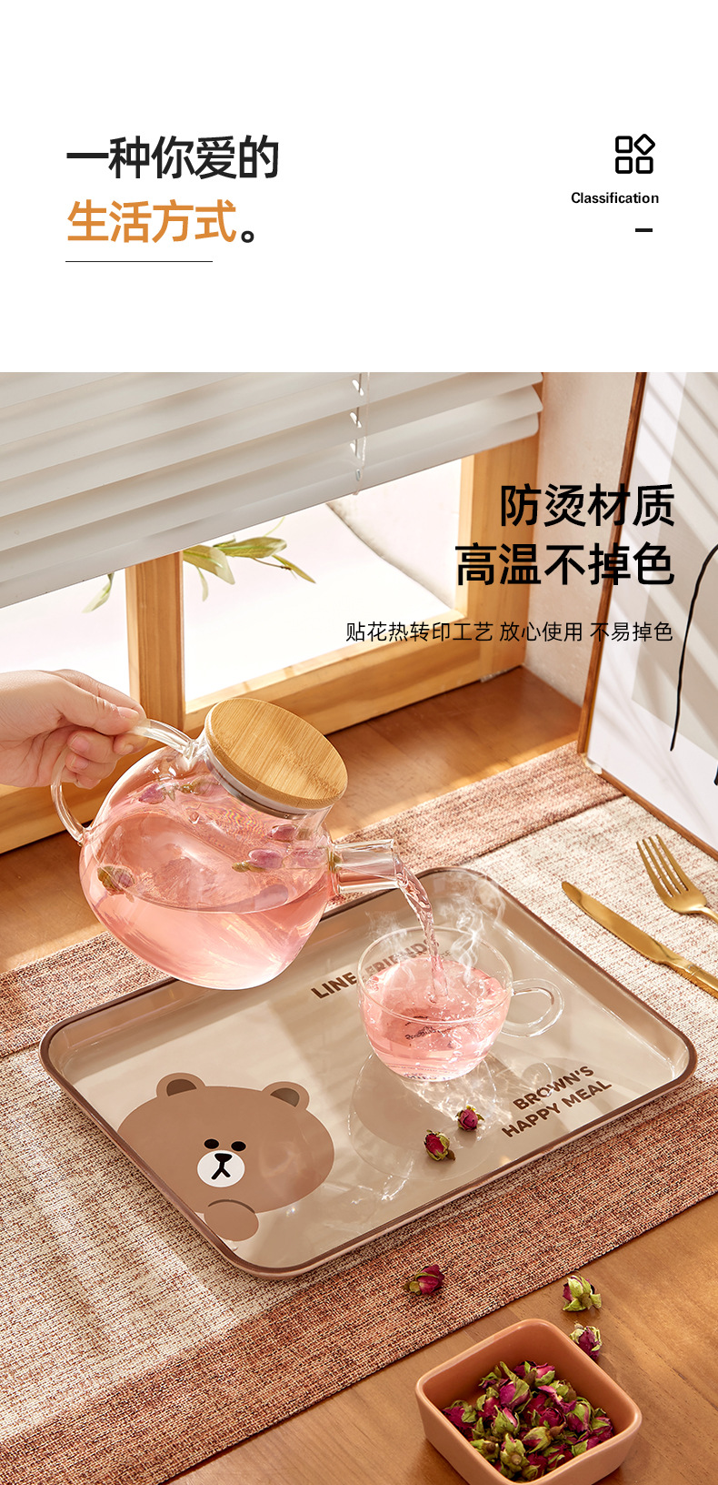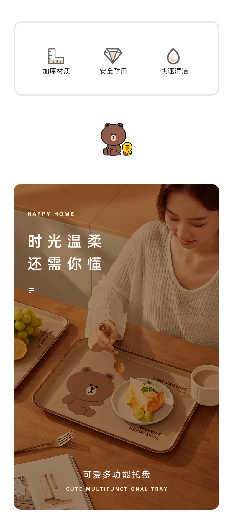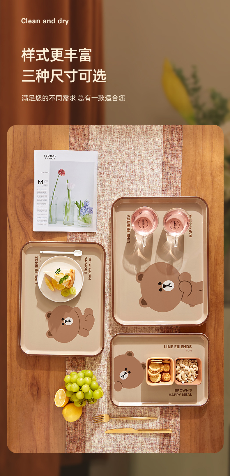 브라운 베어 디너 플레이트 직장인 수통 레스토랑 특별 식사 플레이트 과일 플레이트 가정용 직사각형 플라스틱 트레이
