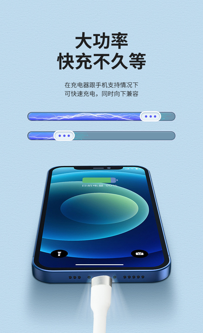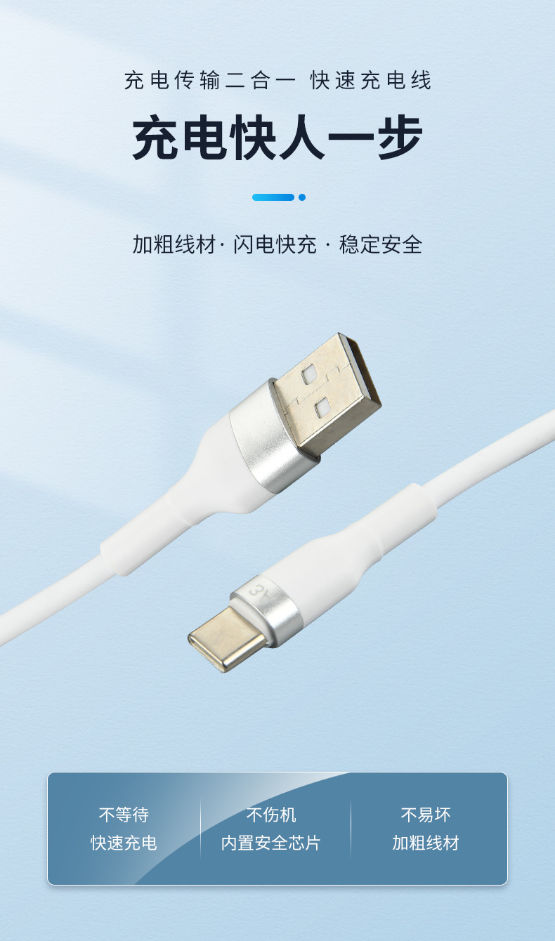 Apple Android TYPE-C Huawei Xiaomi 휴대폰에 적합한 실리콘 데이터 케이블 초고속 충전 확장 파손 방지 와이어스토어 가기
