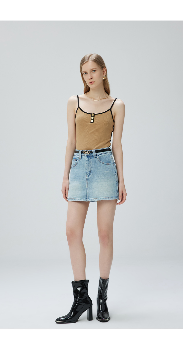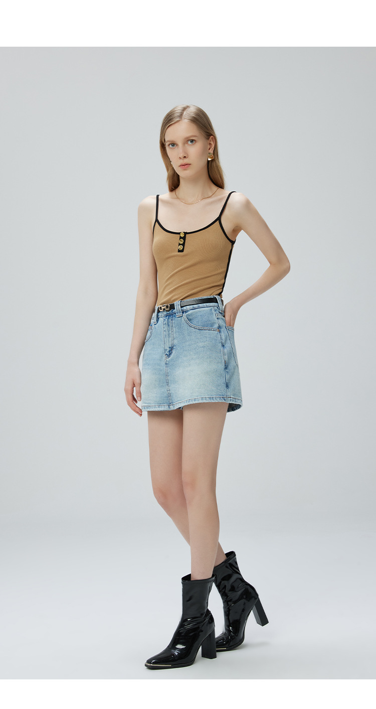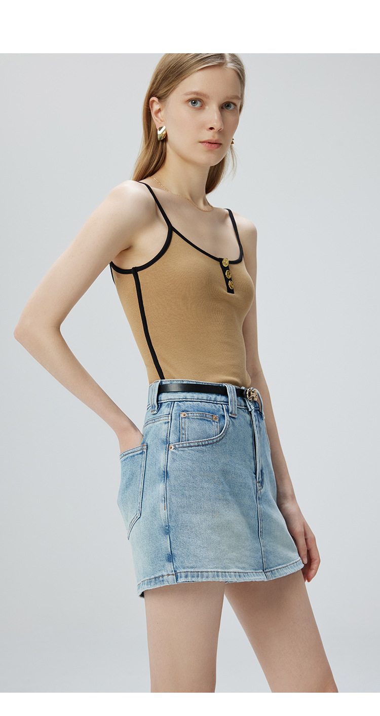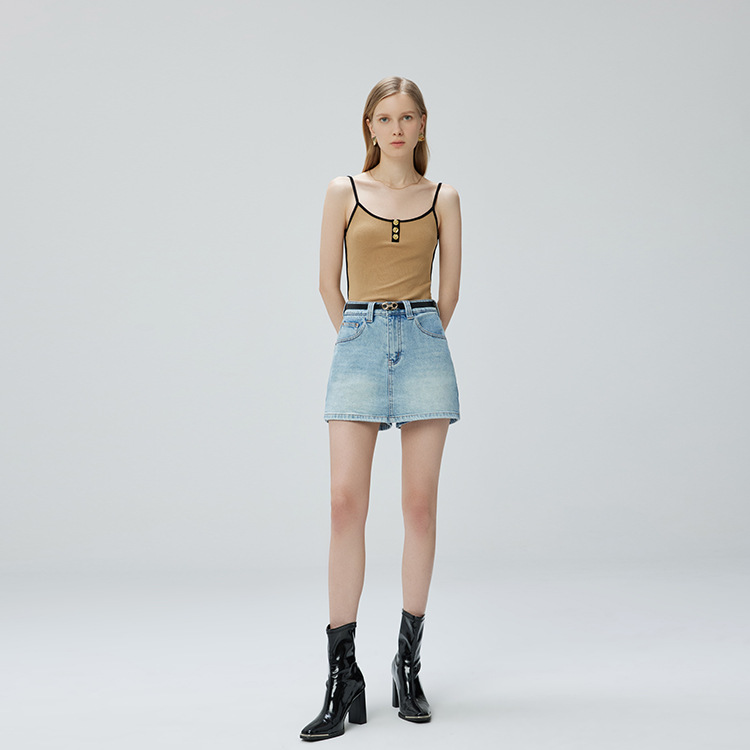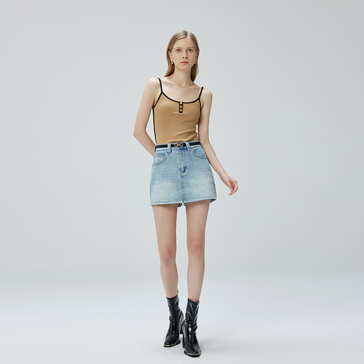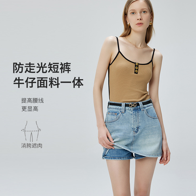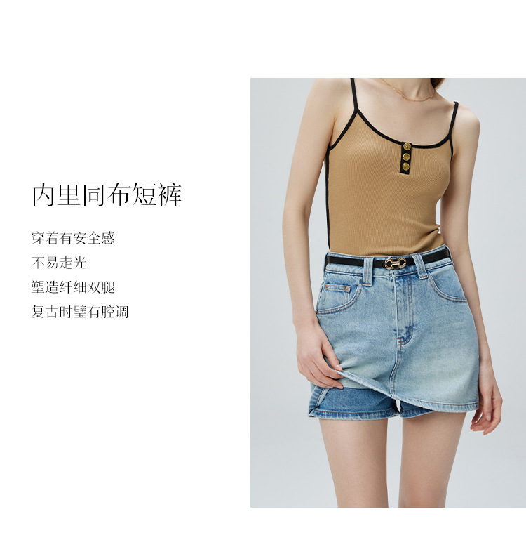 Coolmeipai Lan Yuxi 2024 여름 데님 스커트 여성용 하이 웨이스트 노출 방지 다용도 복고풍 디자인 스커트