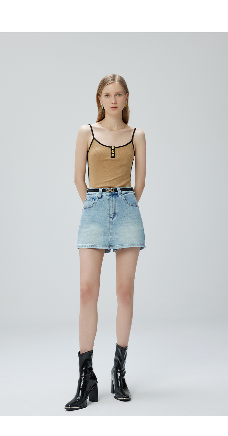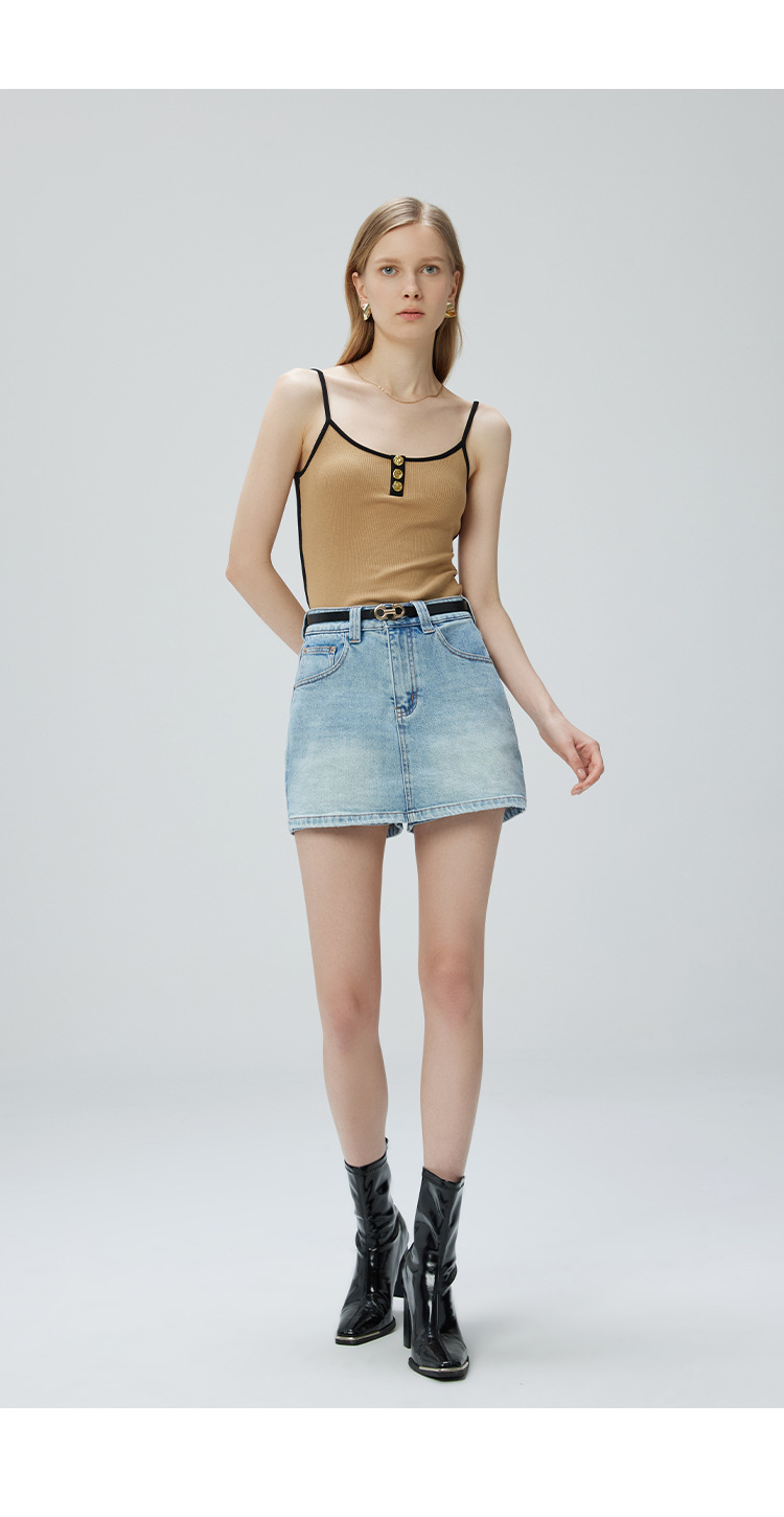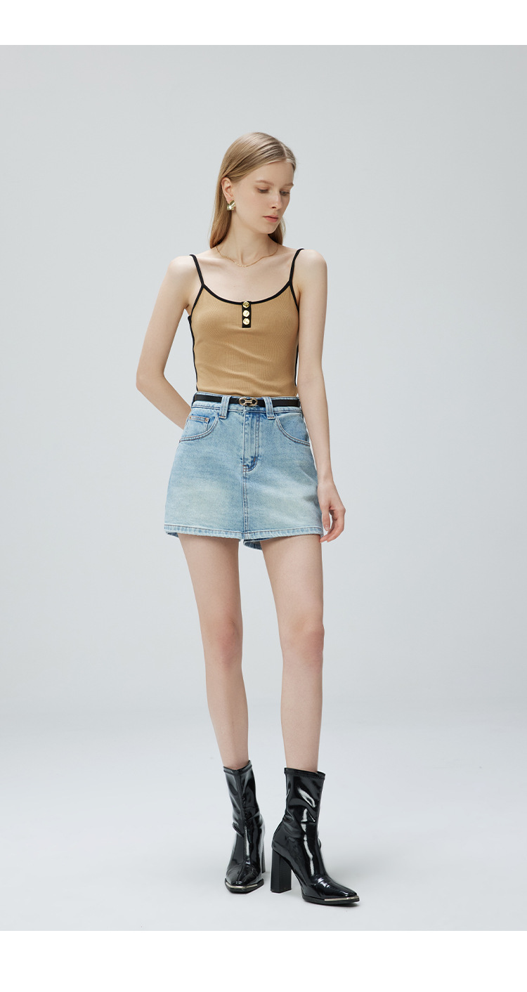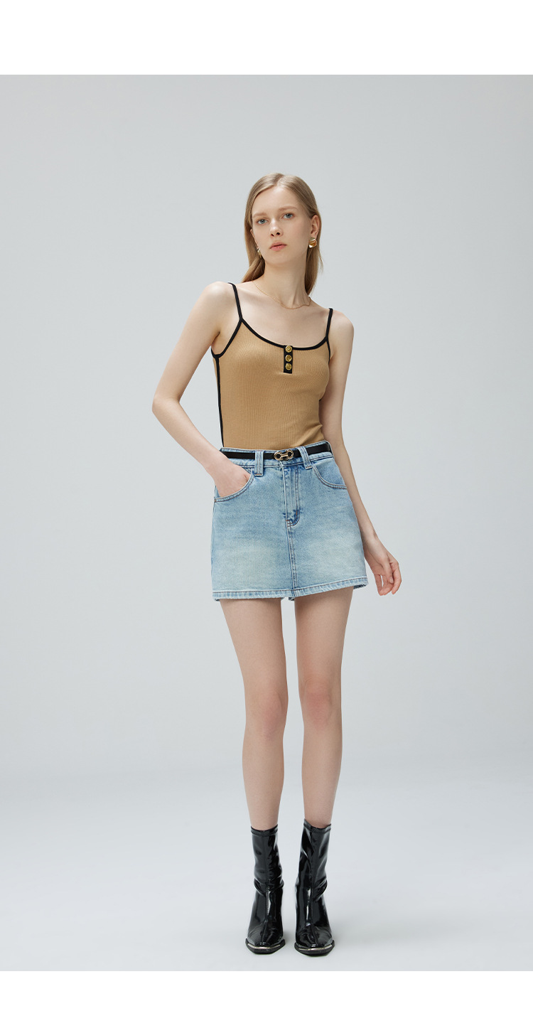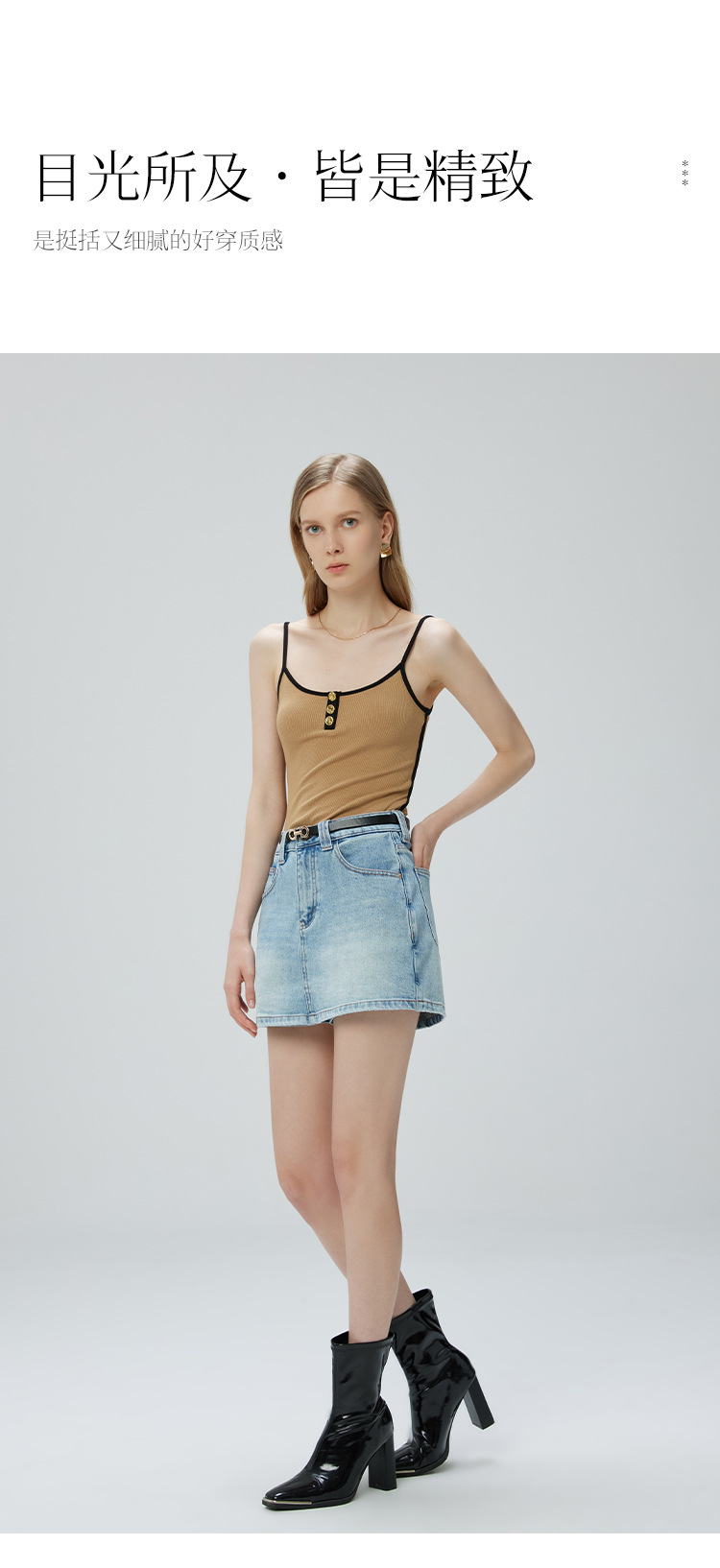 Coolmeipai Lan Yuxi 2024 여름 데님 스커트 여성용 하이 웨이스트 노출 방지 다용도 복고풍 디자인 스커트