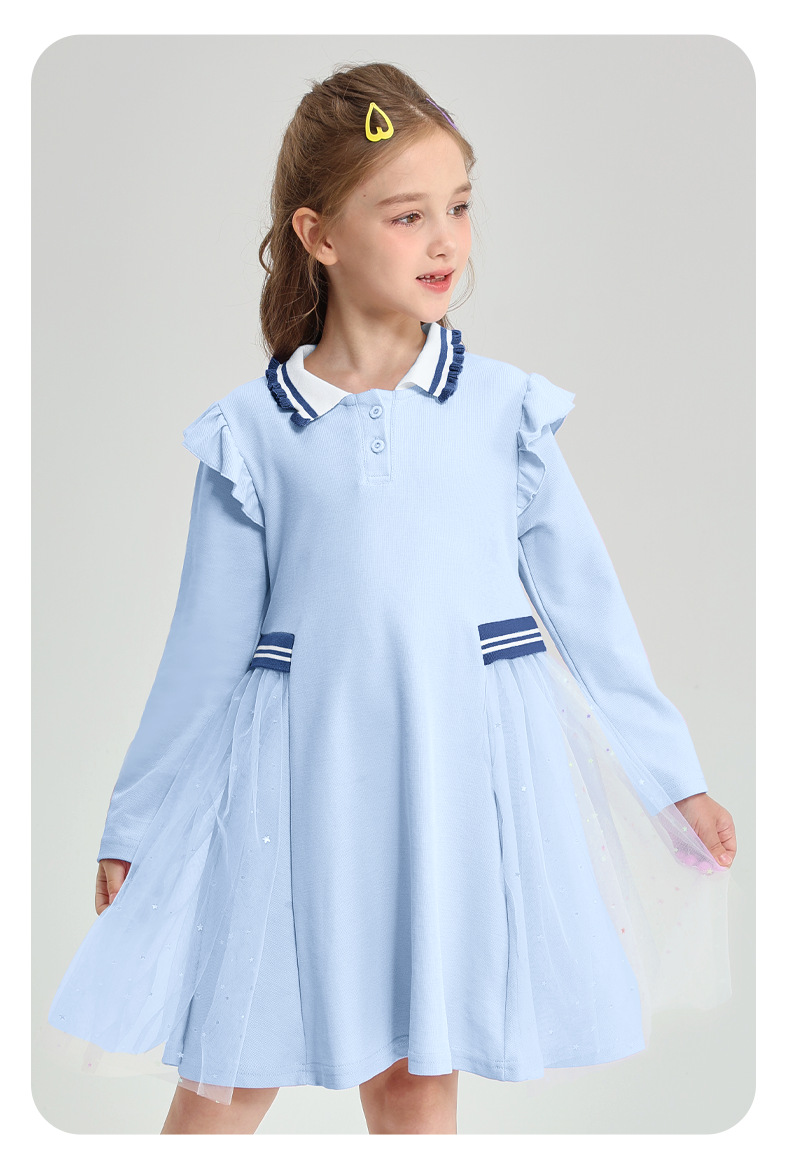 달콤한 소녀의 가을 드레스, 큰 어린이 스커트 2025 새로운 대학 스타일 어린이 공주 스커트 폴로 거즈 스커트