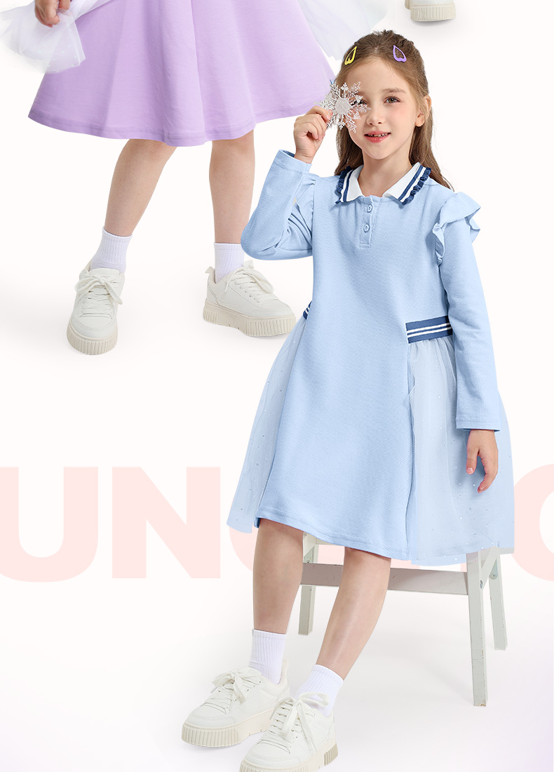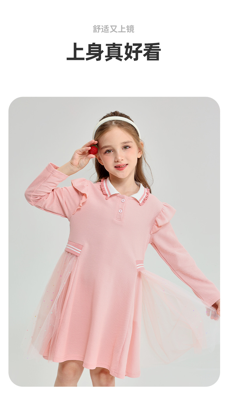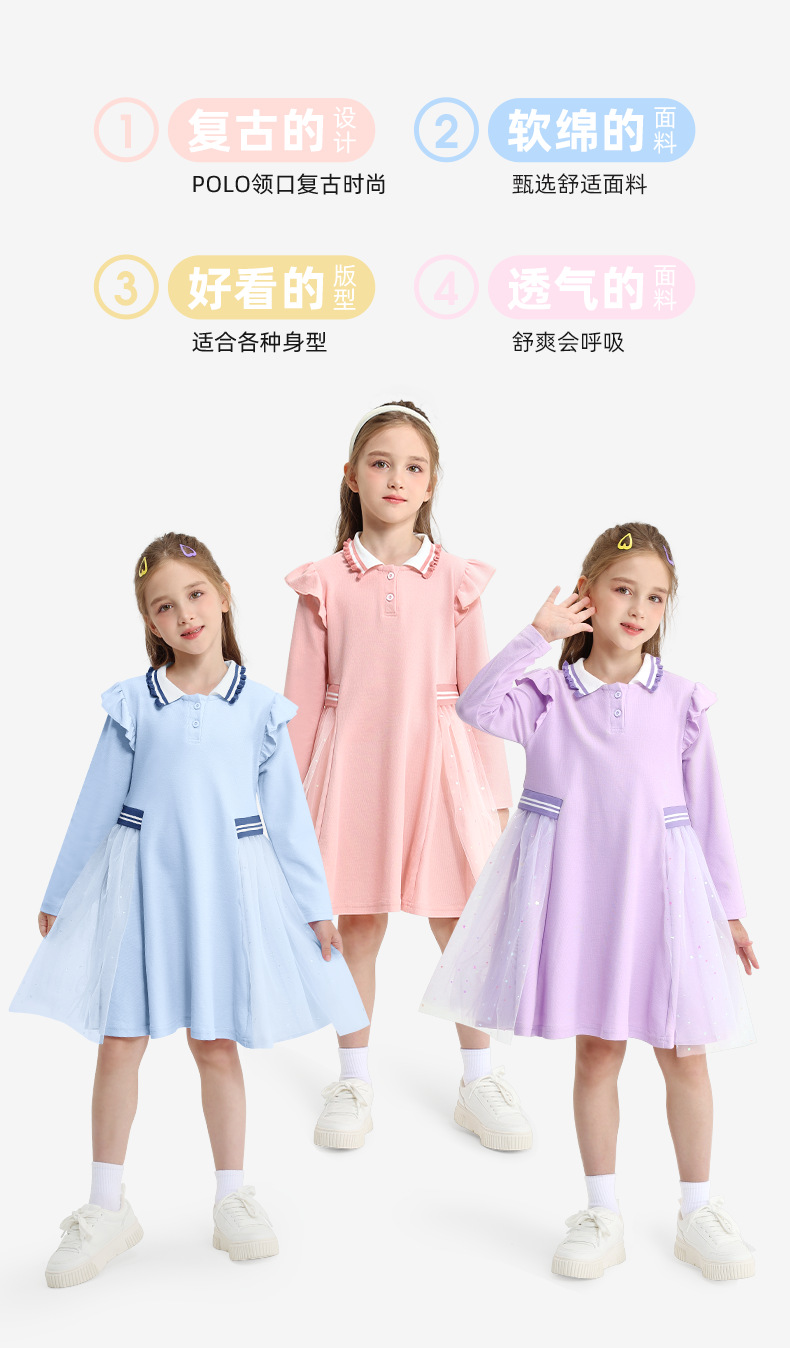 달콤한 소녀의 가을 드레스, 큰 어린이 스커트 2025 새로운 대학 스타일 어린이 공주 스커트 폴로 거즈 스커트스토어 가기