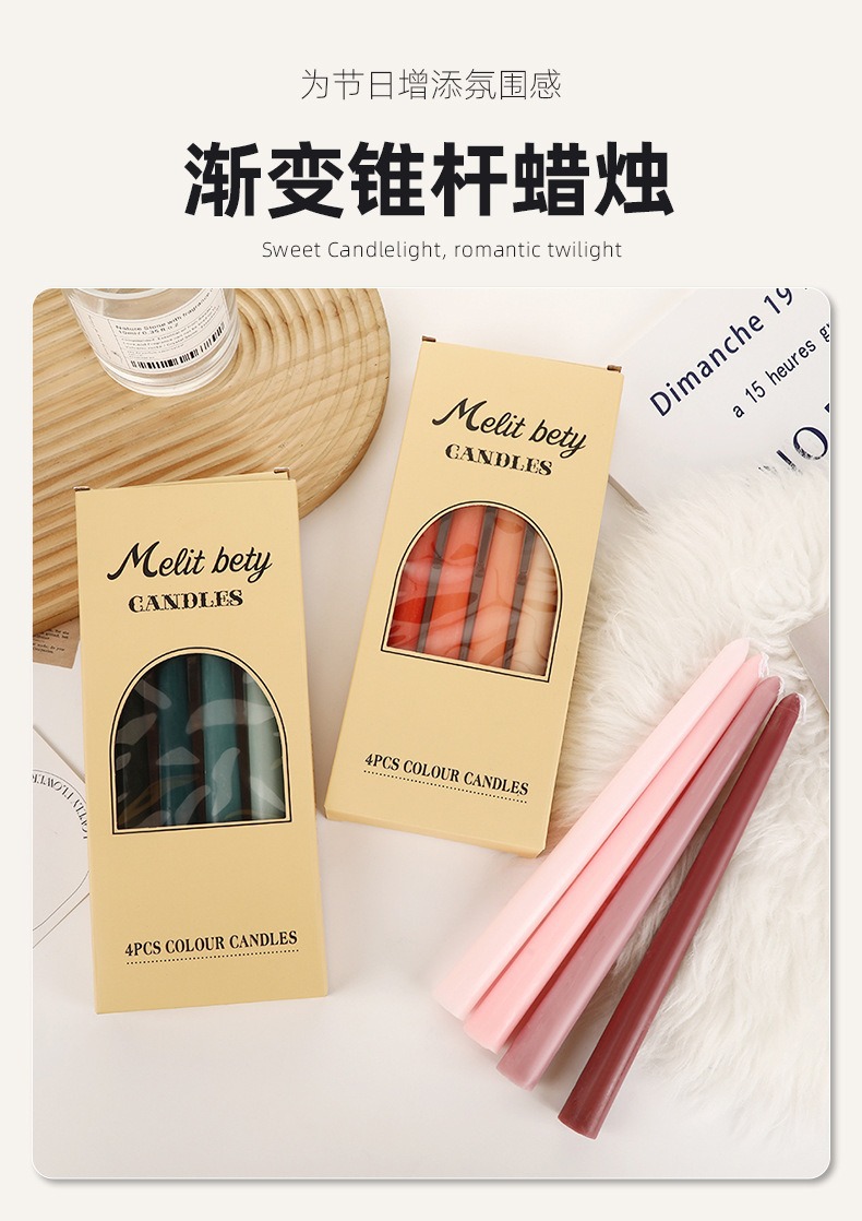 그라디언트 색상 Morandi 컬러 긴 막대 촛불 도매 홈 로맨틱 촛불 저녁 식사 장식 웨딩 막대 왁스 국경 간스토어 가기