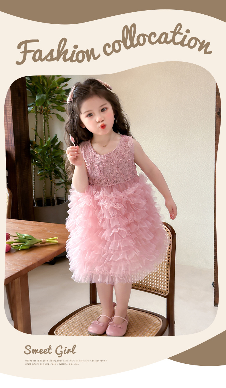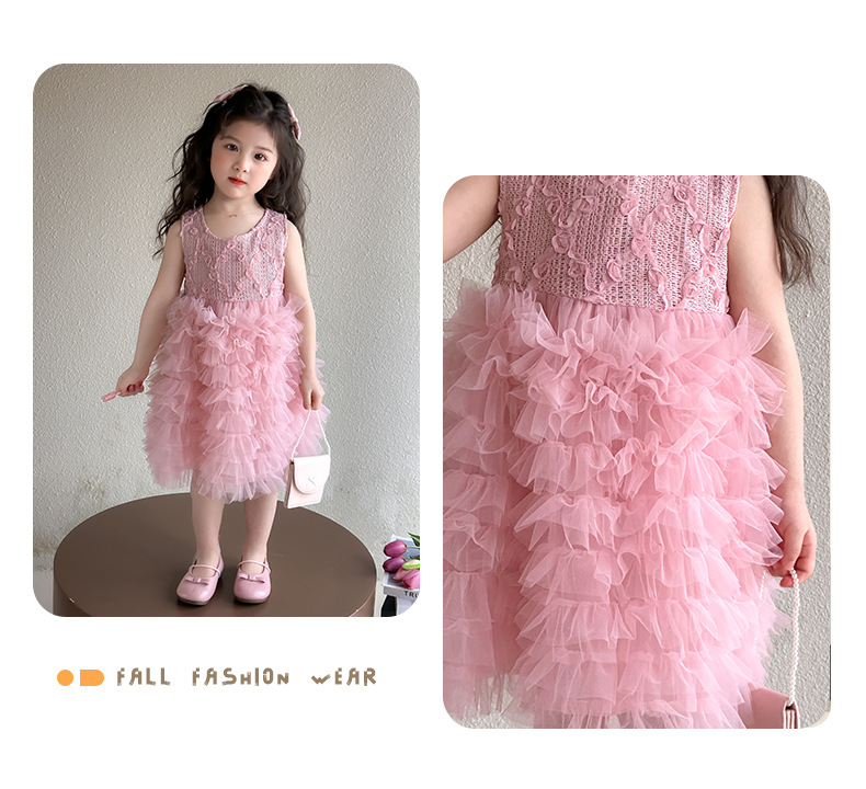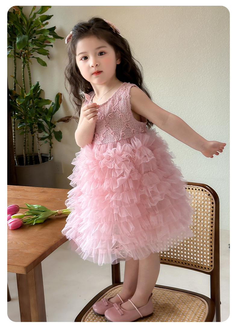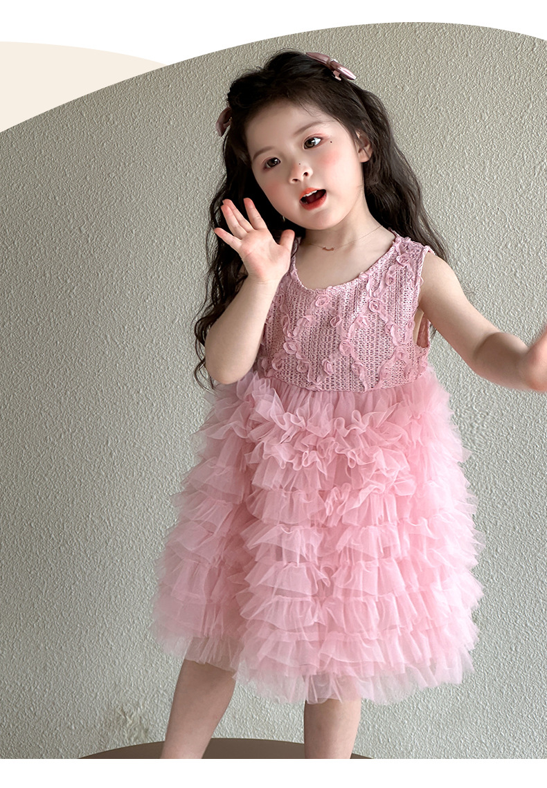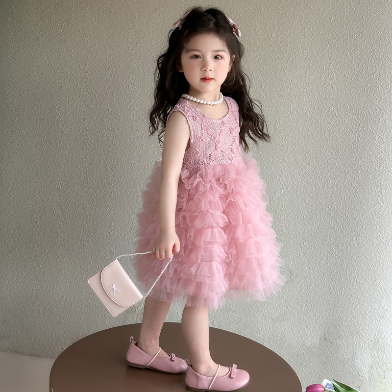 거즈 스커트 소녀 드레스 여름 2025 새로운 어린이 스타일 여름 드레스 아기 조끼 케이크 공주 드레스