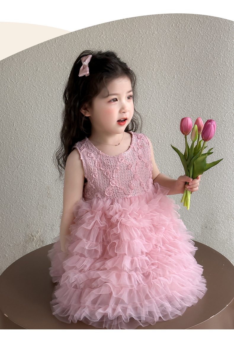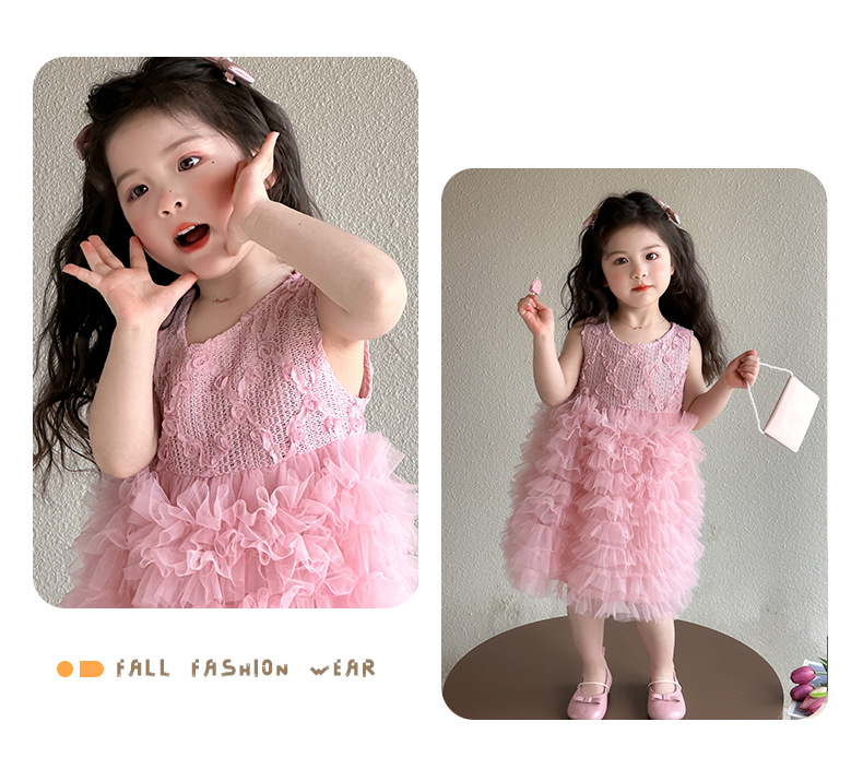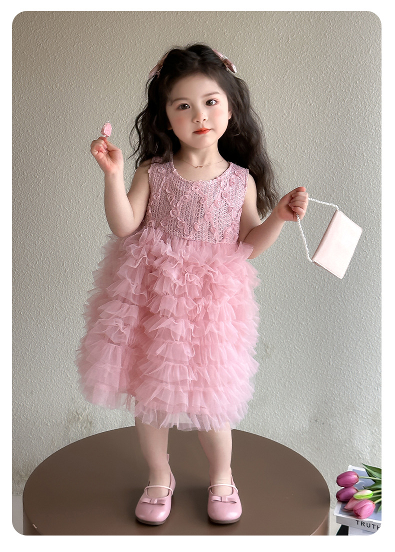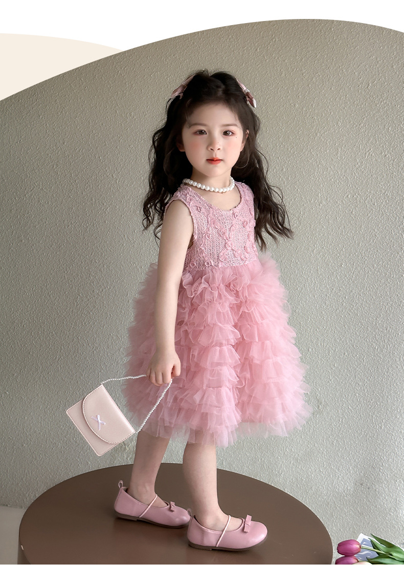 거즈 스커트 소녀 드레스 여름 2025 새로운 어린이 스타일 여름 드레스 아기 조끼 케이크 공주 드레스
