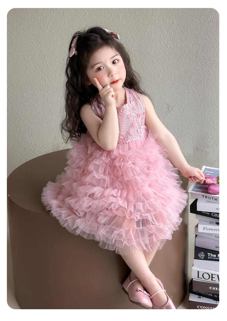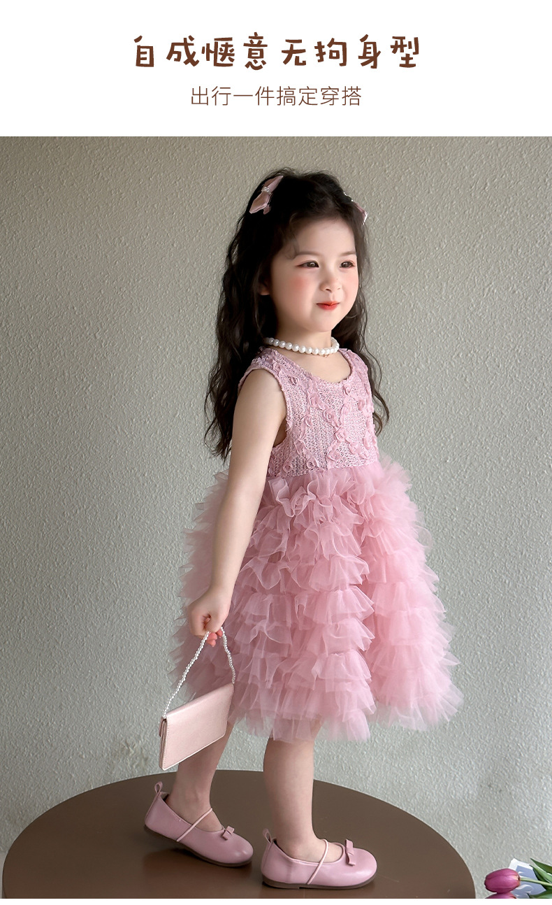 거즈 스커트 소녀 드레스 여름 2025 새로운 어린이 스타일 여름 드레스 아기 조끼 케이크 공주 드레스스토어 가기