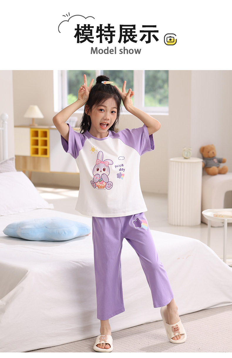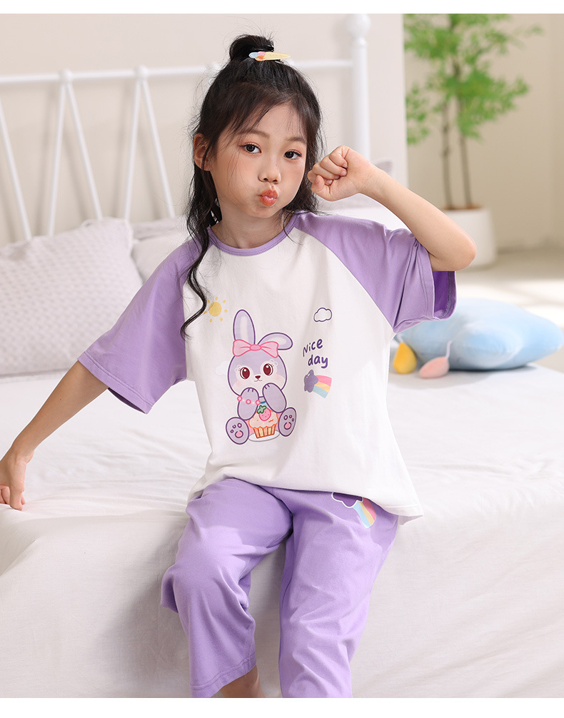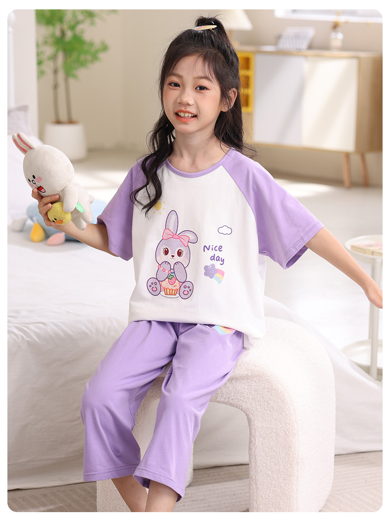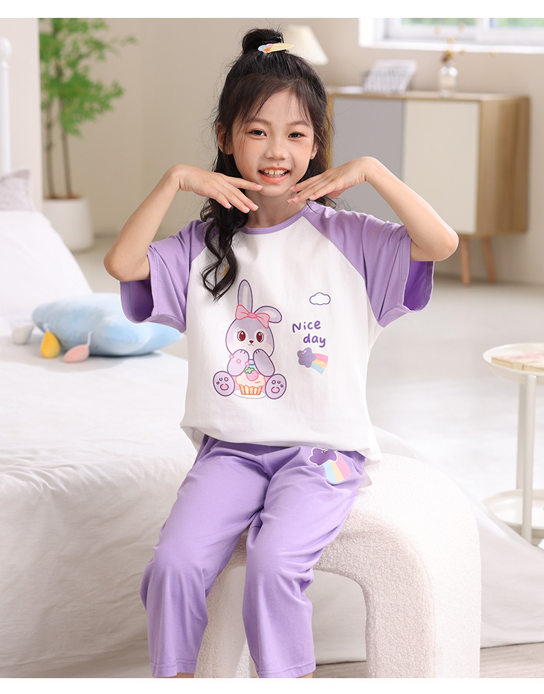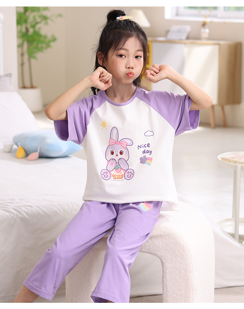 어린이 잠옷 세트 여름 얇은 순면 반팔 7부 바지 에어컨 옷 소녀 공주 가정 의류 여름스토어 가기