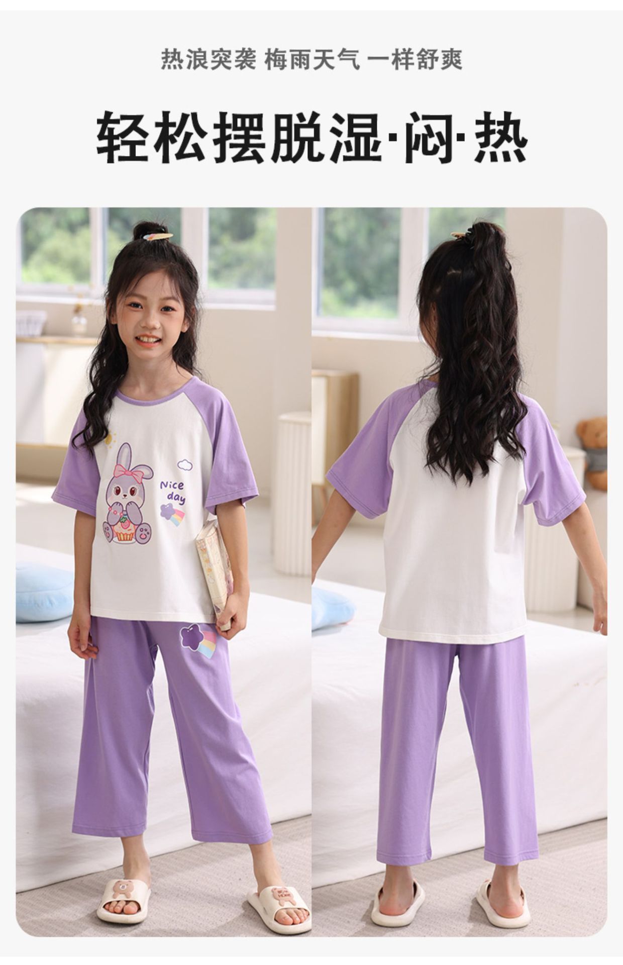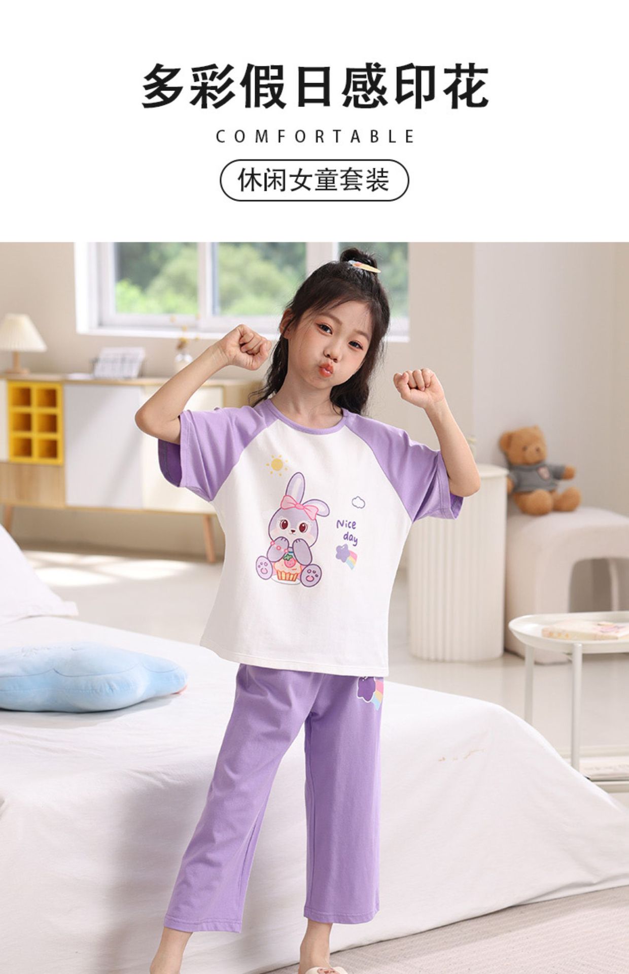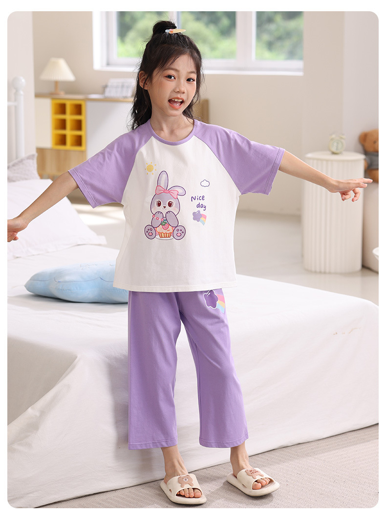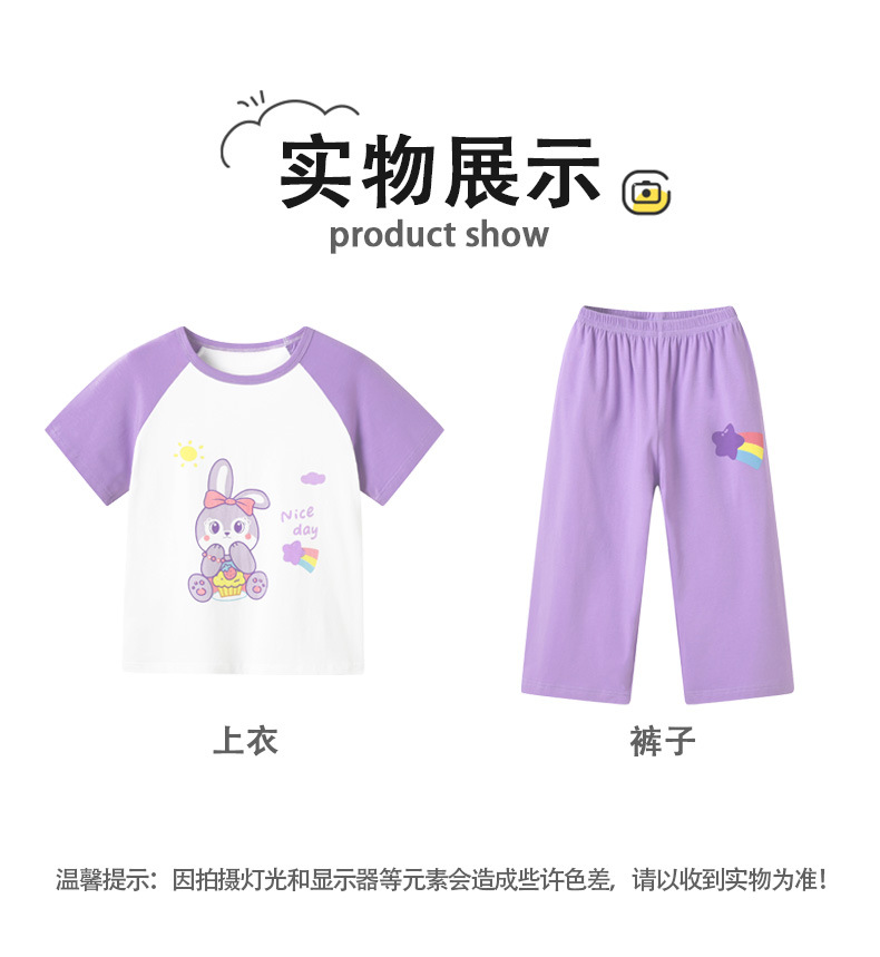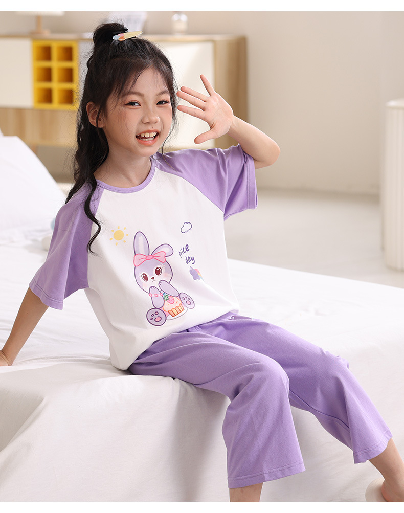 어린이 잠옷 세트 여름 얇은 순면 반팔 7부 바지 에어컨 옷 소녀 공주 가정 의류 여름스토어 가기