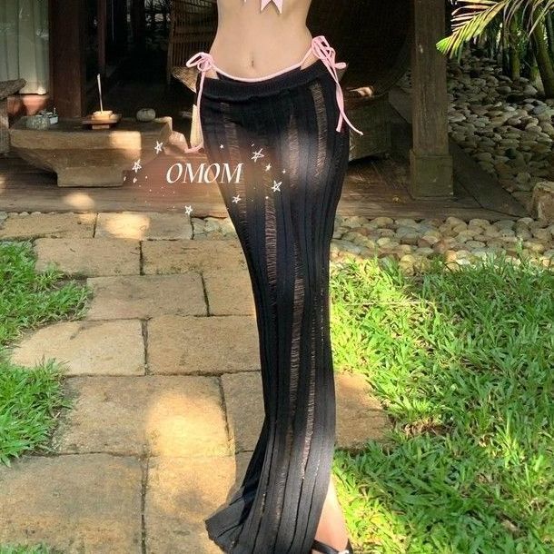 [Rebel Sweetheart] 섬 휴가 달콤하고 섹시한 컬러 블록 니트 피쉬테일 롱 스커트 여름 수영복 비키니스토어 가기