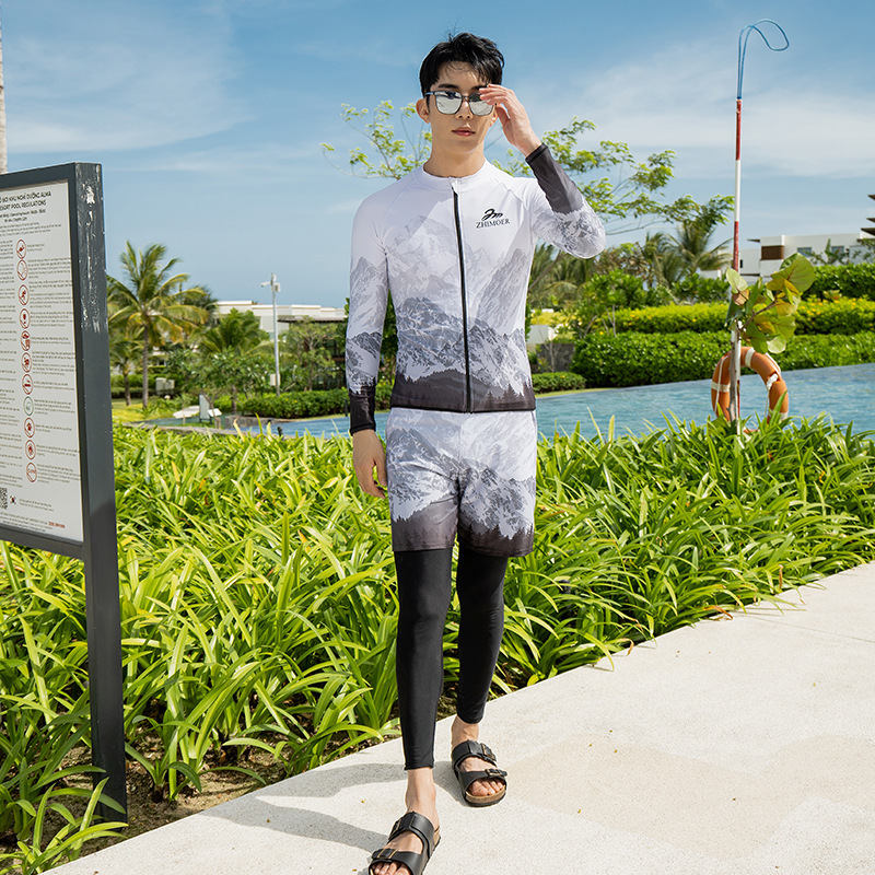 수영복 남성용 긴팔 수영복 성인 스플릿 대형 수영 트렁크 태양 슈트 비치 남성용 수영복