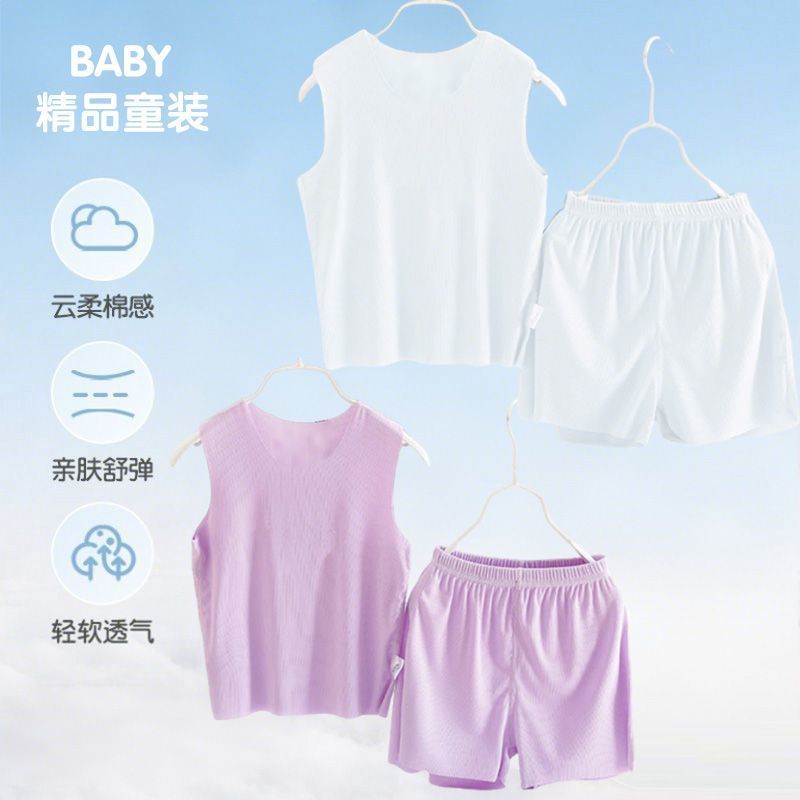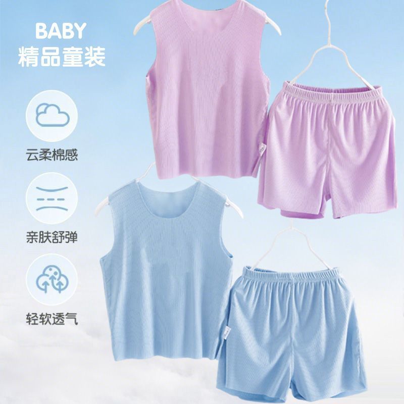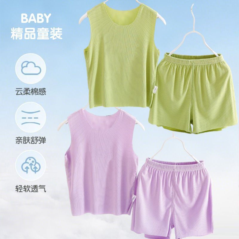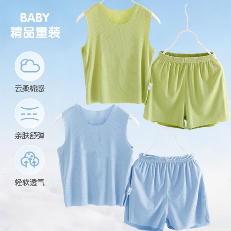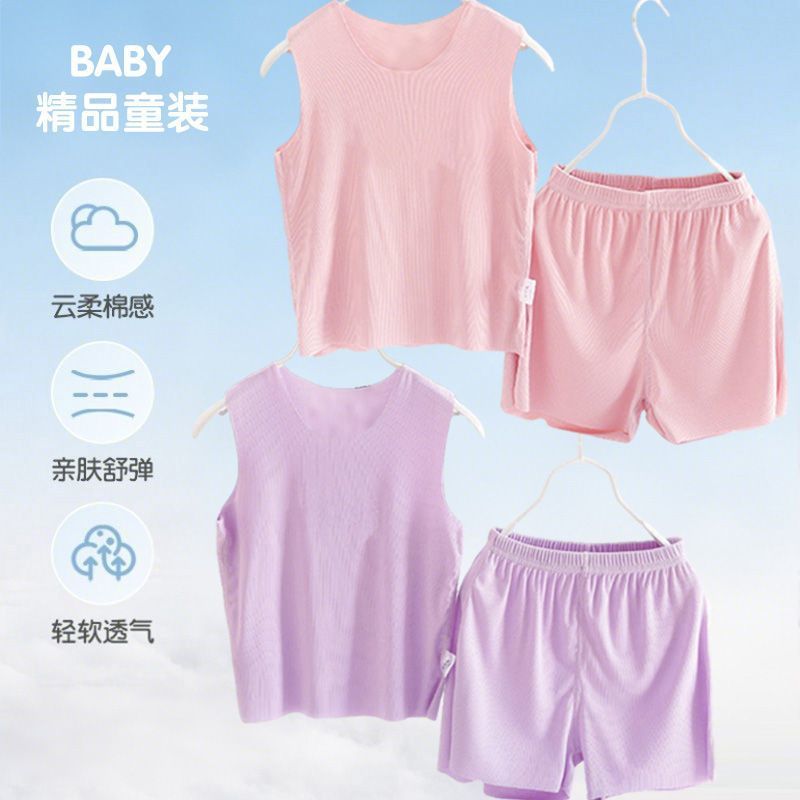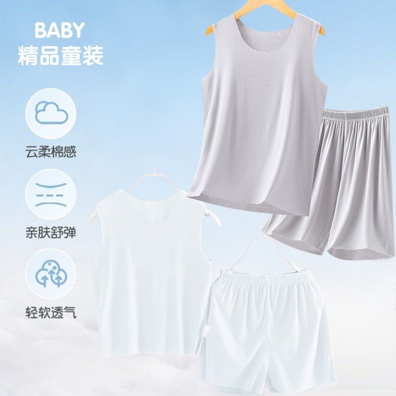 모달 어린이 잠옷 소년 여름 조끼 반바지 정장 여름 얇은 소녀 얼음 실크 가정 의류 청소년