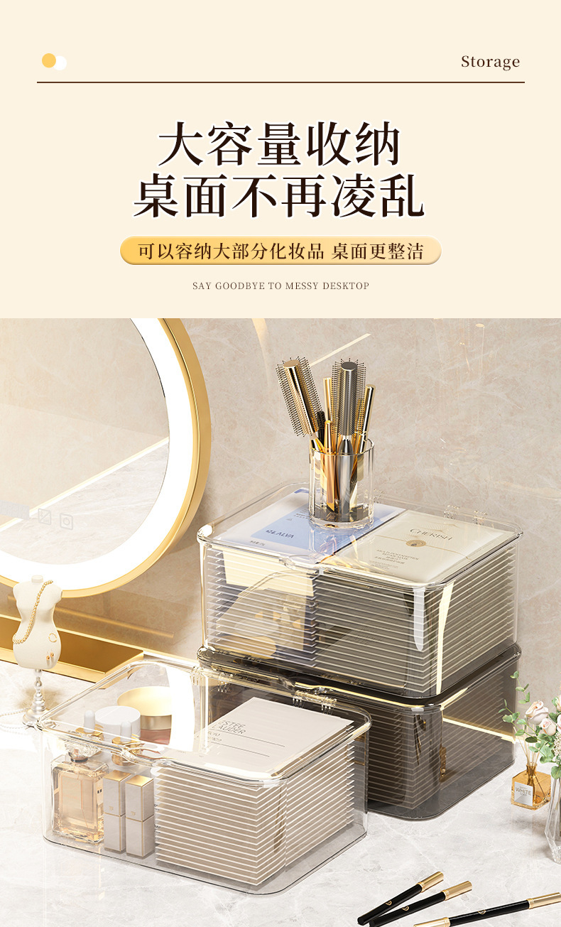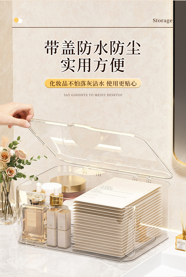 데스크탑 보관함 아크릴 투명 잡화 보관함 뚜껑이 있는 사무실 책상 방진 문구 정리함스토어 가기