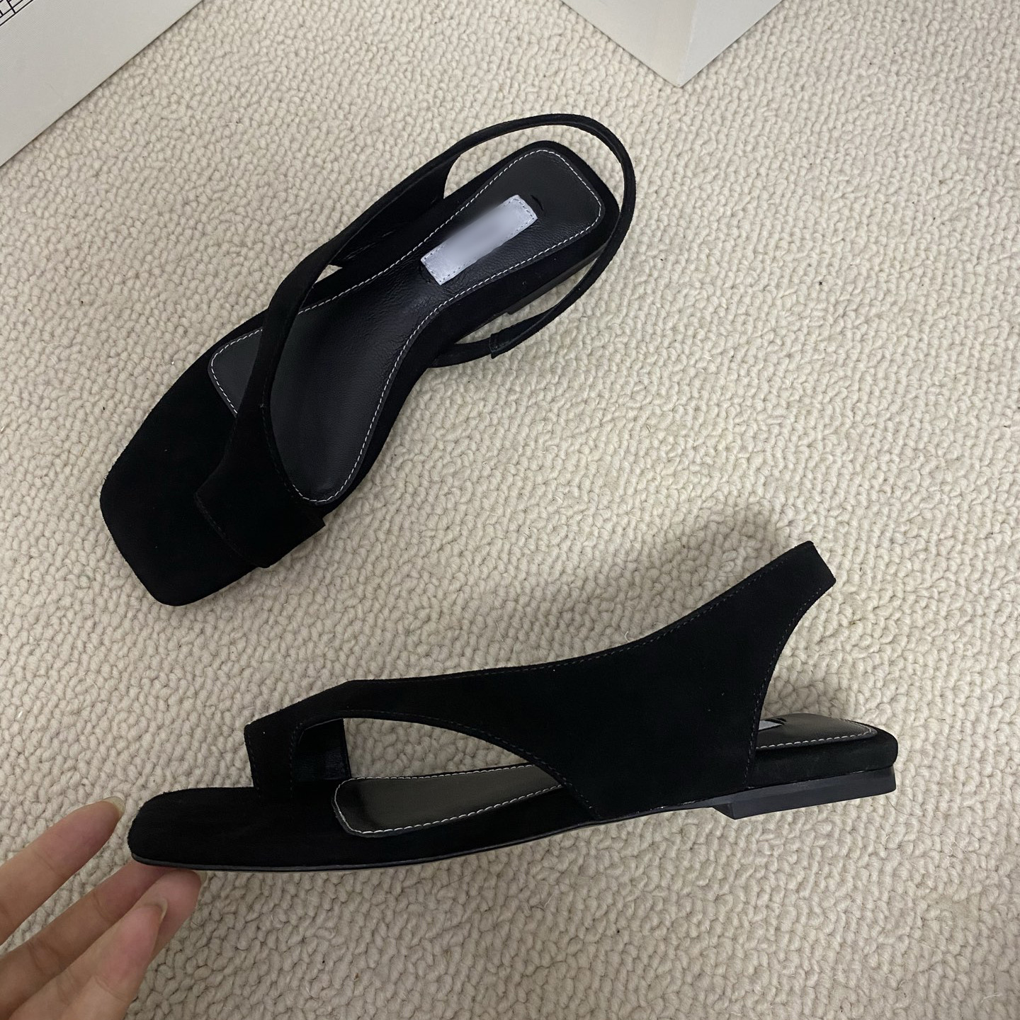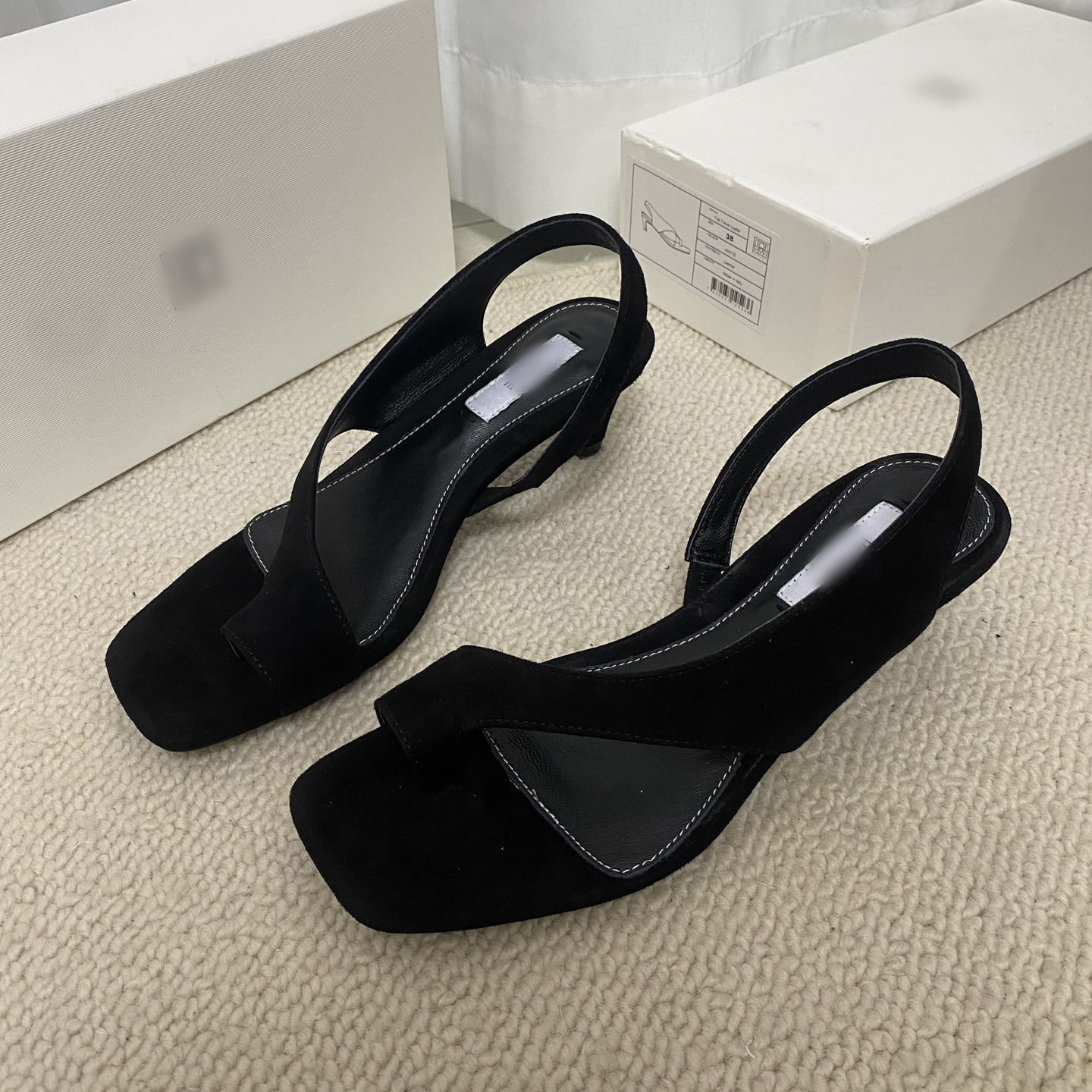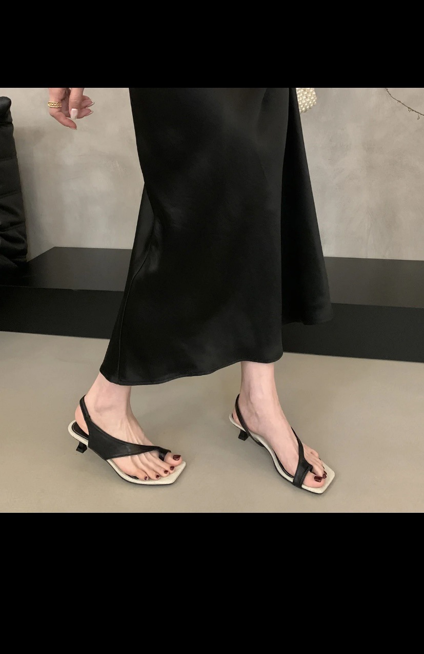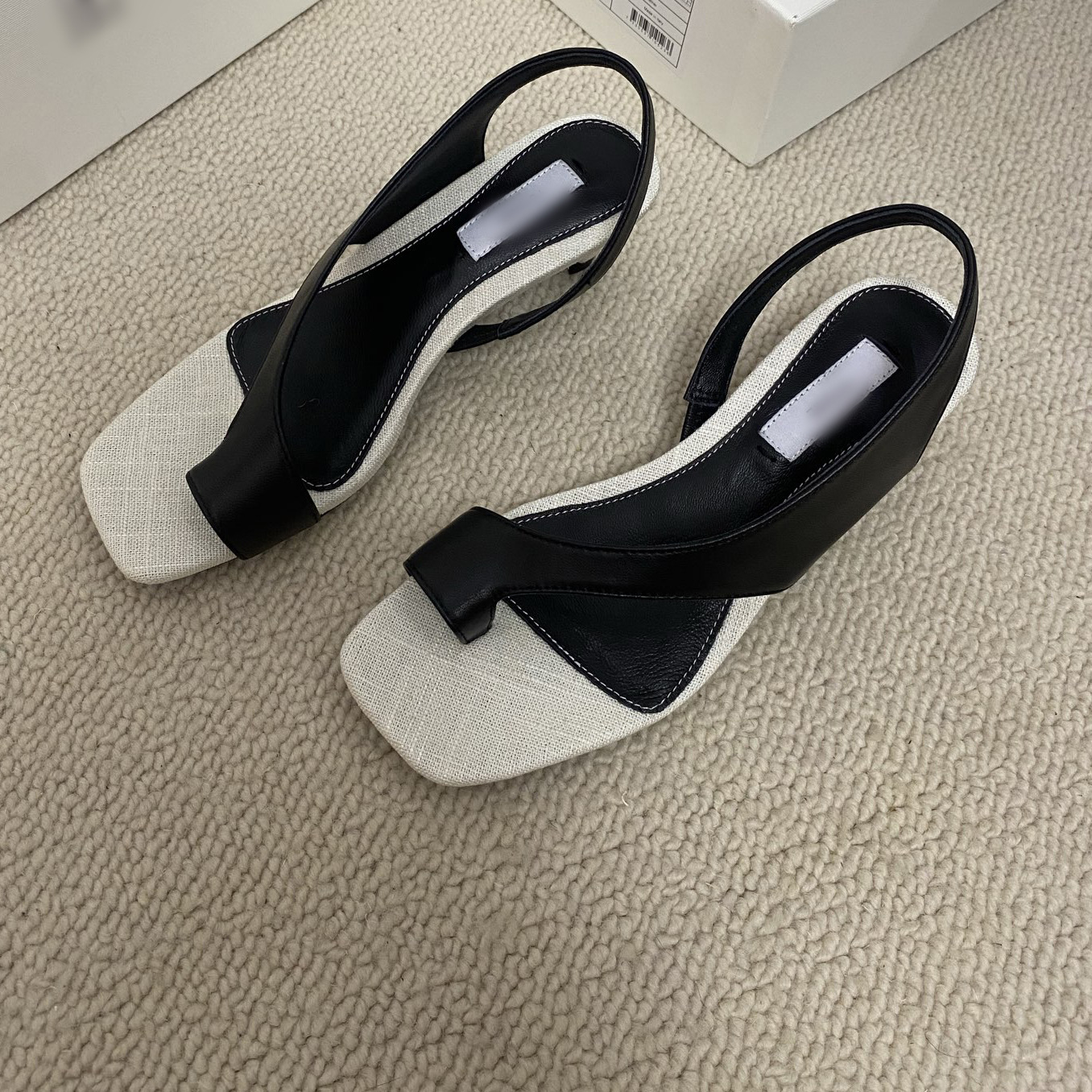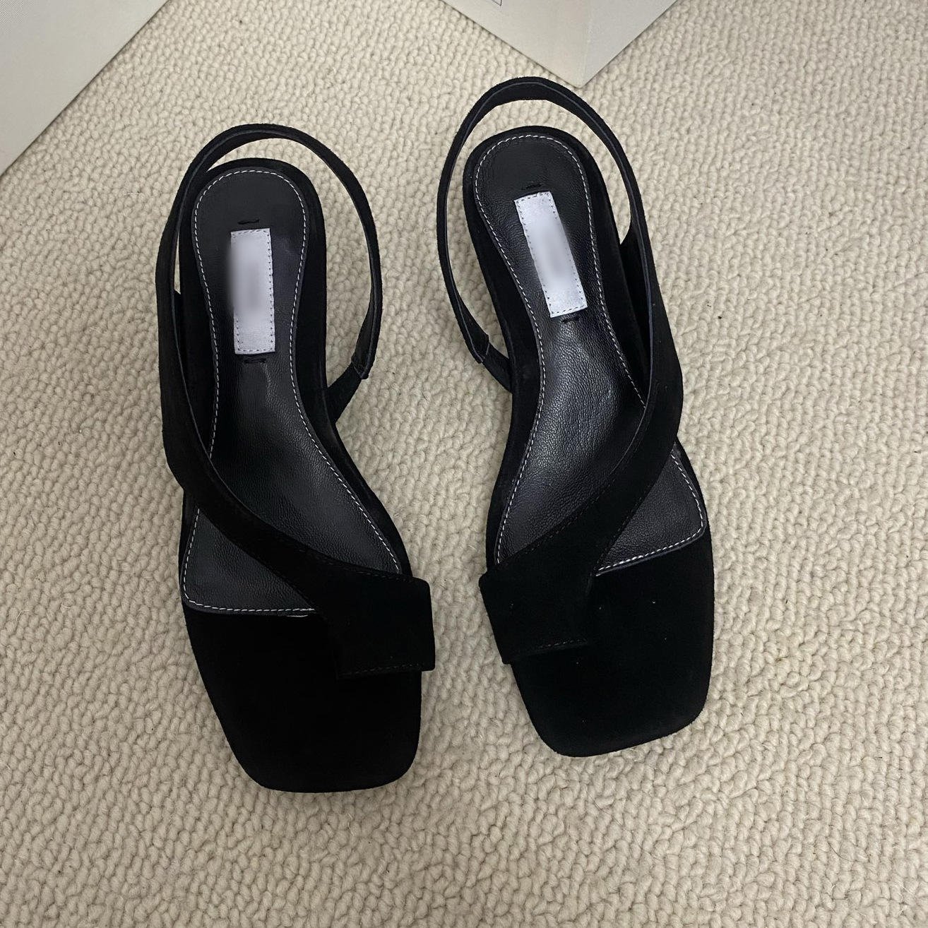 여성을위한 스퀘어 토우 슬리퍼 샌들 2025 여름 새로운 스타일 섹시한 슬립 온 캣 힐 미드 힐 오픈 토우 여성을위한 심플한 기질 플랫 슈즈스토어 가기