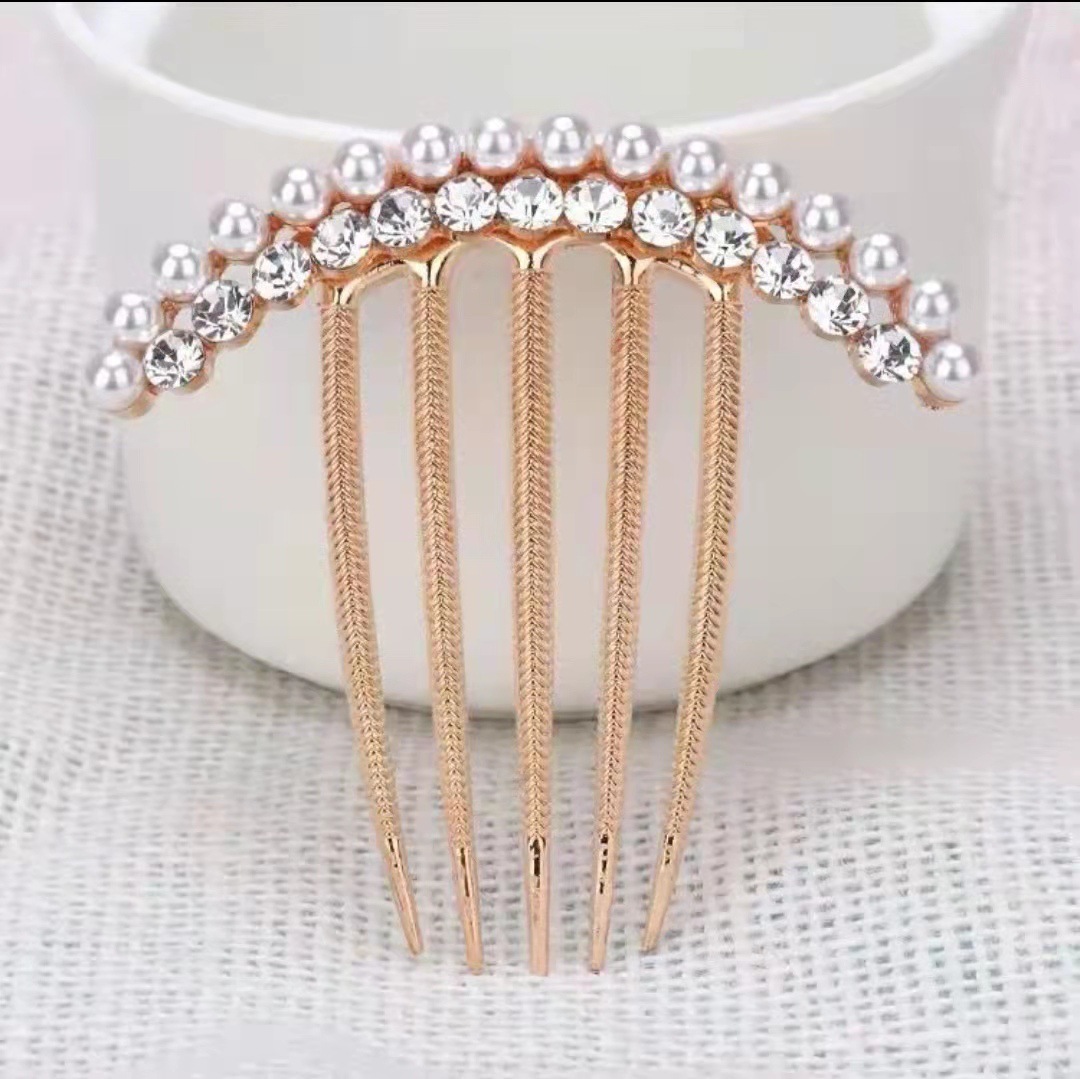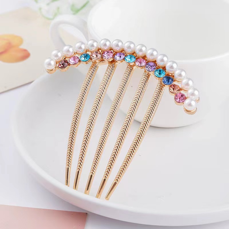진주 크리스탈 헤어 빗 성인 중간 빗 머리핀 여성 한국식 볼 헤어 액세서리 머리핀 빗 머리핀