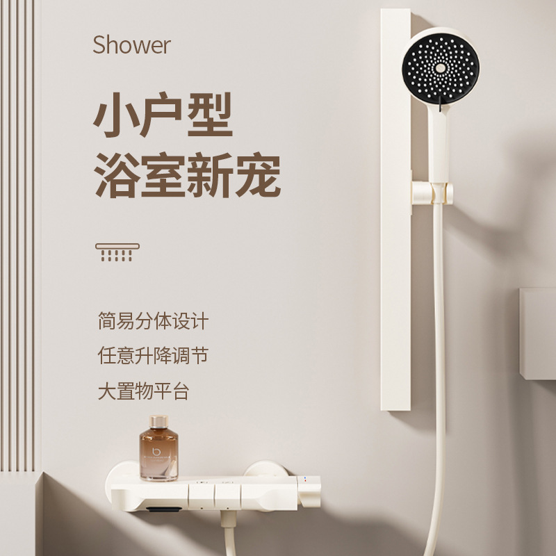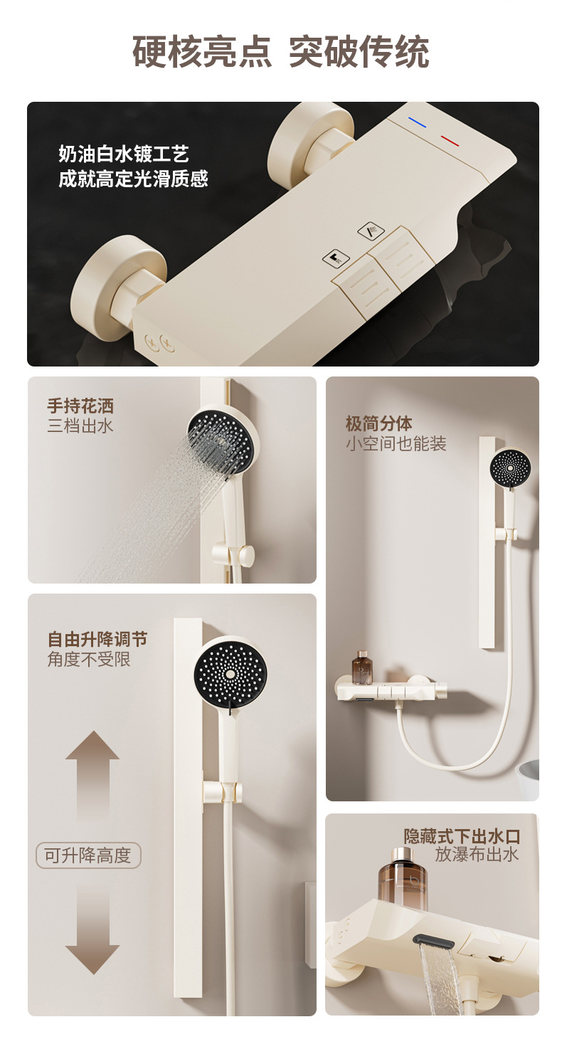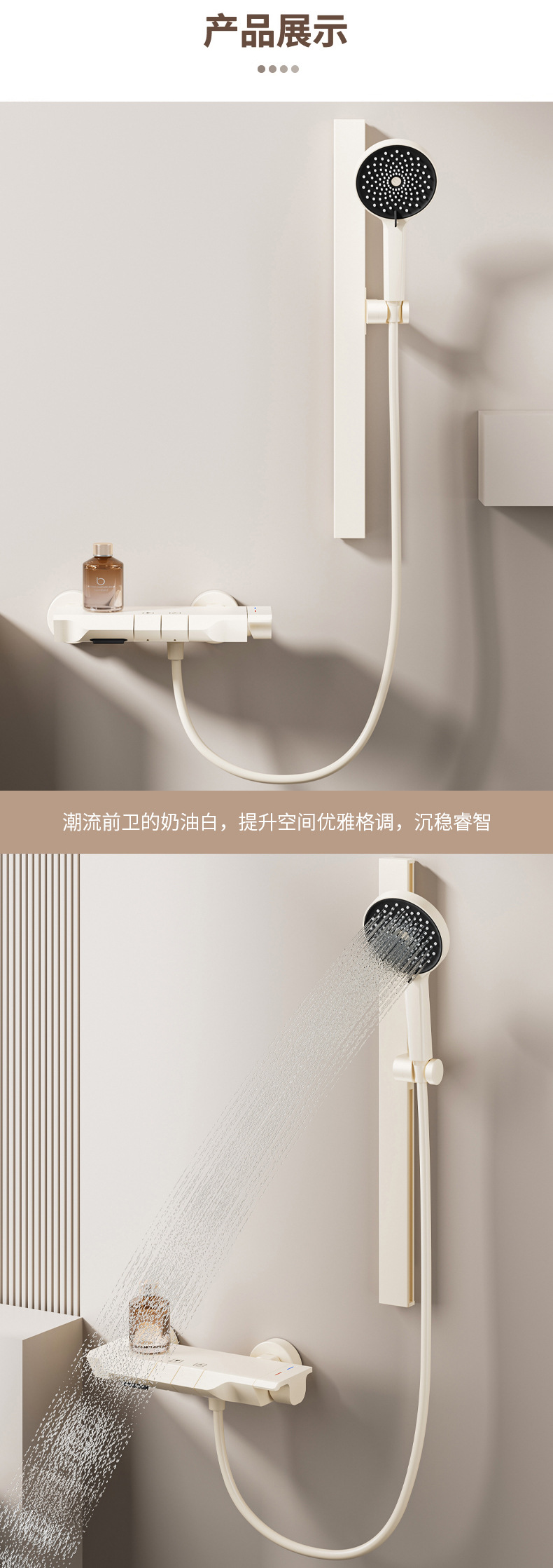 심플한 샤워기 세트, 토플리스 스프레이 욕실 피아노 키 분할형 미니멀리스트 크림 스타일 세트스토어 가기