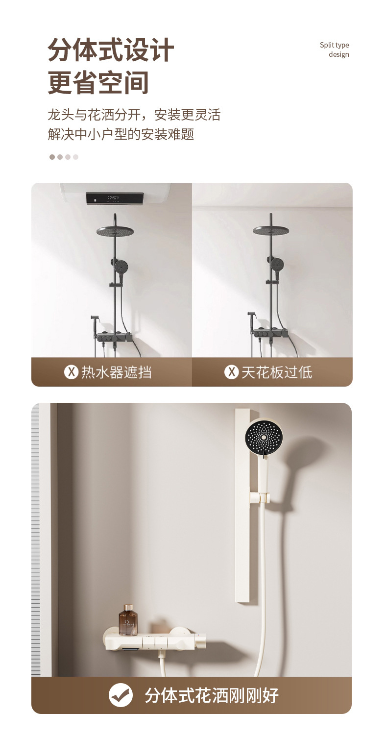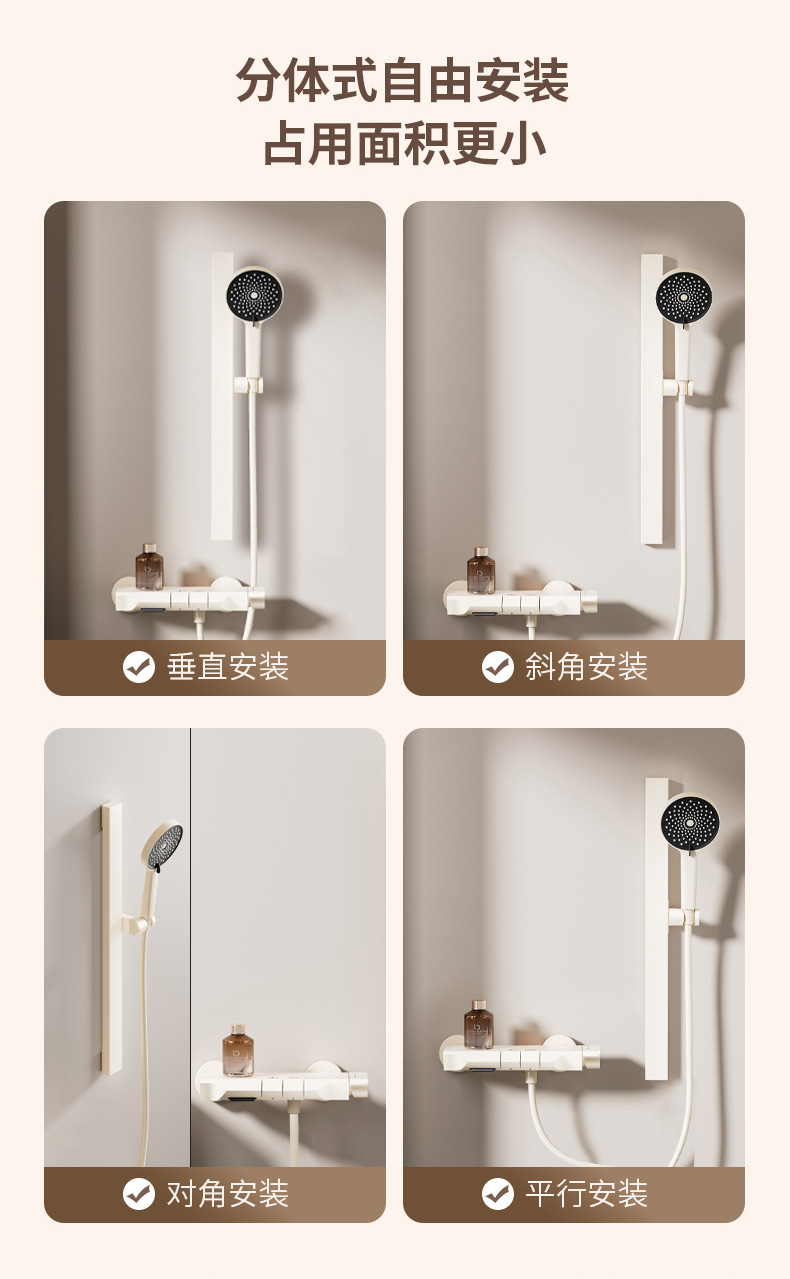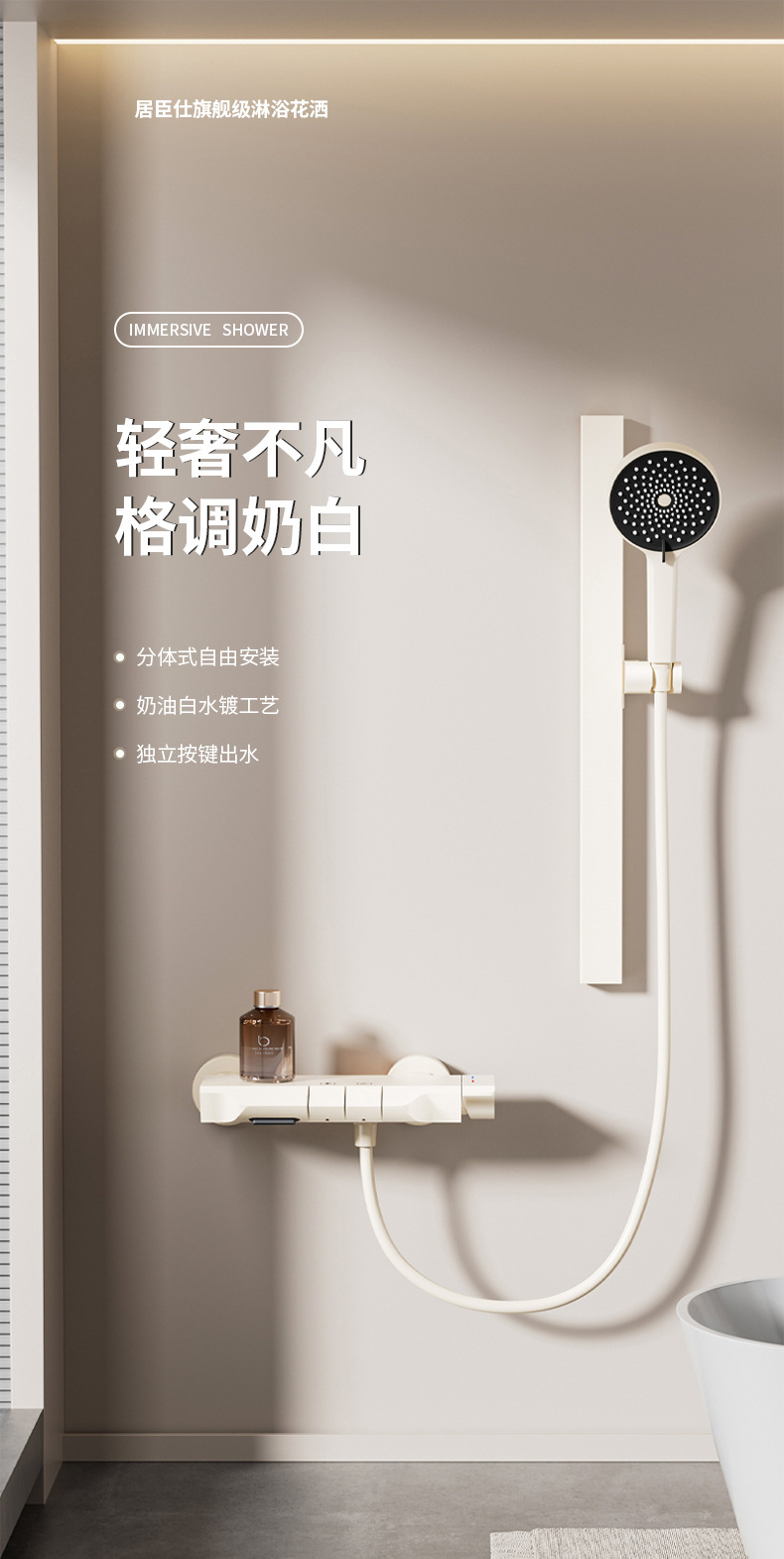 심플한 샤워기 세트, 토플리스 스프레이 욕실 피아노 키 분할형 미니멀리스트 크림 스타일 세트스토어 가기
