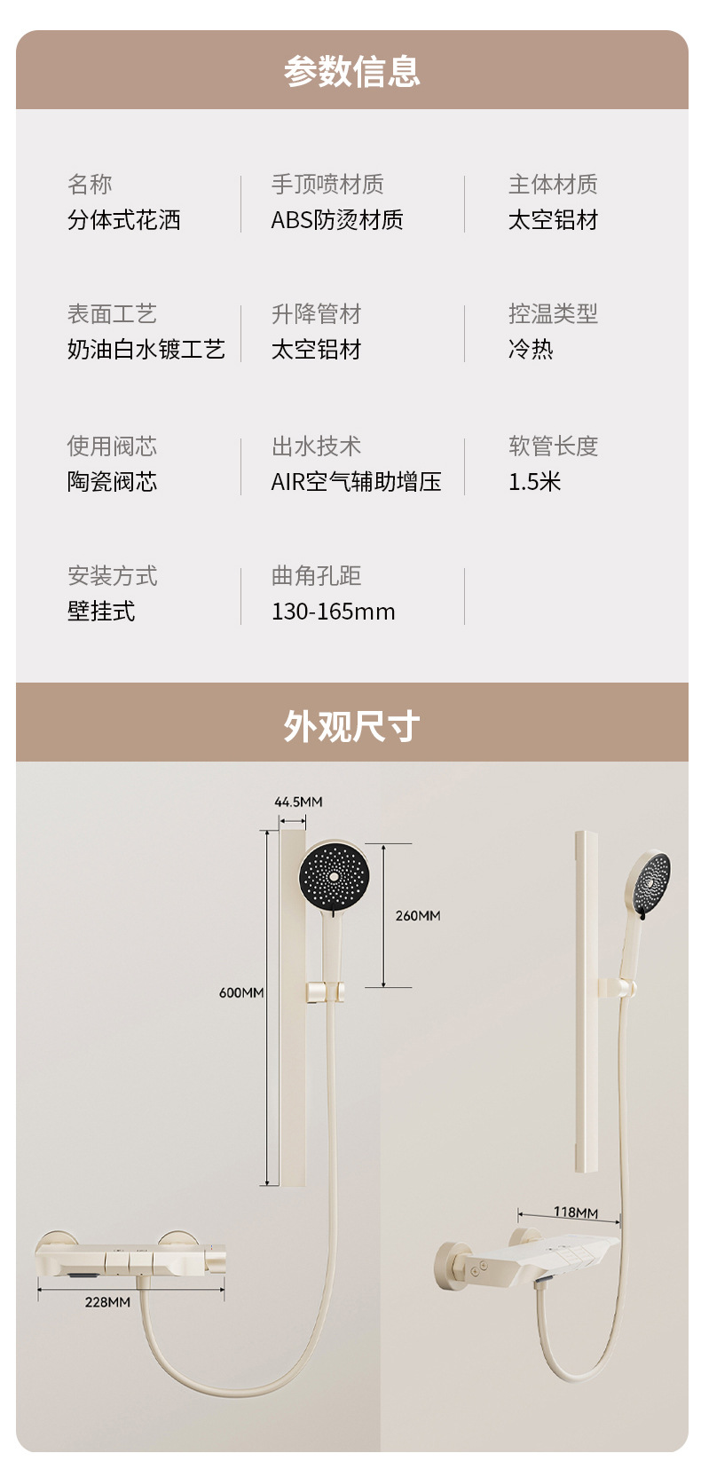 심플한 샤워기 세트, 토플리스 스프레이 욕실 피아노 키 분할형 미니멀리스트 크림 스타일 세트