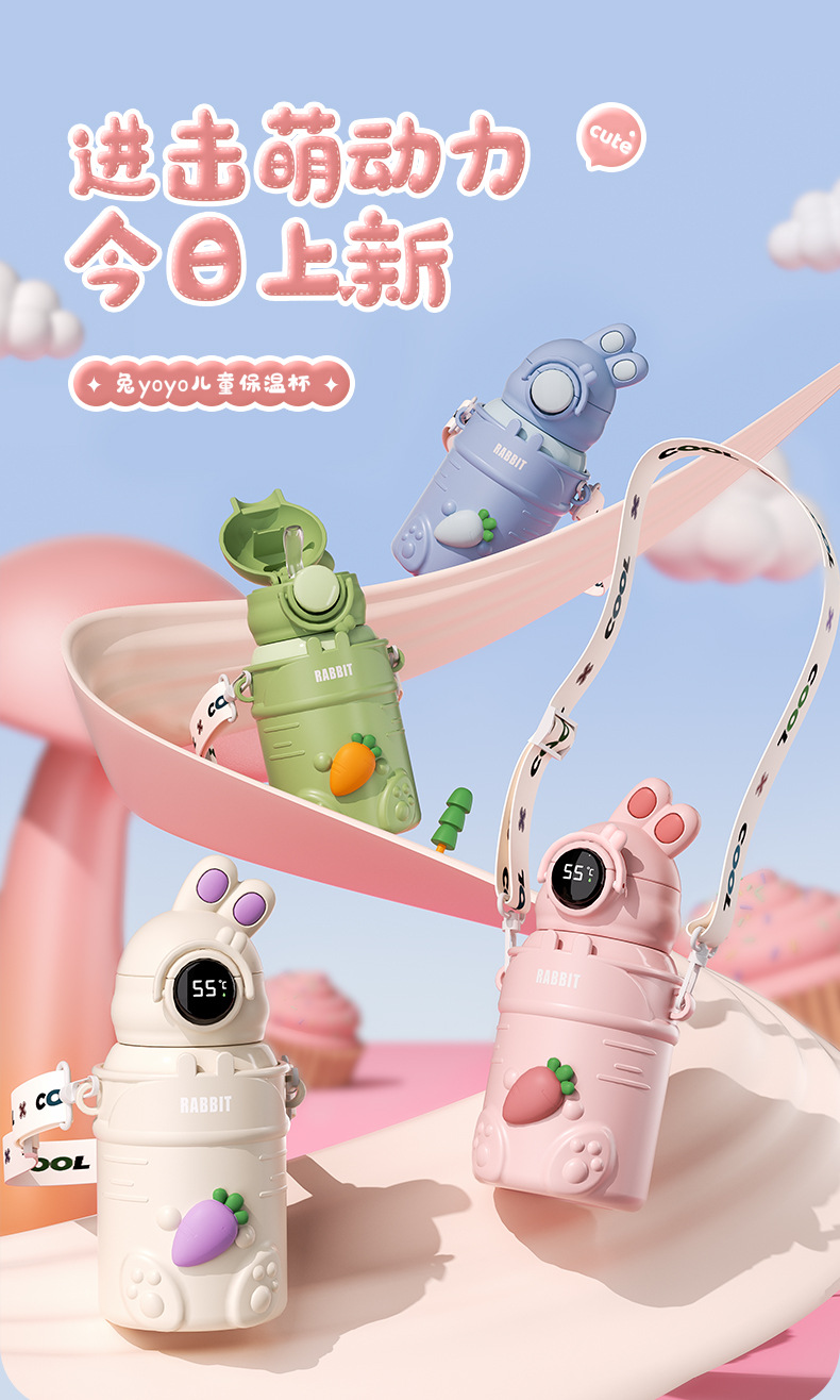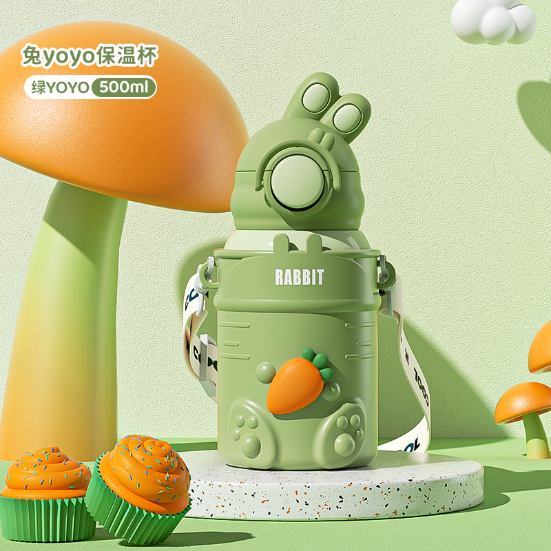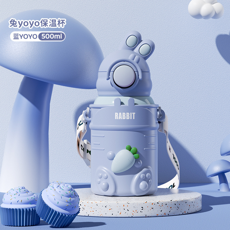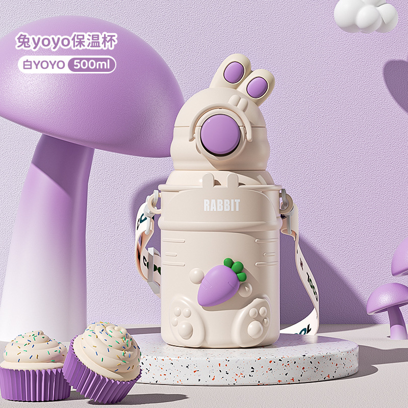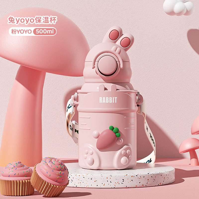 만화 캐릭터 어린이 보온병, 예쁜 디자인의 316 스테인리스 보온 물병, 토끼 요요 물병, 학생용 빨대컵