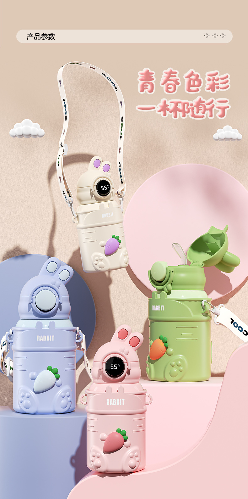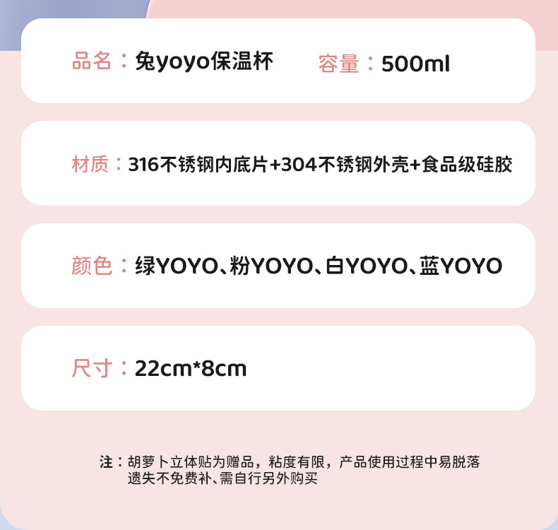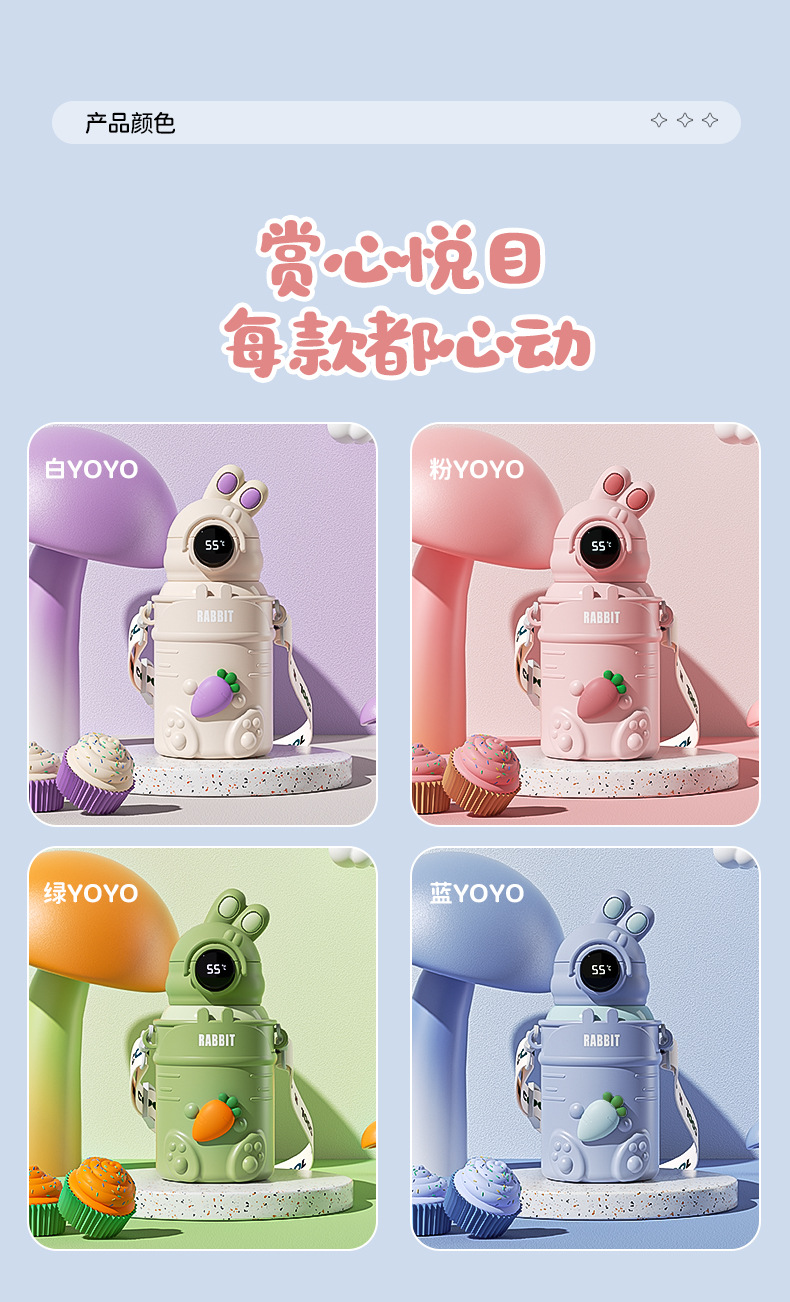 만화 캐릭터 어린이 보온병, 예쁜 디자인의 316 스테인리스 보온 물병, 토끼 요요 물병, 학생용 빨대컵