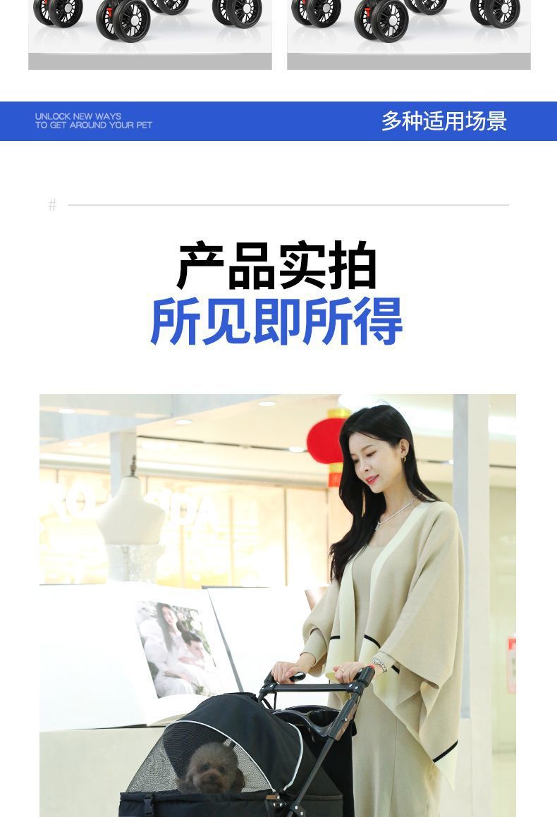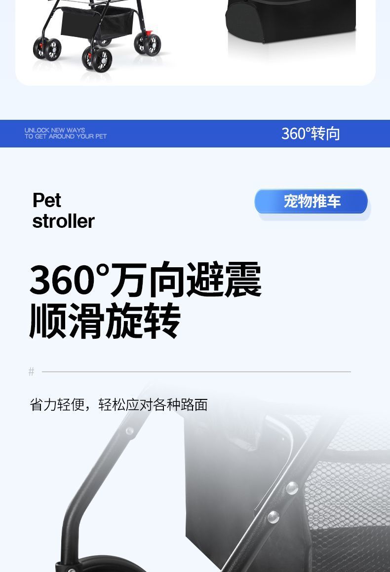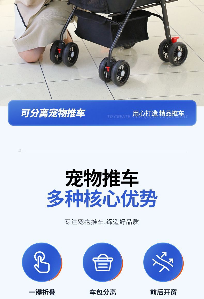 애완동물 유모차, 개 이동식, 고양이 테디 유모차, 외출용 중소형 개 유모차, 경량, 접이식 및 분리형스토어 가기
