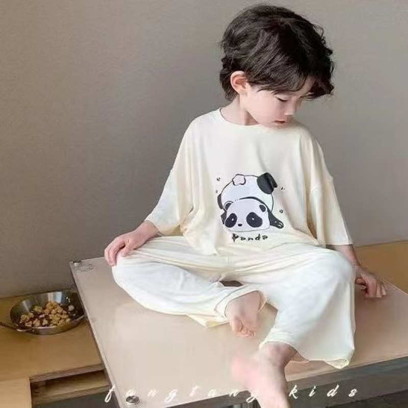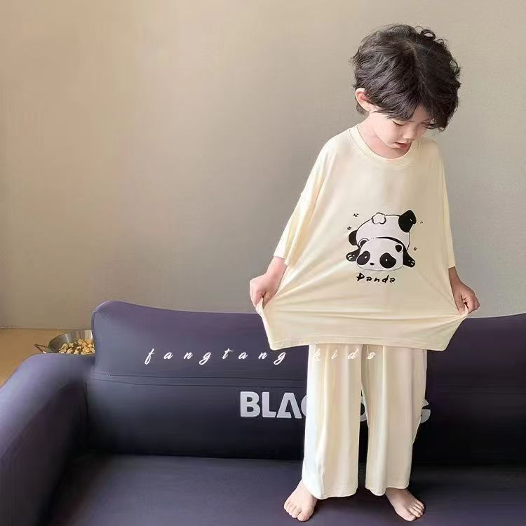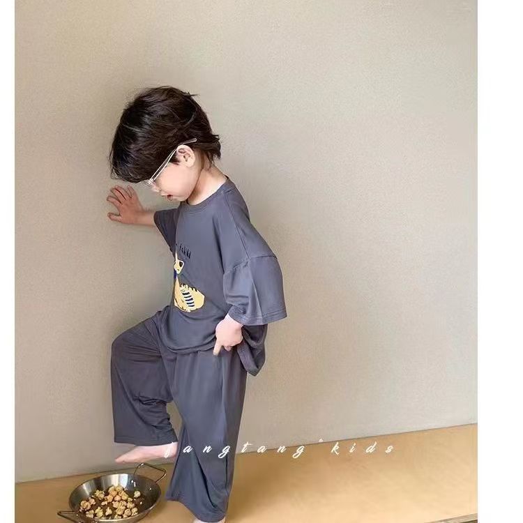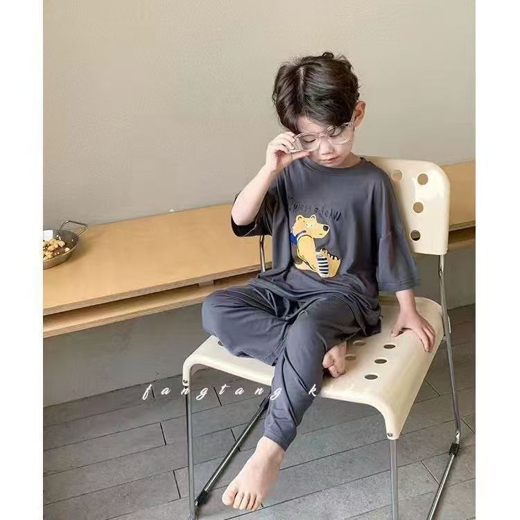 모달 아동복, 여름 반팔 남아 잠옷, 중대형 아동용 에어컨 의류