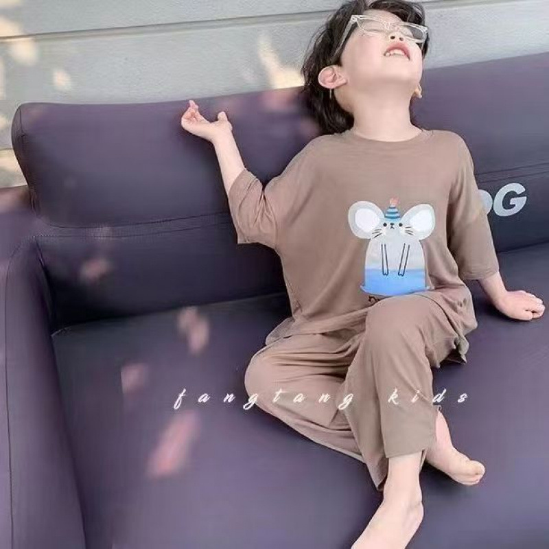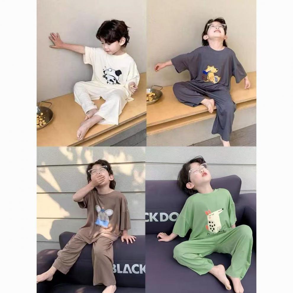 모달 아동복, 여름 반팔 남아 잠옷, 중대형 아동용 에어컨 의류스토어 가기