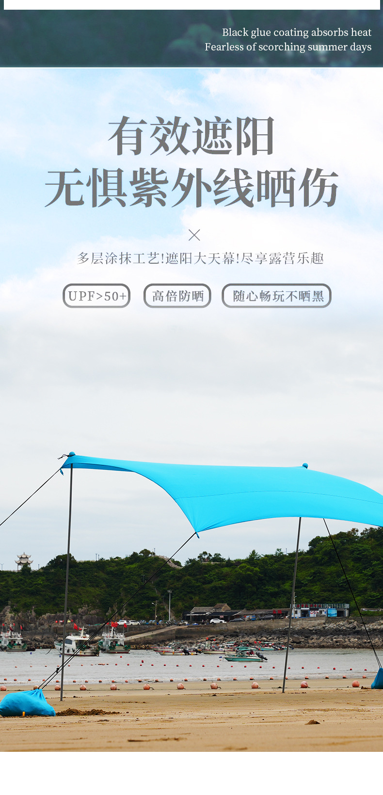 국경 간 해변 라이크라 캐노피 야외 자외선 차단 및 냉각 라이크라 4면 탄성 텐트 해변 캠핑 천막스토어 가기