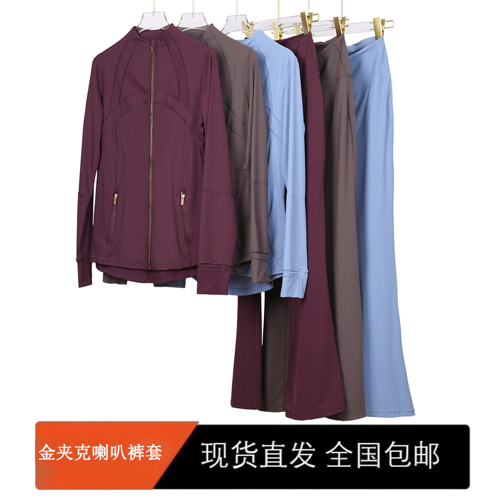 (재고 있음) 골드 자켓 플레어 팬츠 슈트 탑 긴팔 여성 슬림 자켓 스트레치 스포츠 러닝 요가웨어스토어 가기