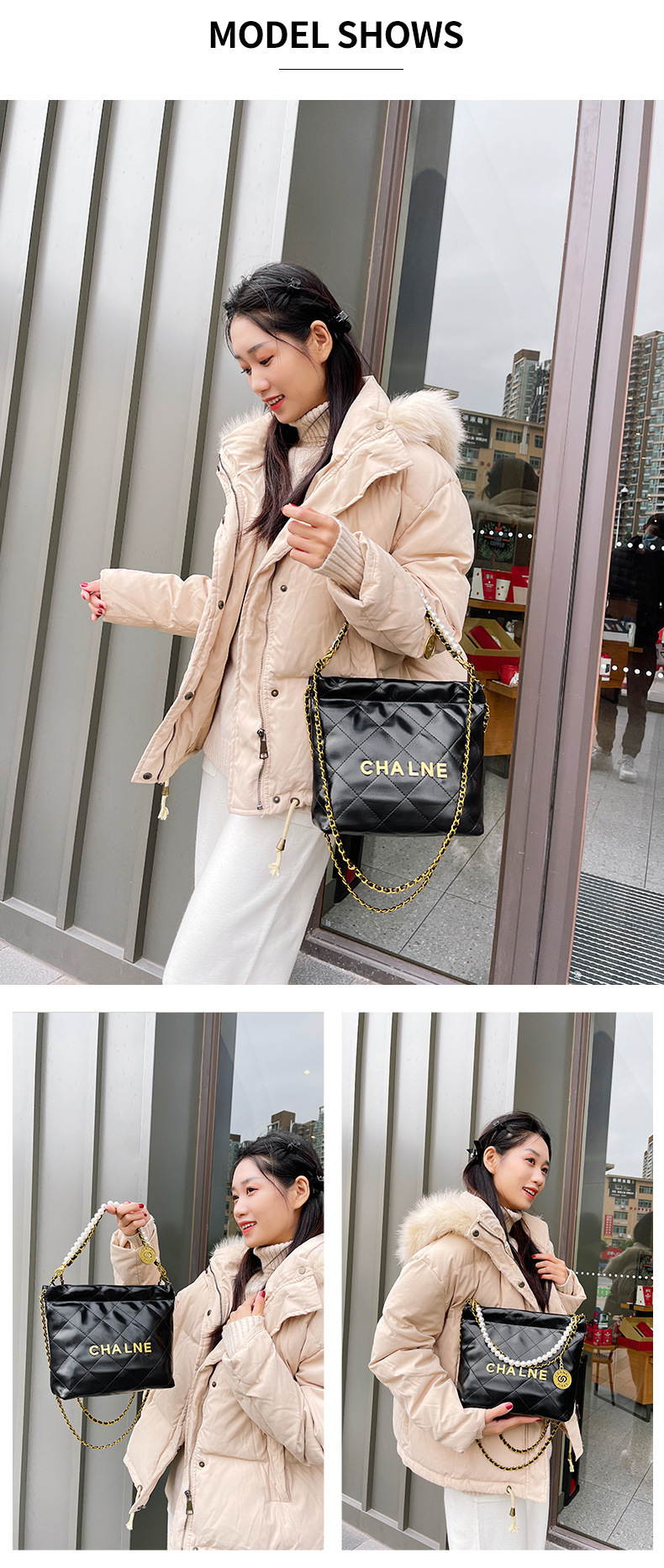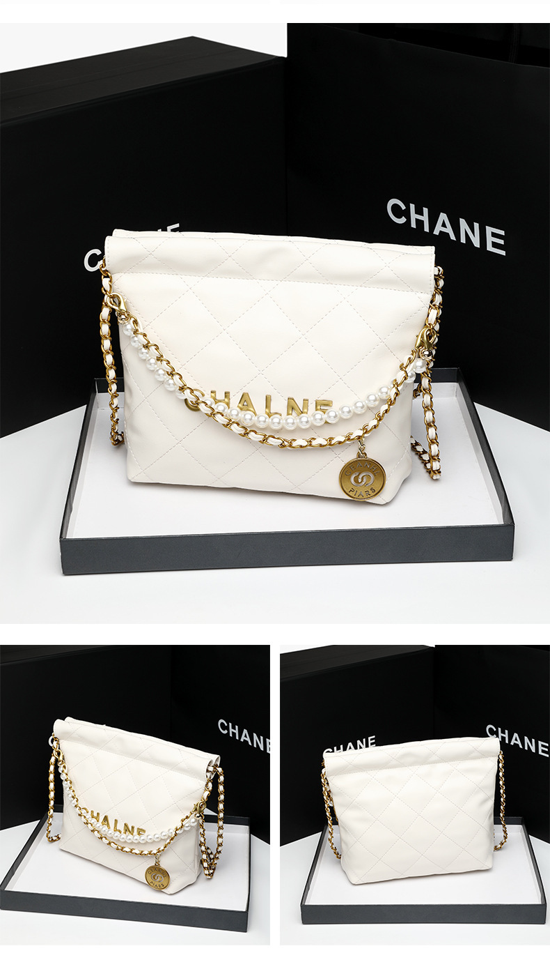 여성용 쓰레기 봉투 소형 가방 2024 새로운 스타일 정품 가죽 작은 향기로운 마름모 진주 체인 가방 크로스 바디 여성용 가방스토어 가기